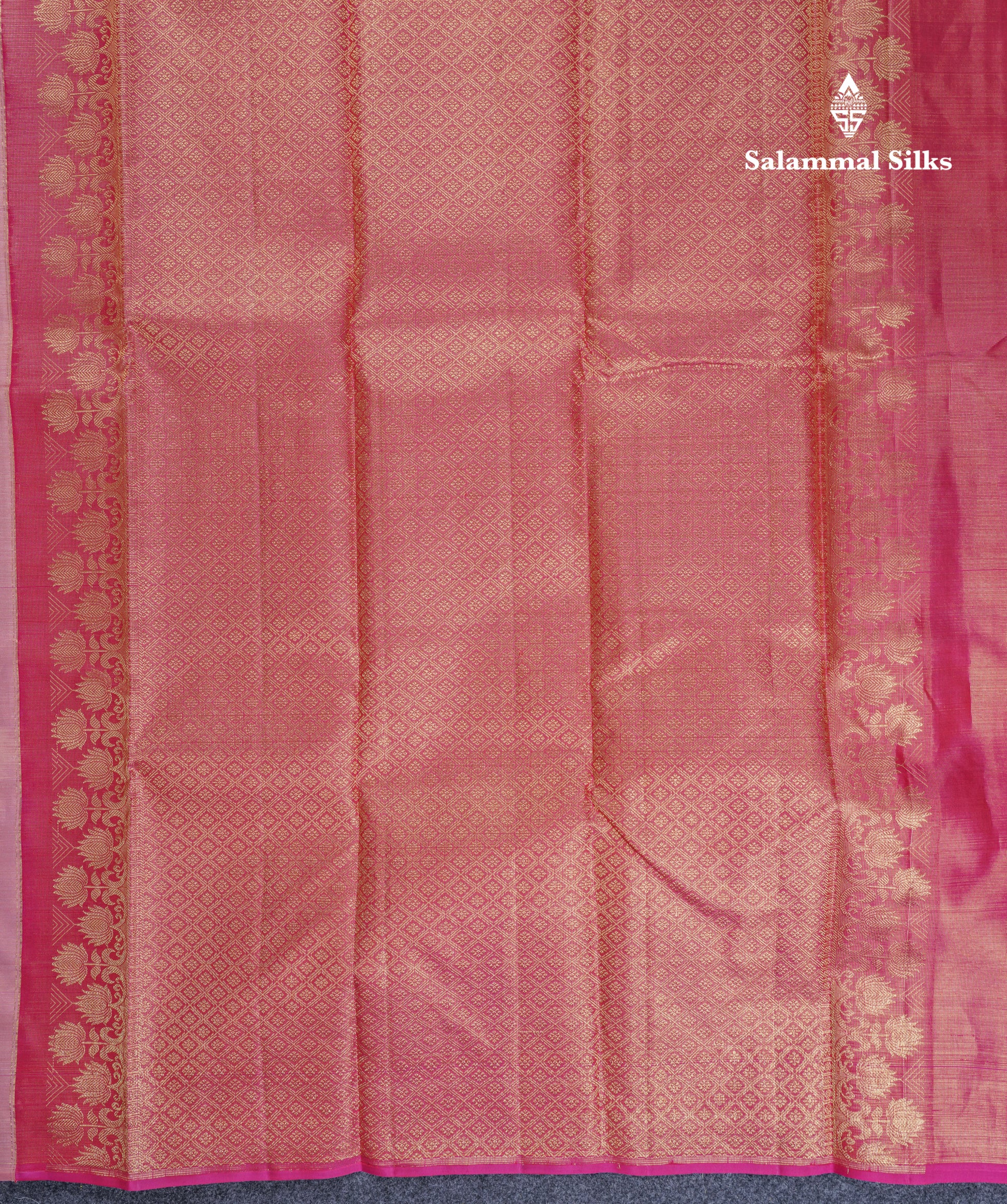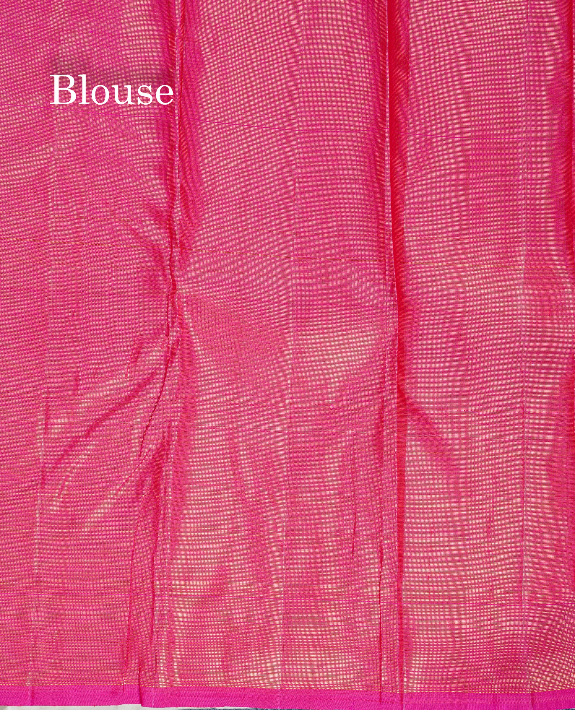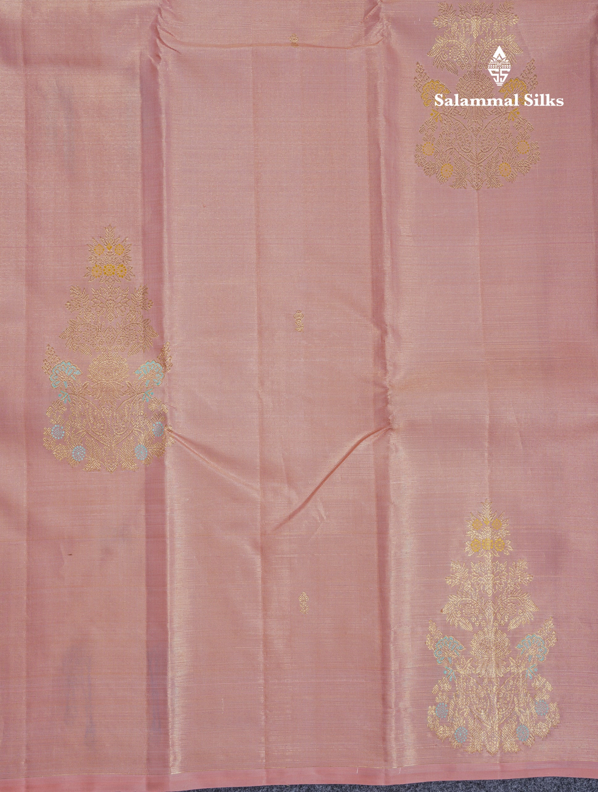 Beautiful Peach Fancy Vairaoosi Menakari Work Pure Kanjivaram Silk Saree with Contrast Pink Blouse