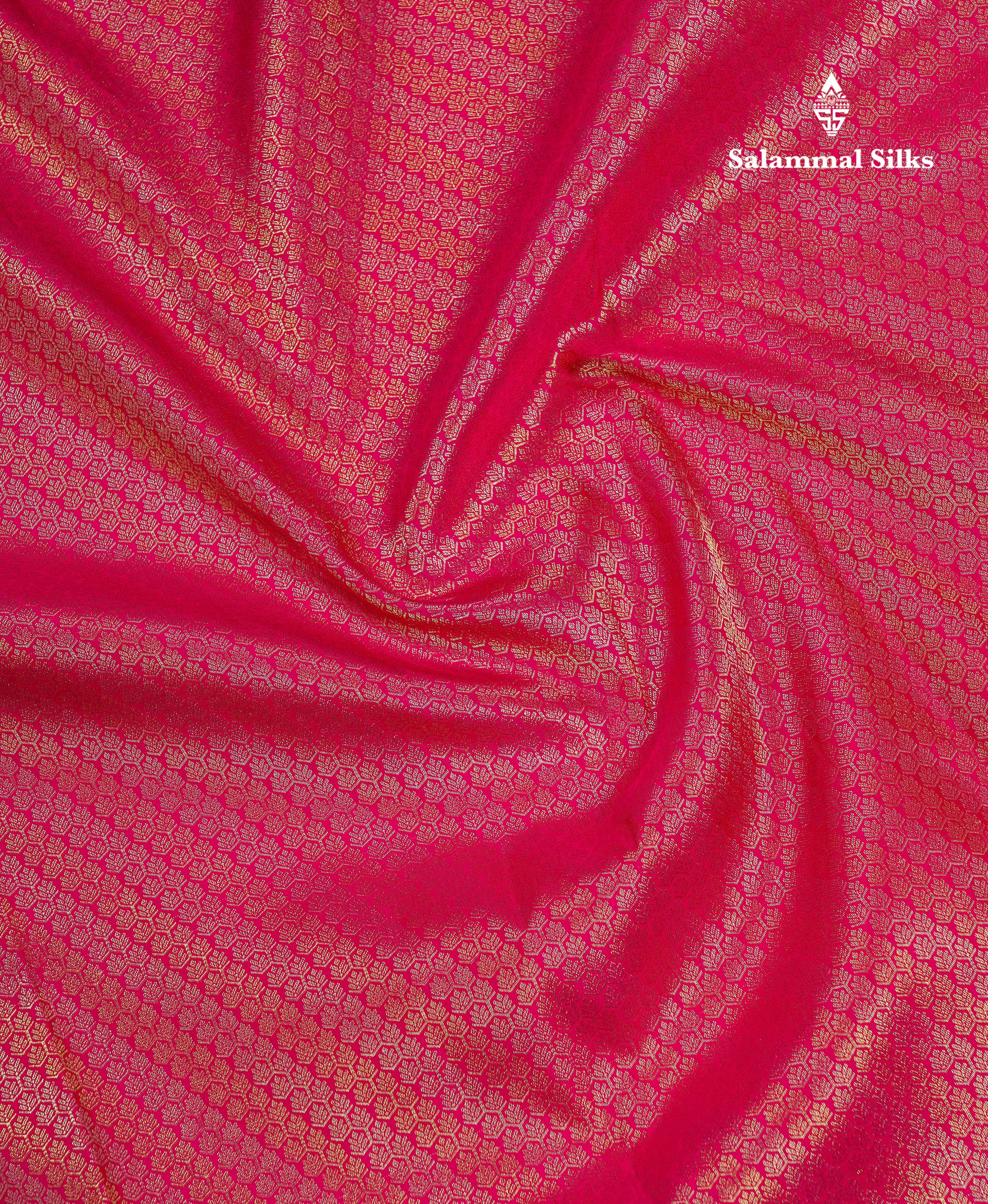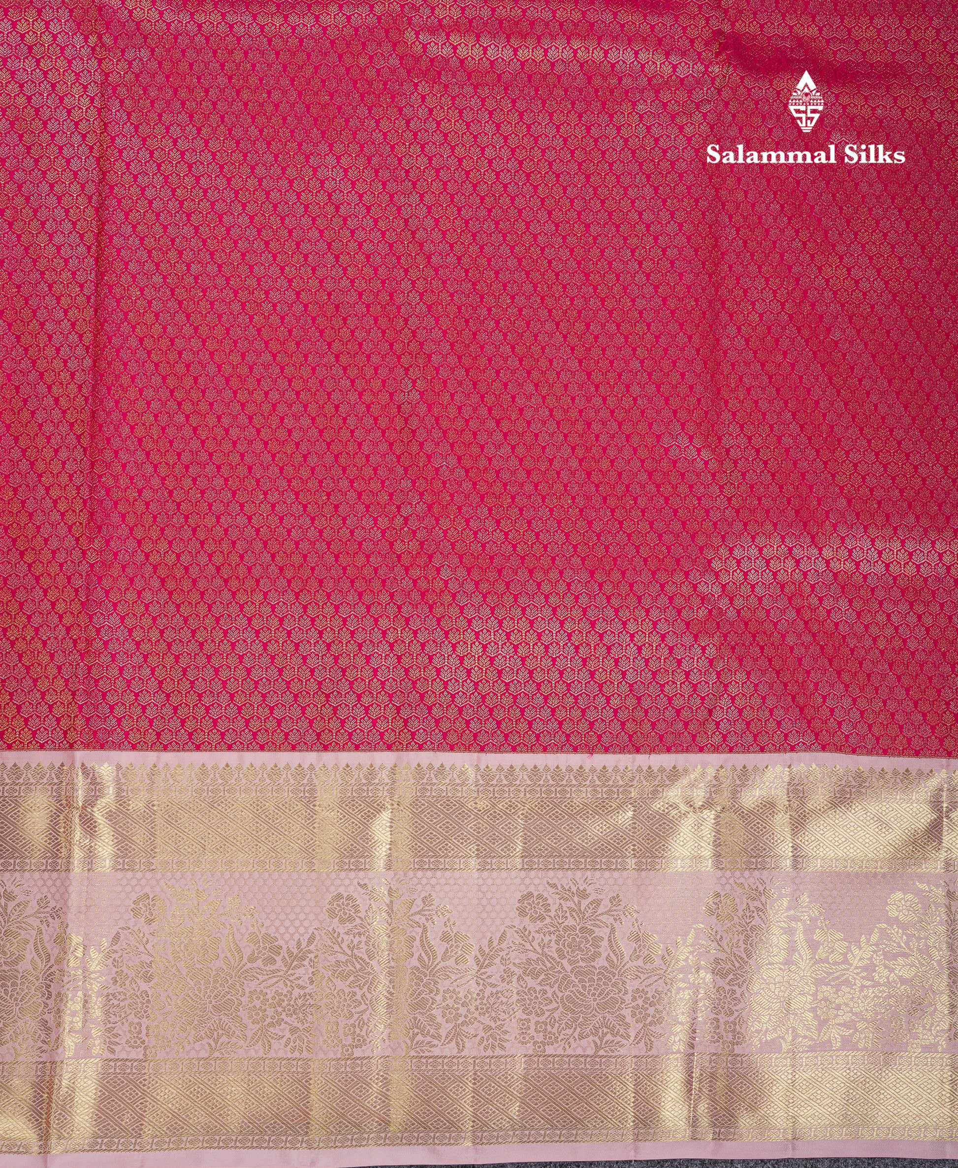 Salammal is known for its handloom sarees. In some sarees, there is cross-weaving between the body and the pallu, which is a sign of pure handloom sarees. This can be seen in Kanchipuram embossed sarees.