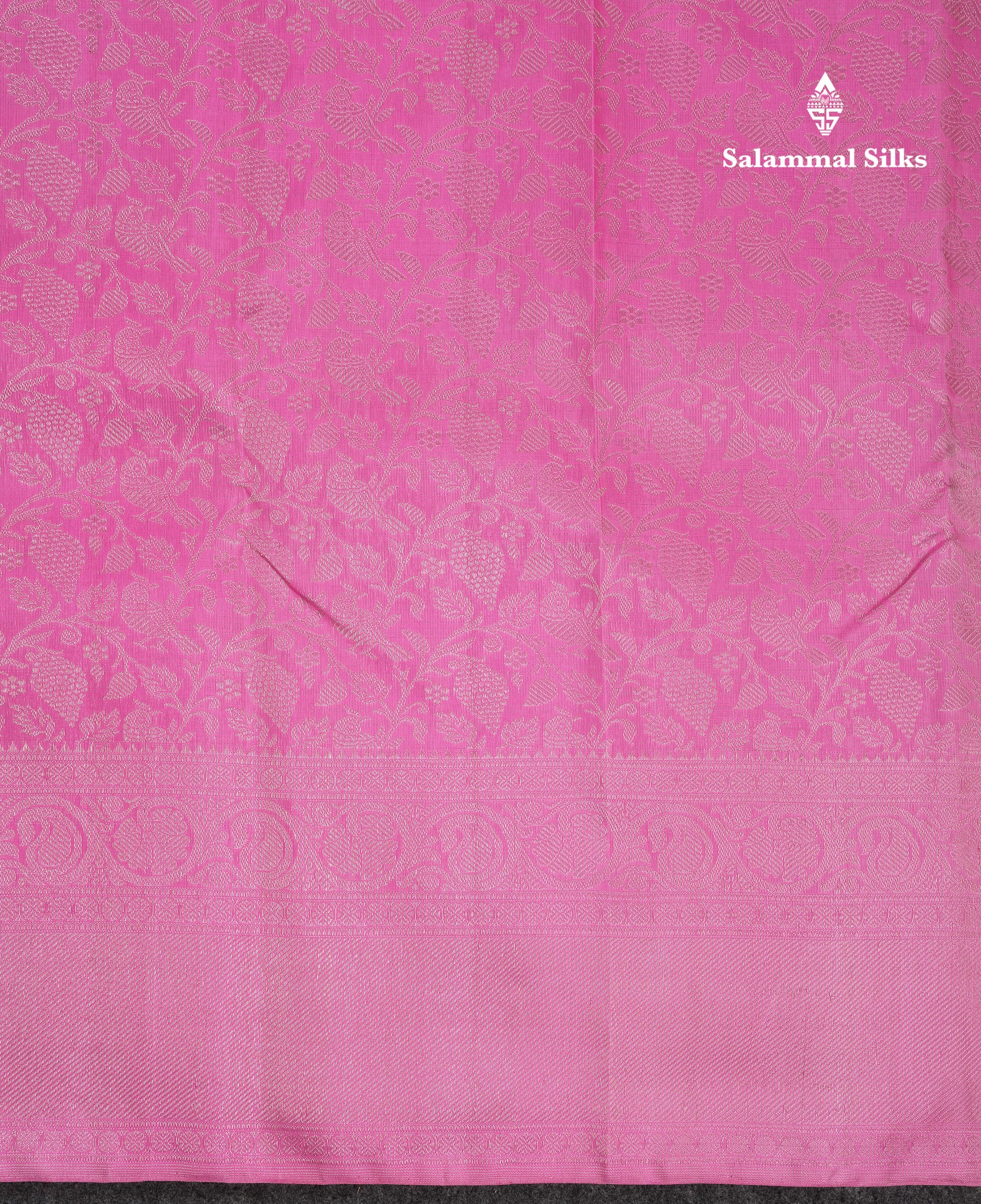Salammal is known for its handloom sarees. In some sarees, there is cross-weaving between the body and the pallu, which is a sign of pure handloom sarees. This can be seen in Kanchipuram embossed sarees.