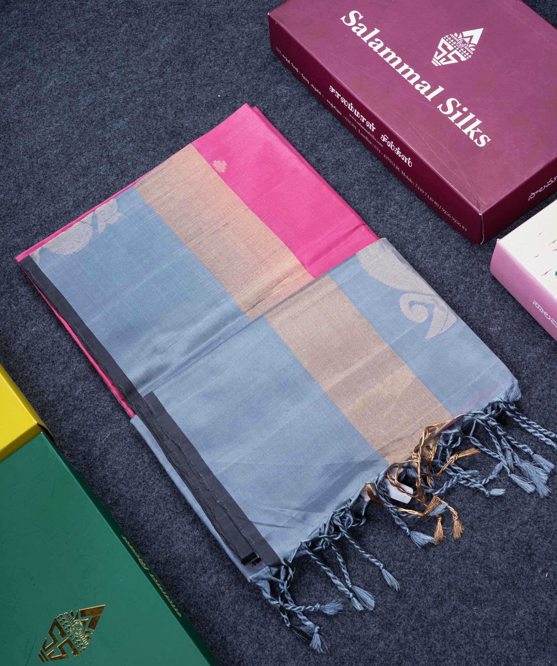 Beautiful Pink Pure Kanjivaram Soft Silk Saree With Ash Border