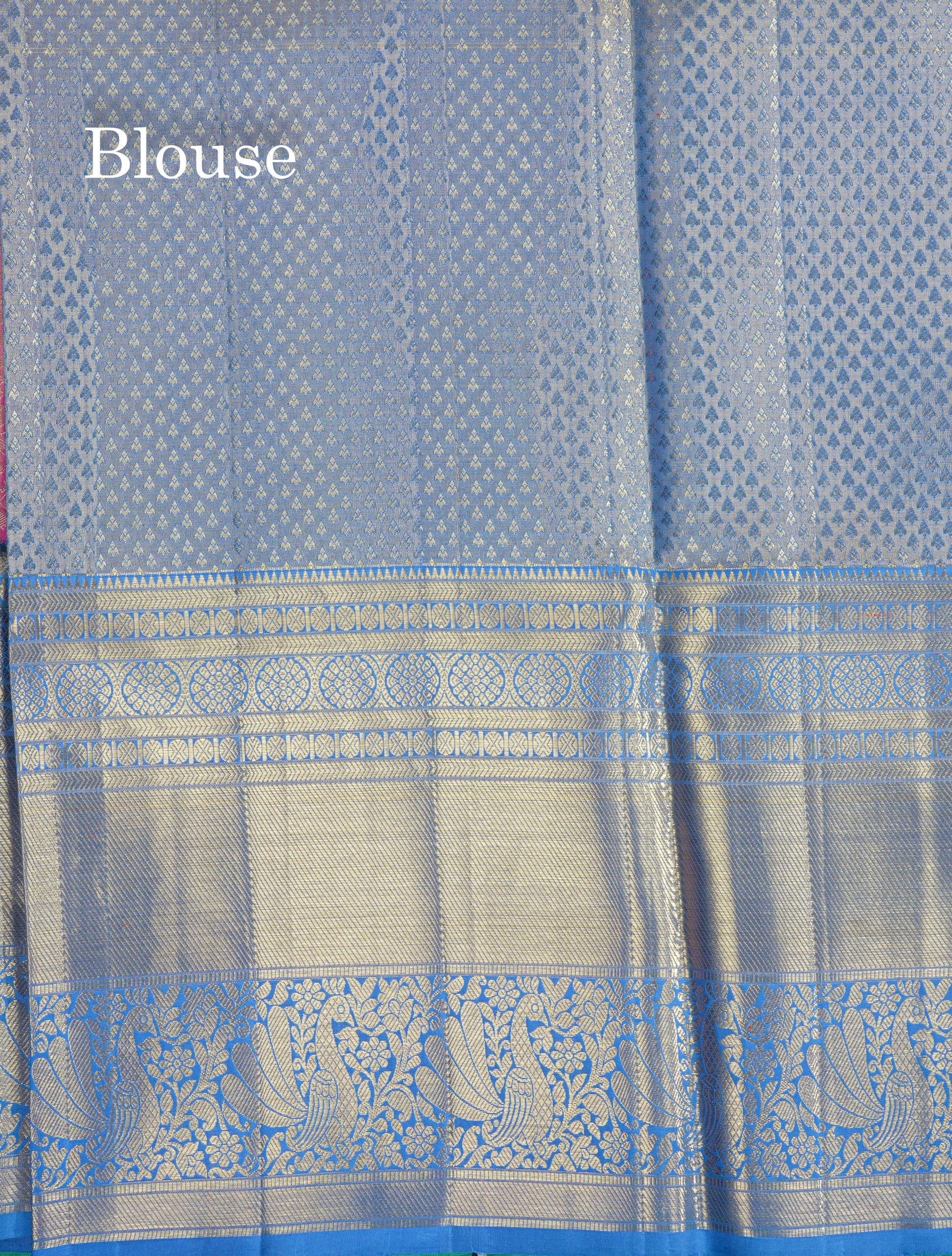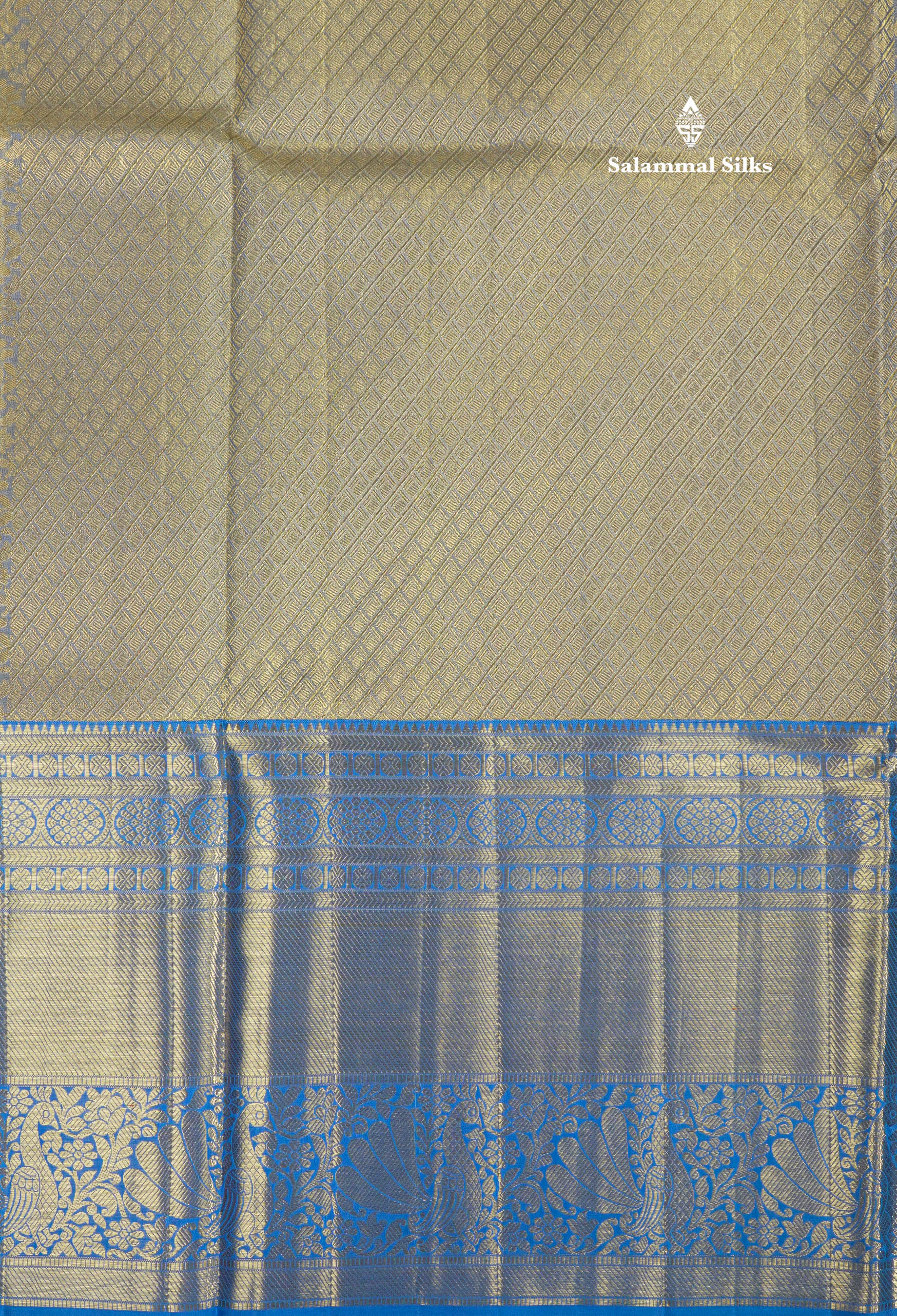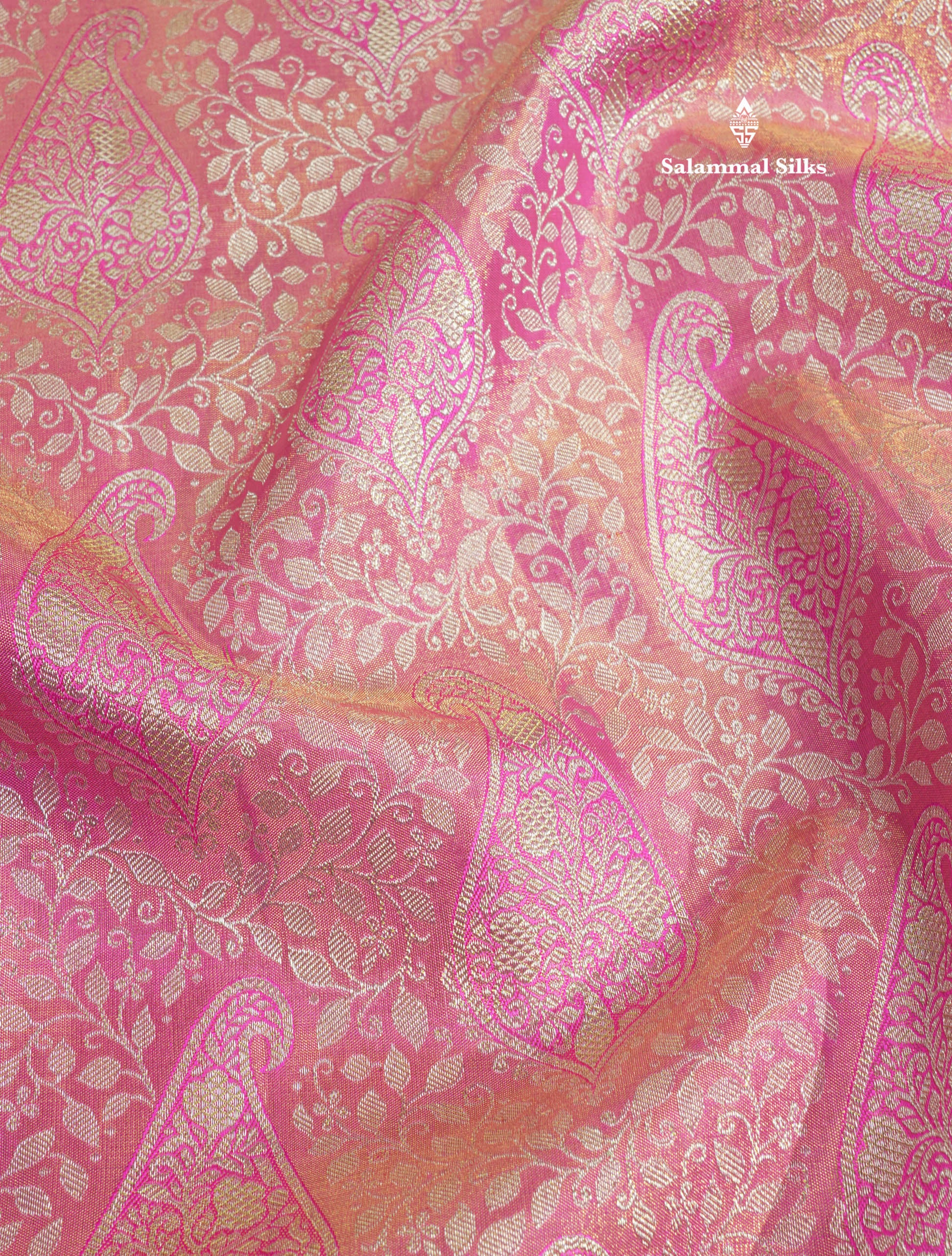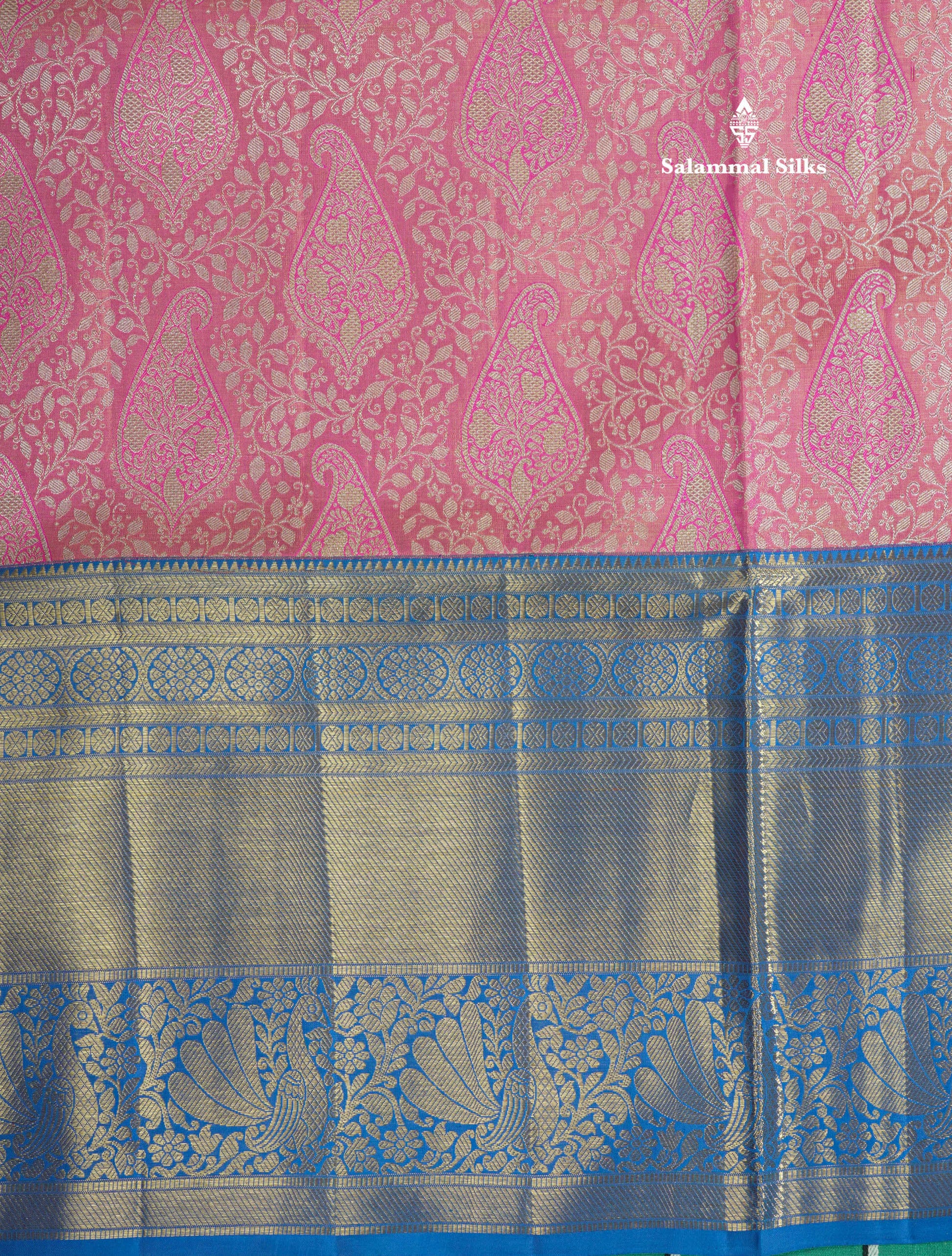 Beautiful Pink Tissue Pure Kanjivaram Silk Saree (2G) Zari With Contrast Royal Blue Border