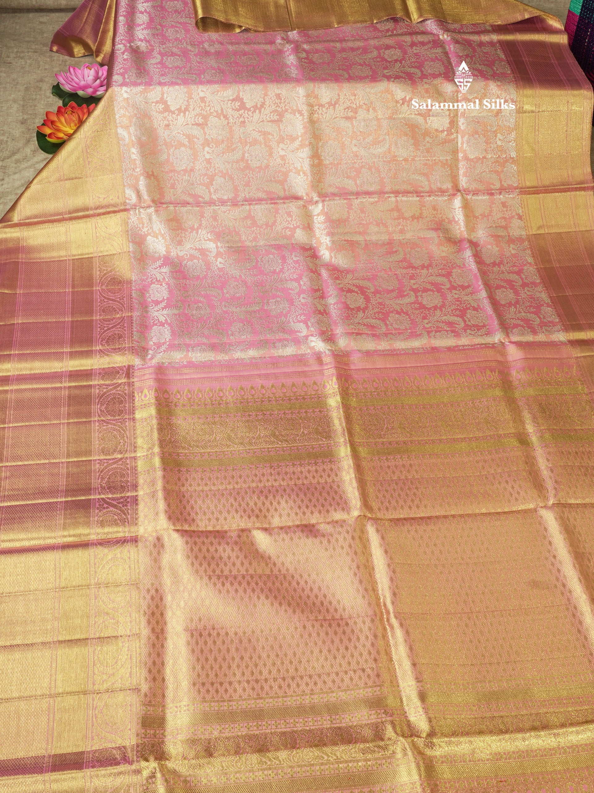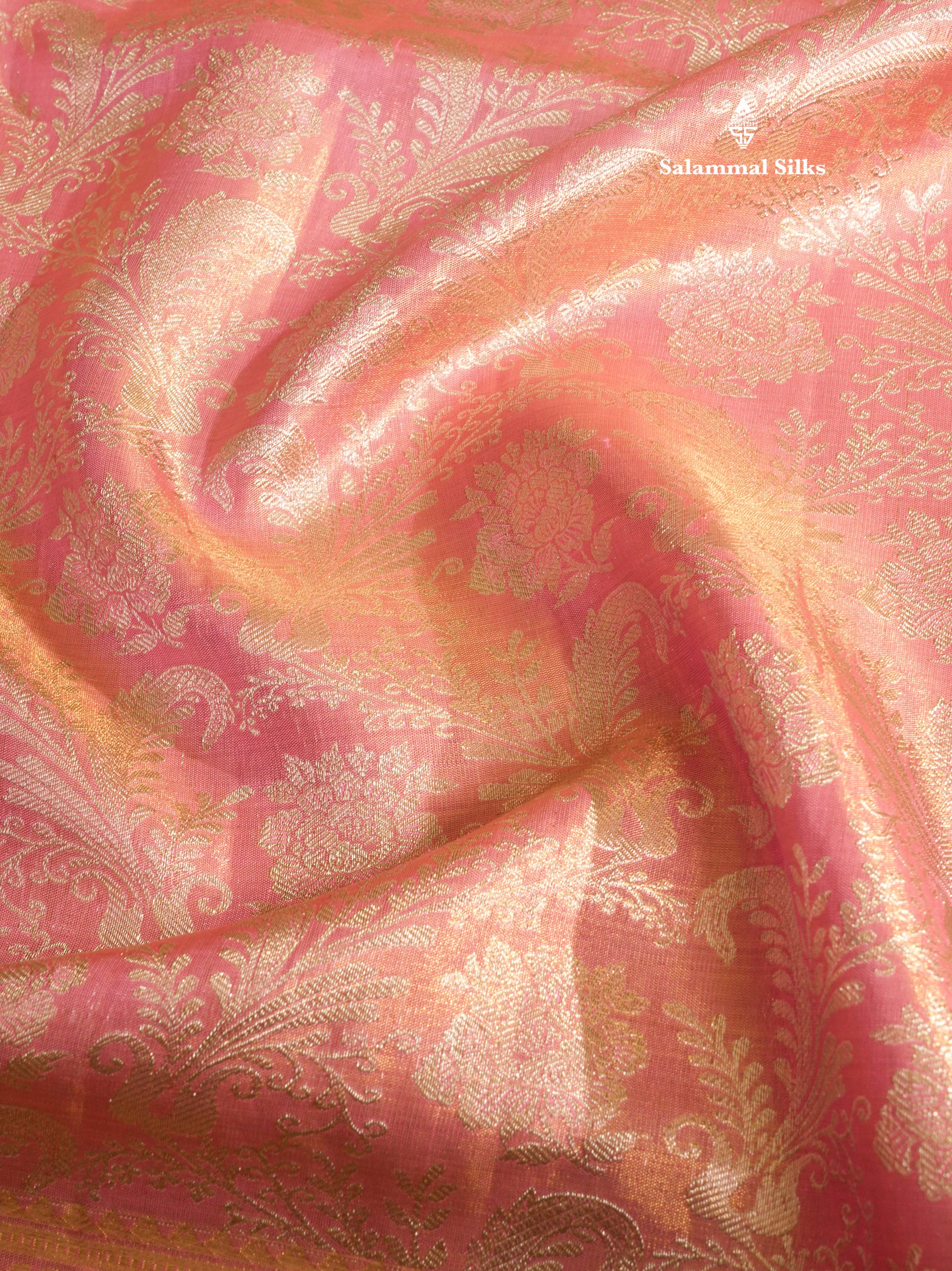 Beautiful Pink Tissue Pure Kanjivaram Silk Saree (2G) Zari With Self Border