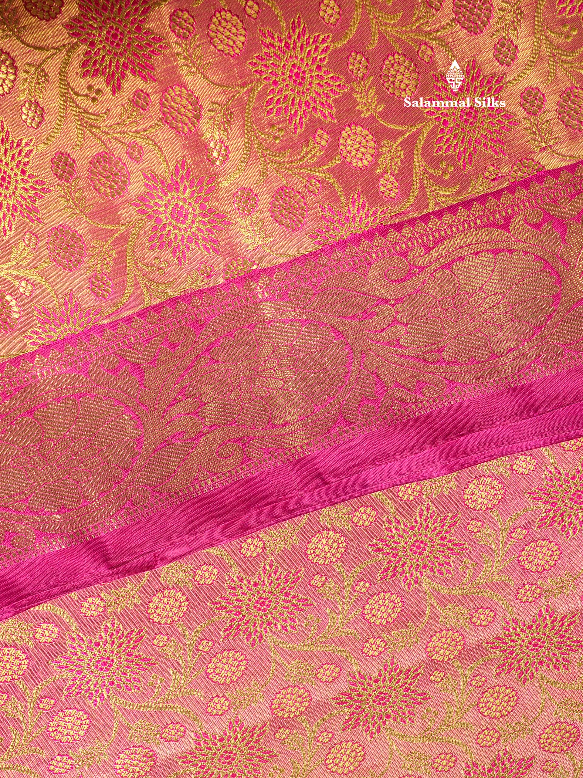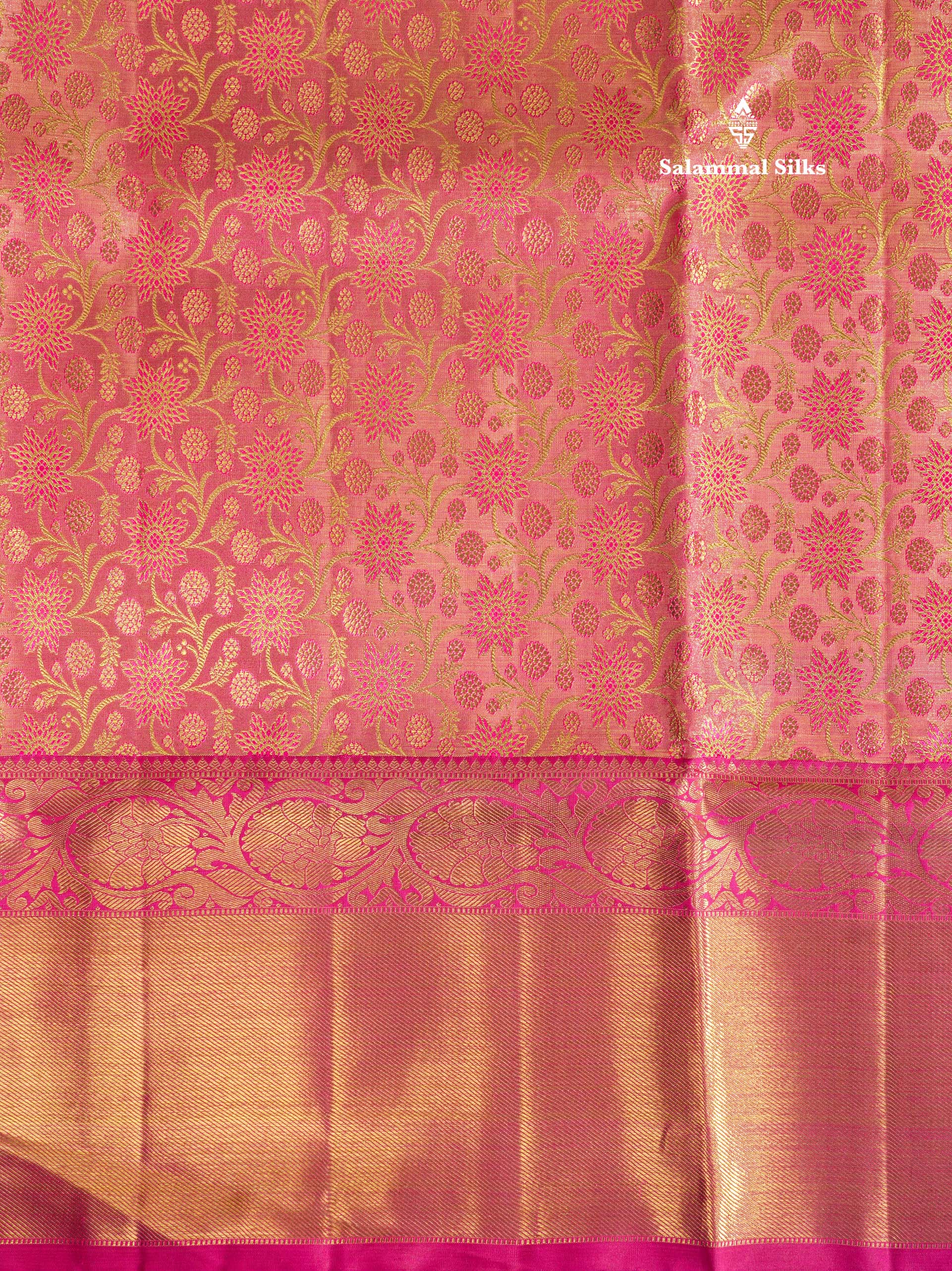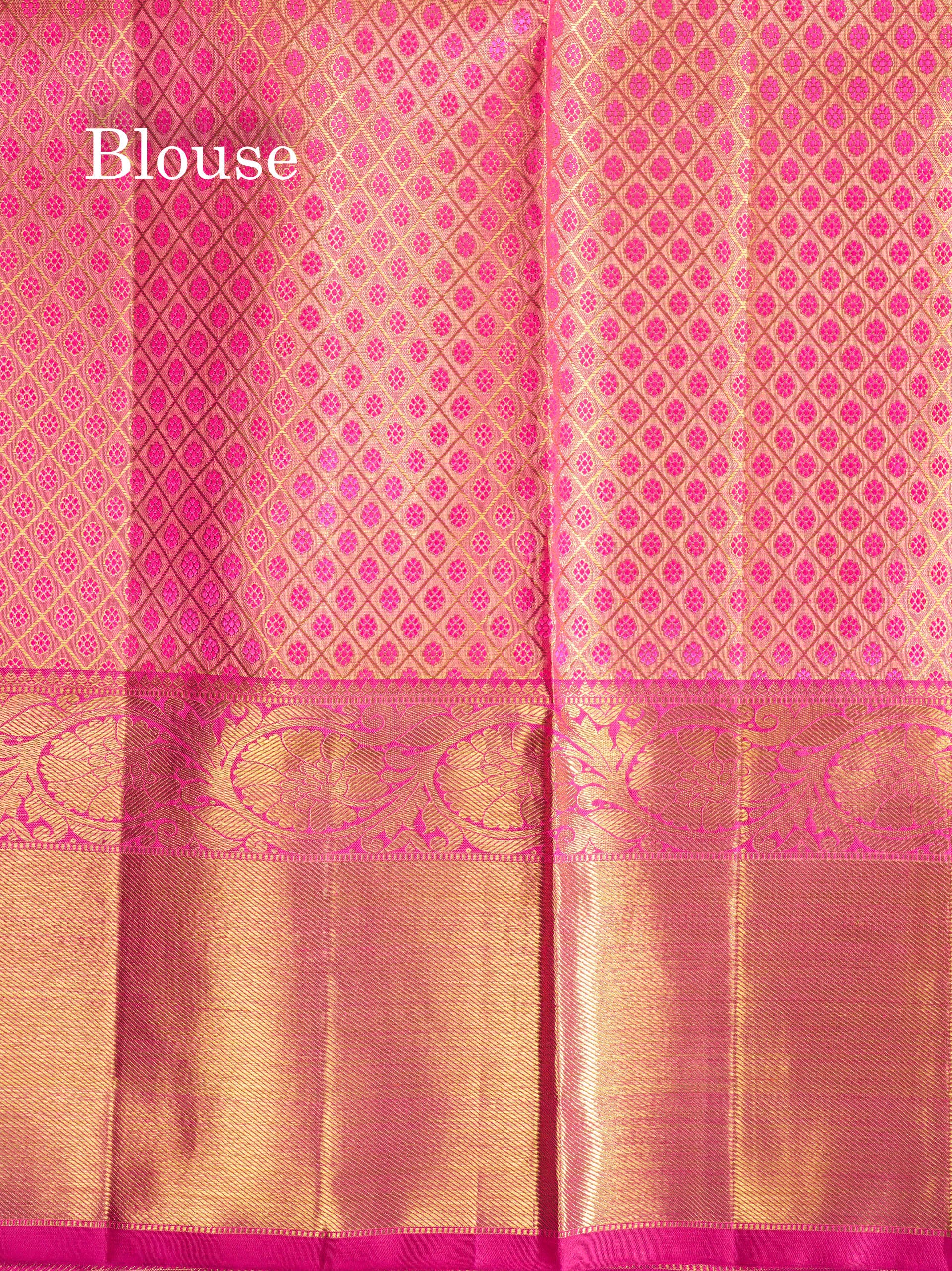 Beautiful Pink Tissue Pure Kanjivaram Silk Saree 3G Zari with Contrast Magenta Evening Morning Border