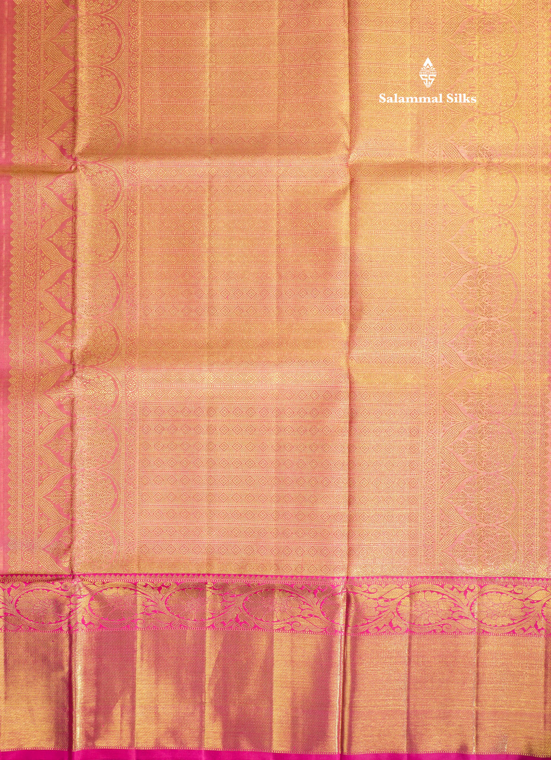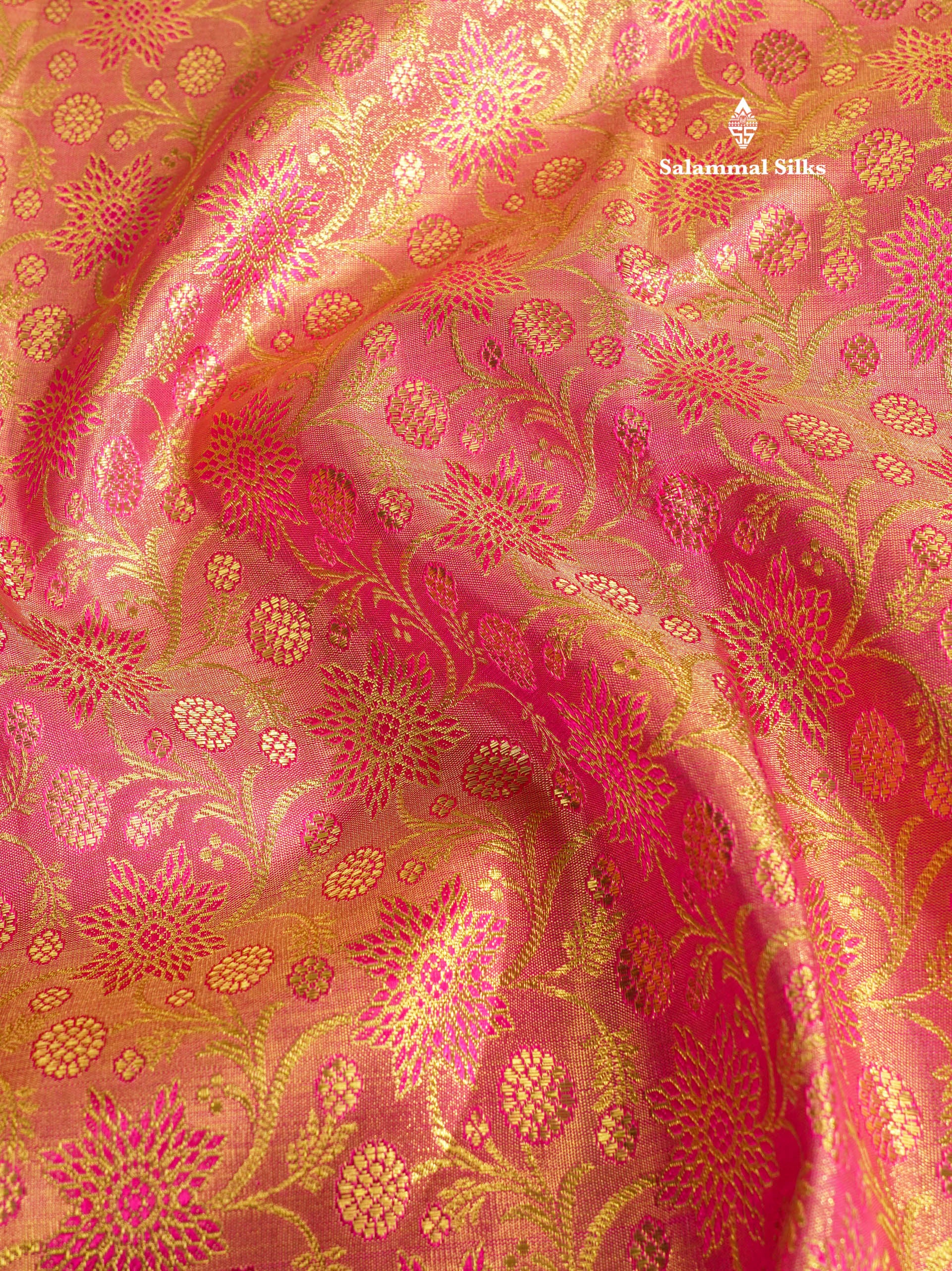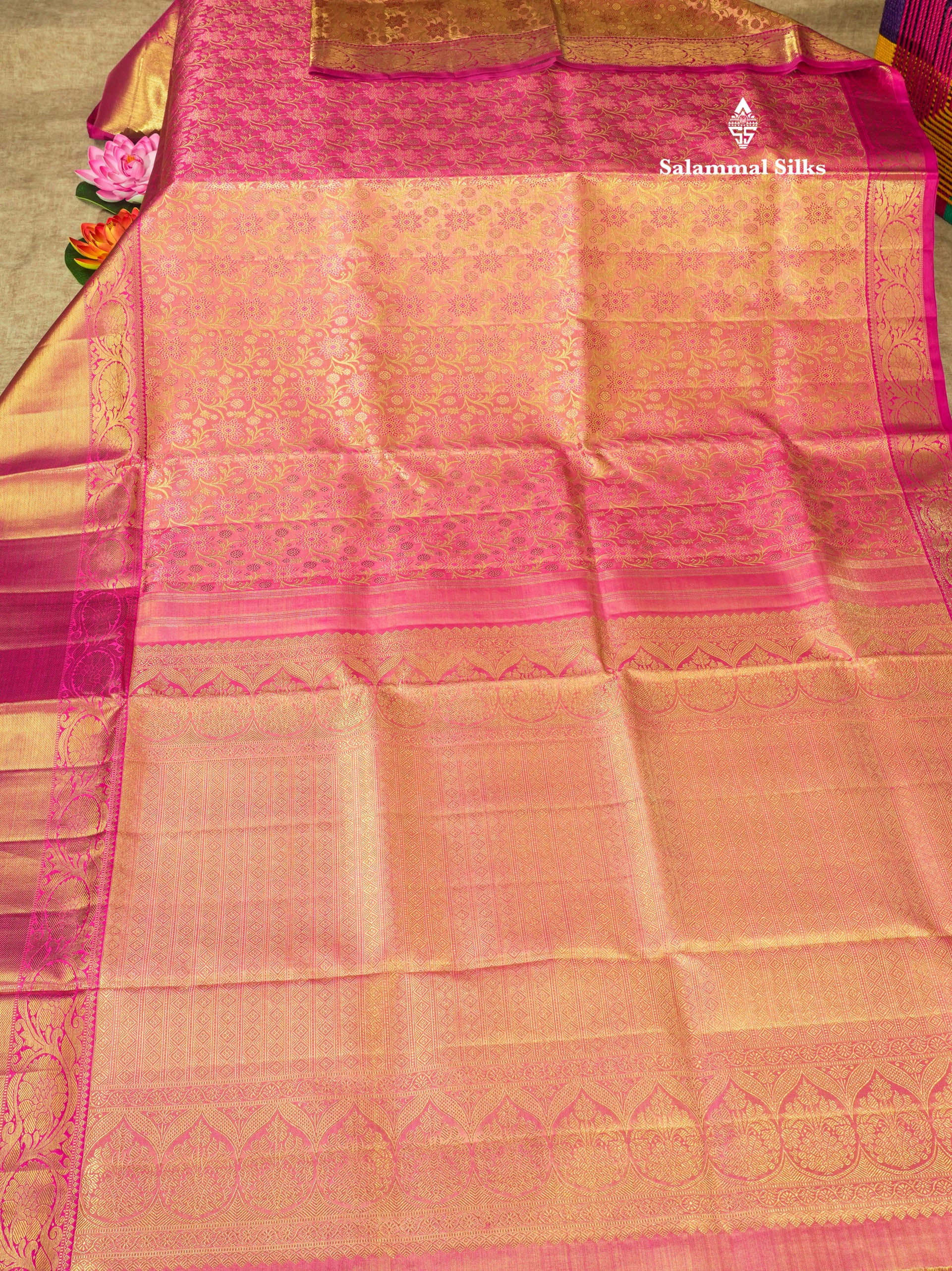Beautiful Pink Tissue Pure Kanjivaram Silk Saree 3G Zari with Contrast Magenta Evening Morning Border