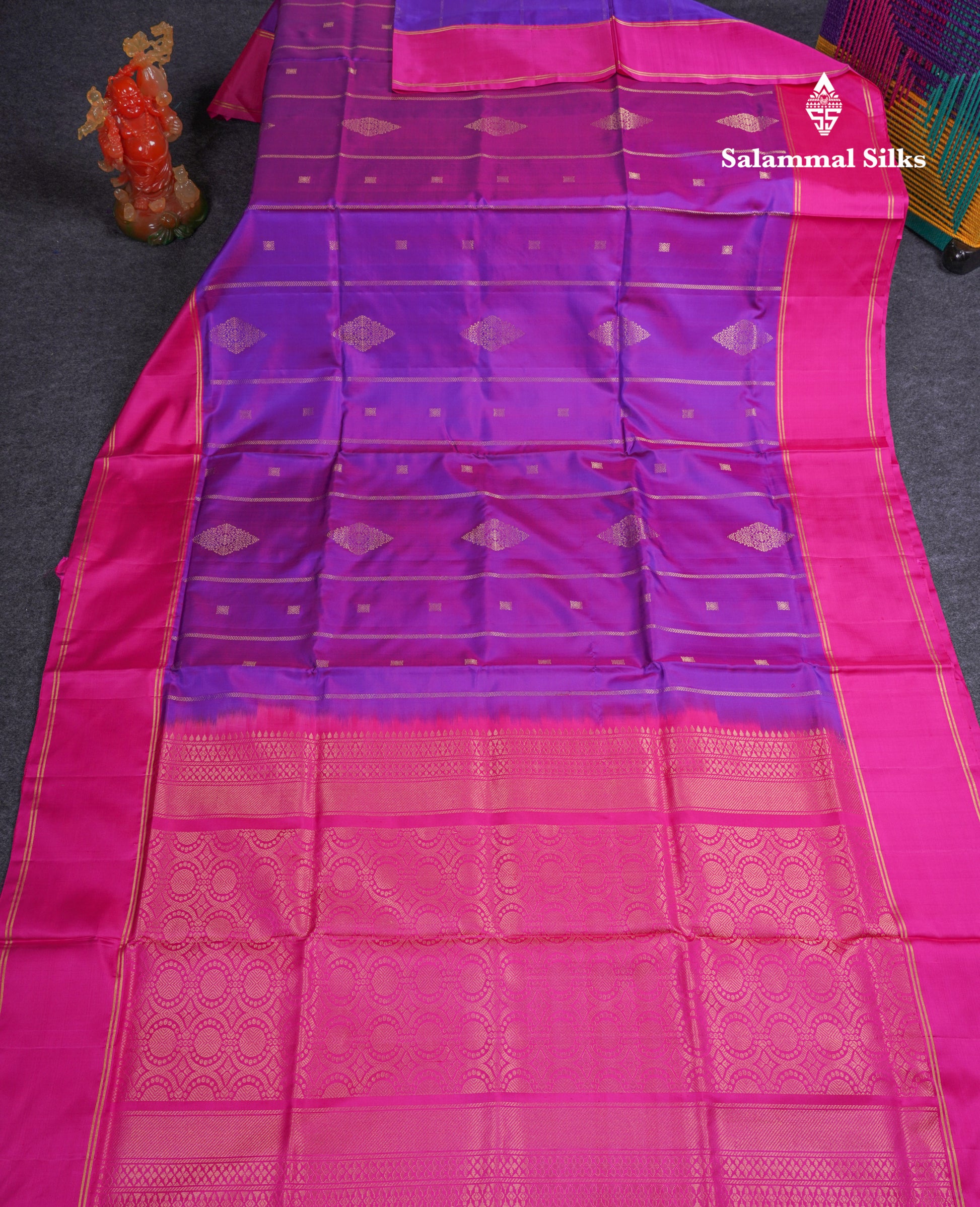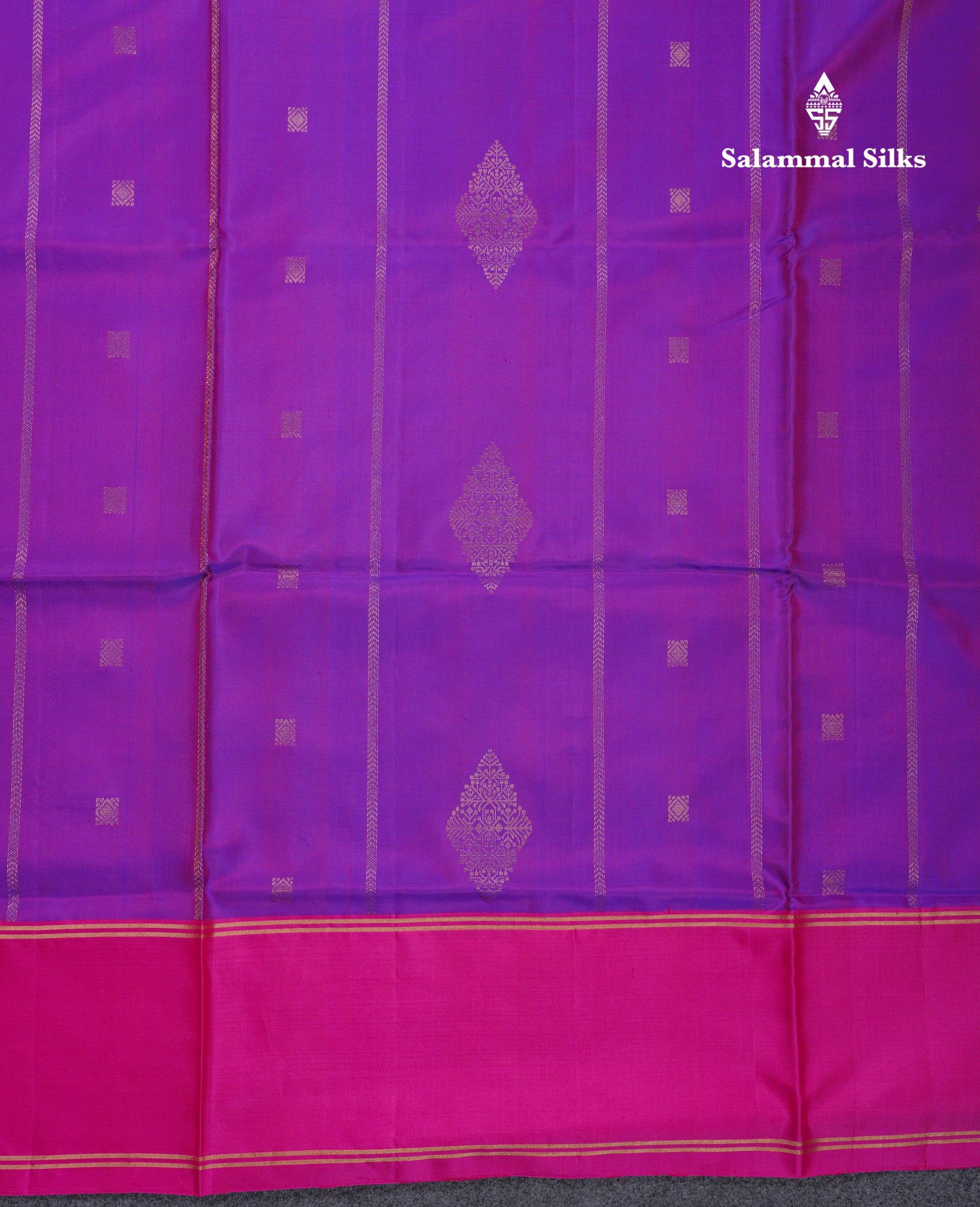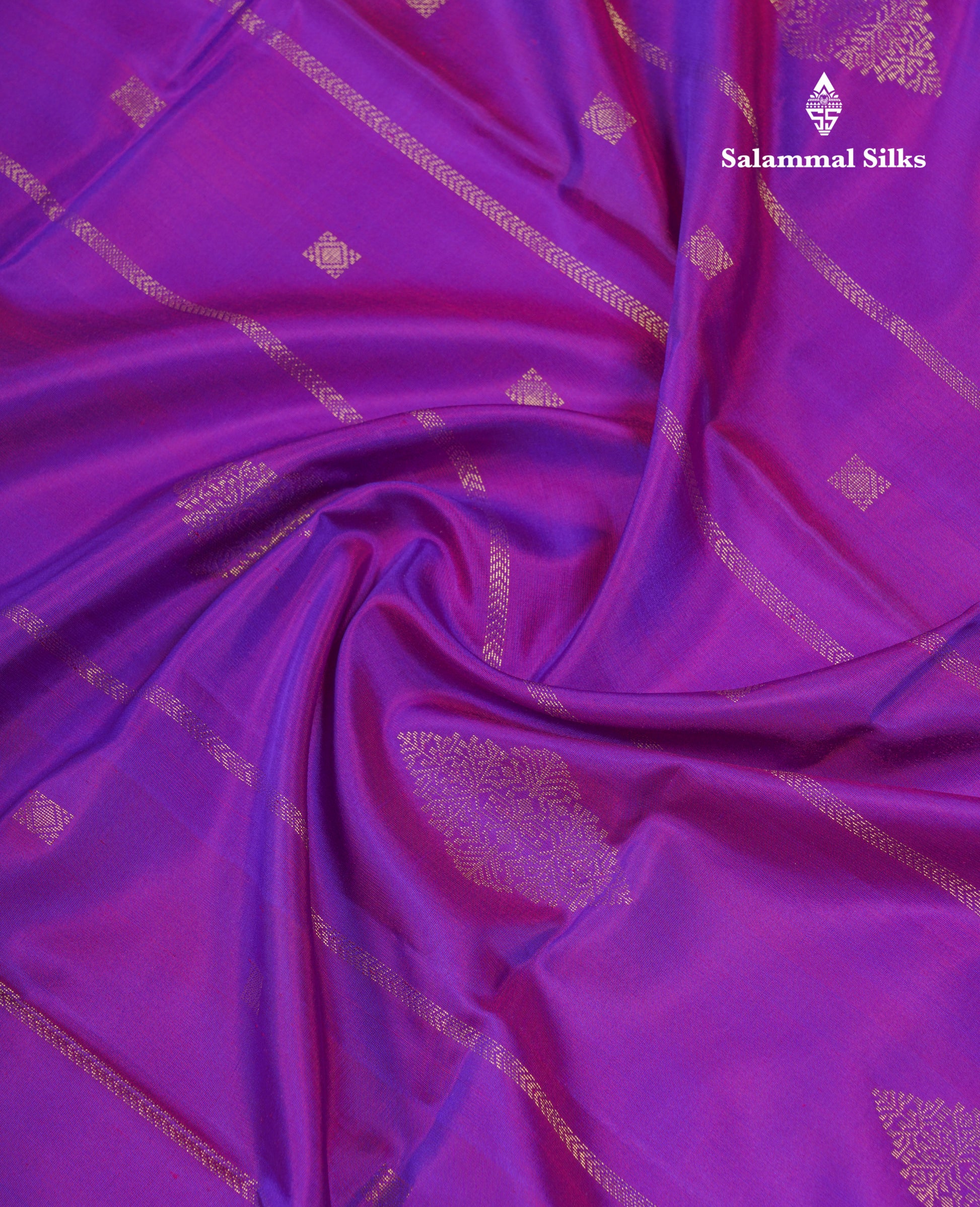 Salammal is known for its handloom sarees. In some sarees, there is cross-weaving between the body and the pallu, which is a sign of pure handloom sarees. This can be seen in Kanchipuram embossed sarees.