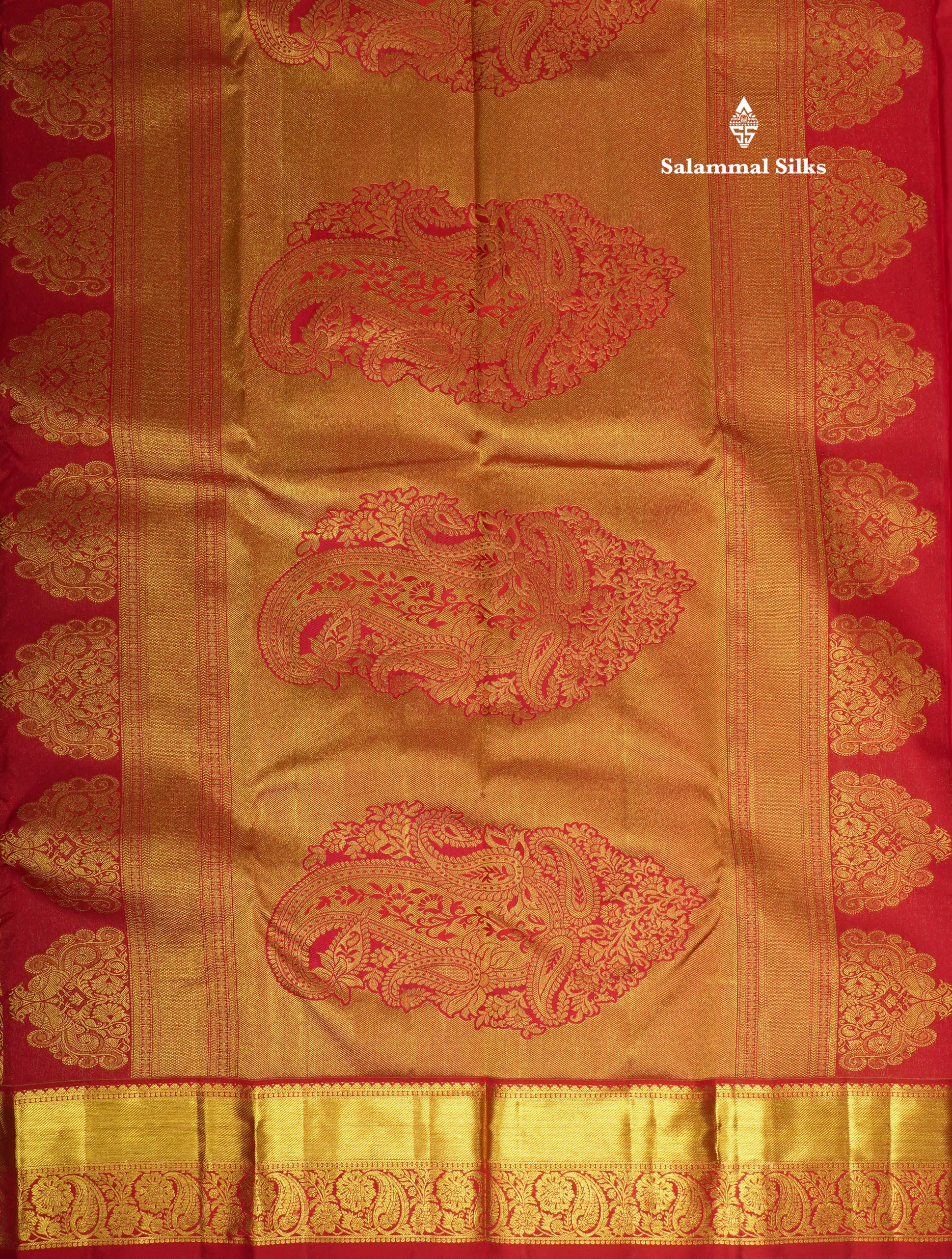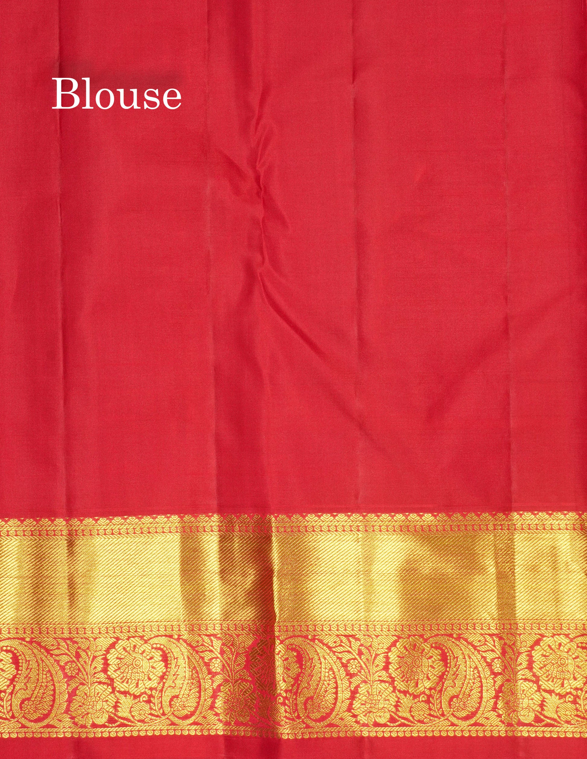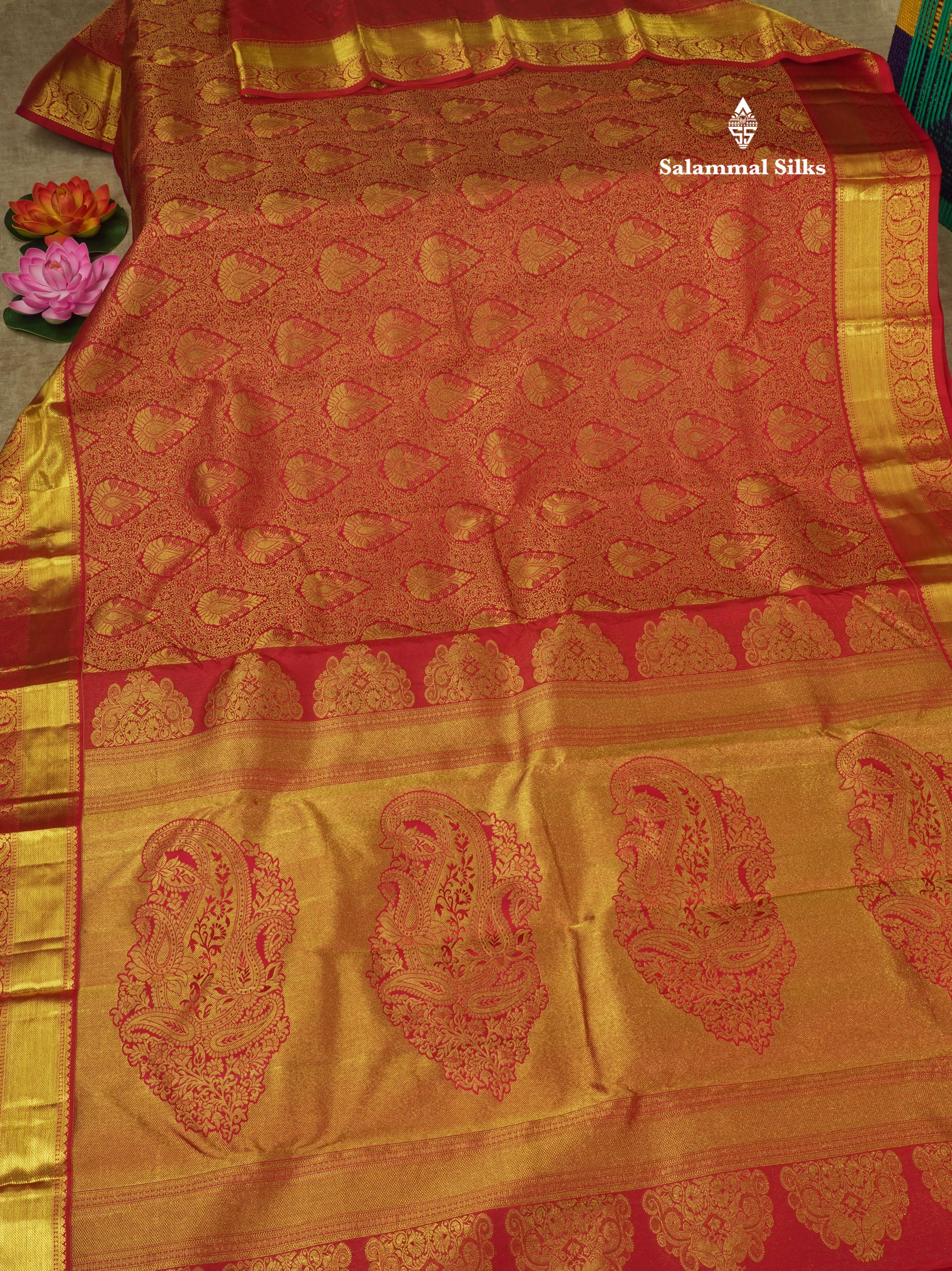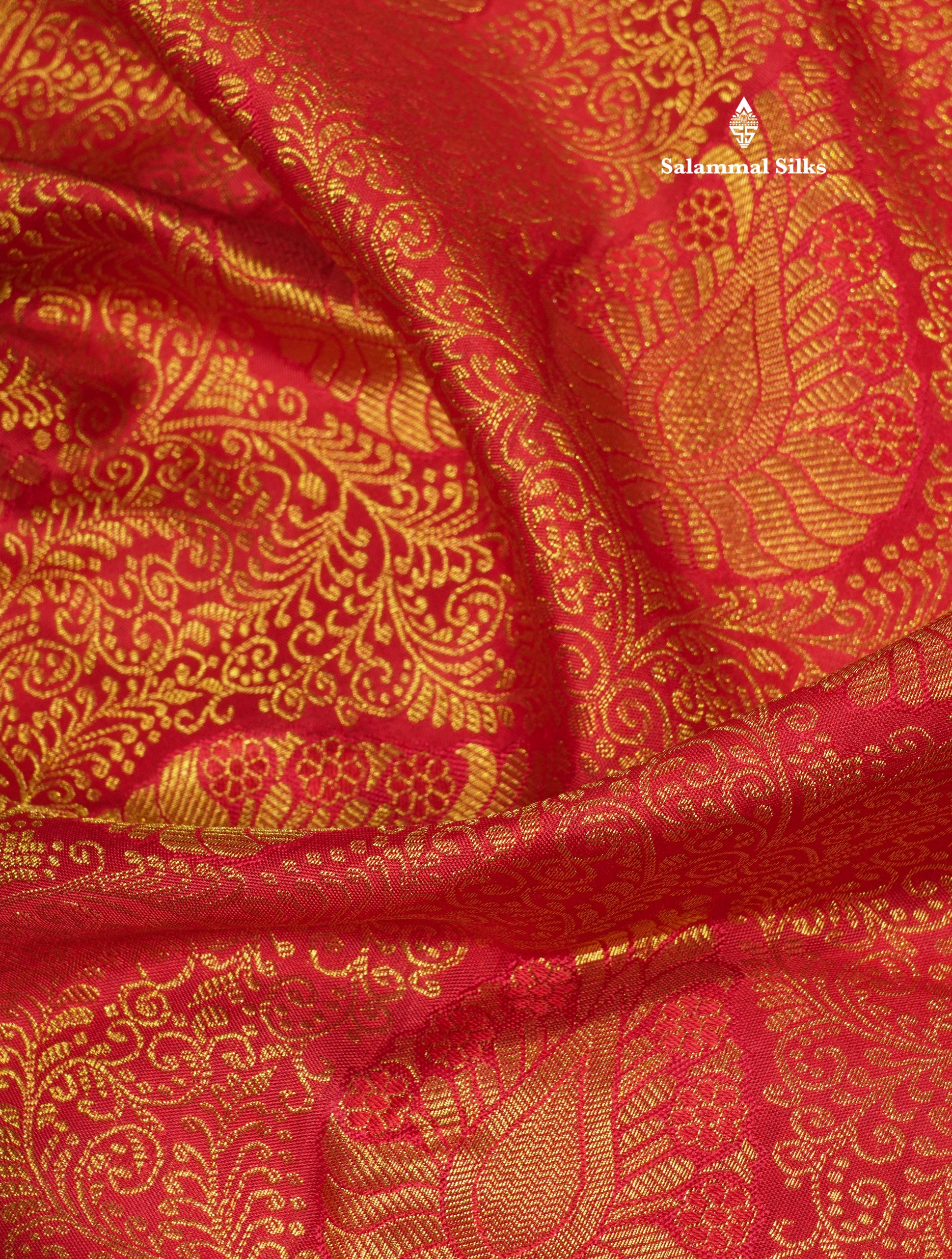 Beautiful Red Grand Bridal Pure Kanjivaram Silk Saree With Gold Zari Border