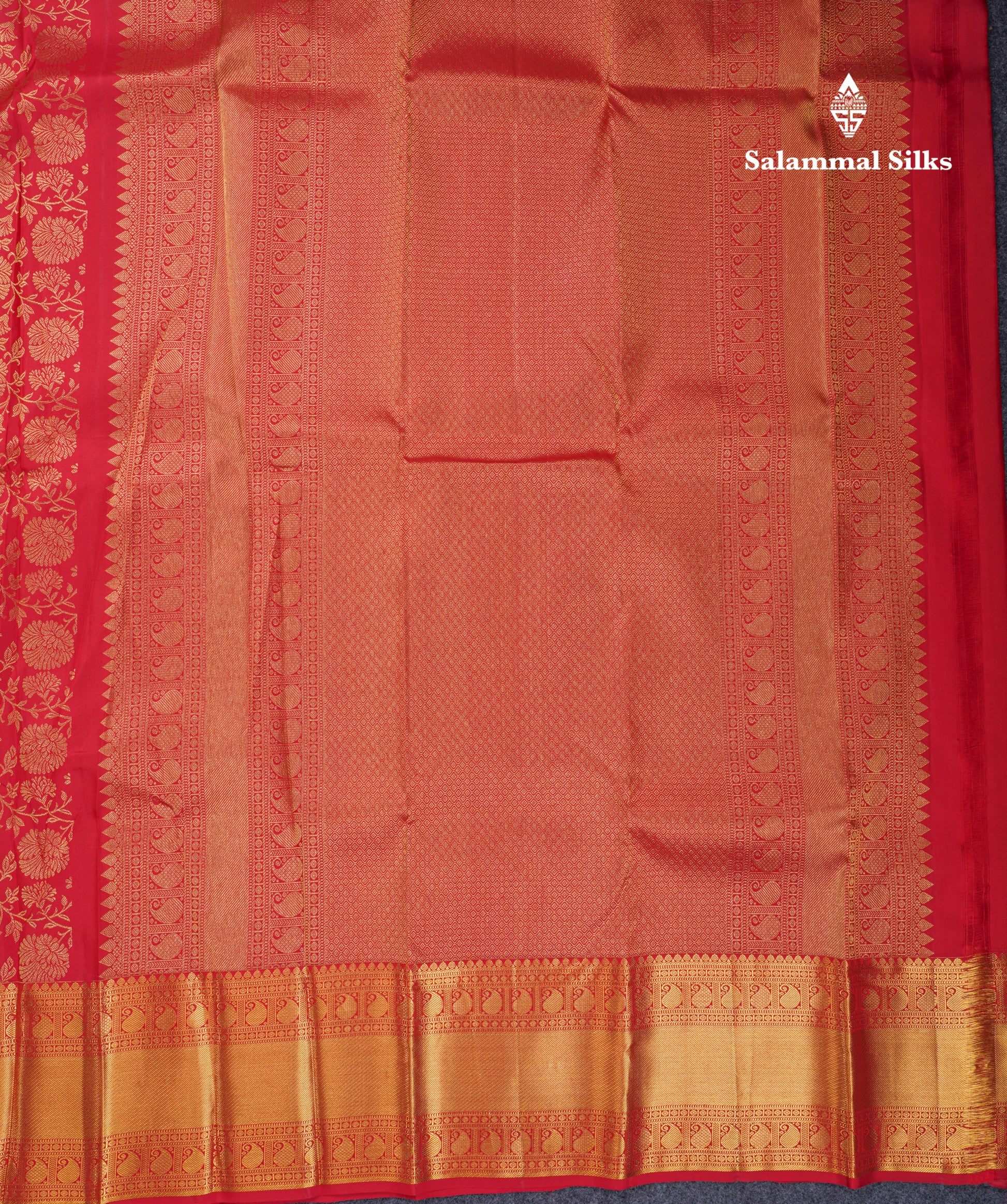 Salammal is known for its handloom sarees. In some sarees, there is cross-weaving between the body and the pallu, which is a sign of pure handloom sarees. This can be seen in Kanchipuram embossed sarees.