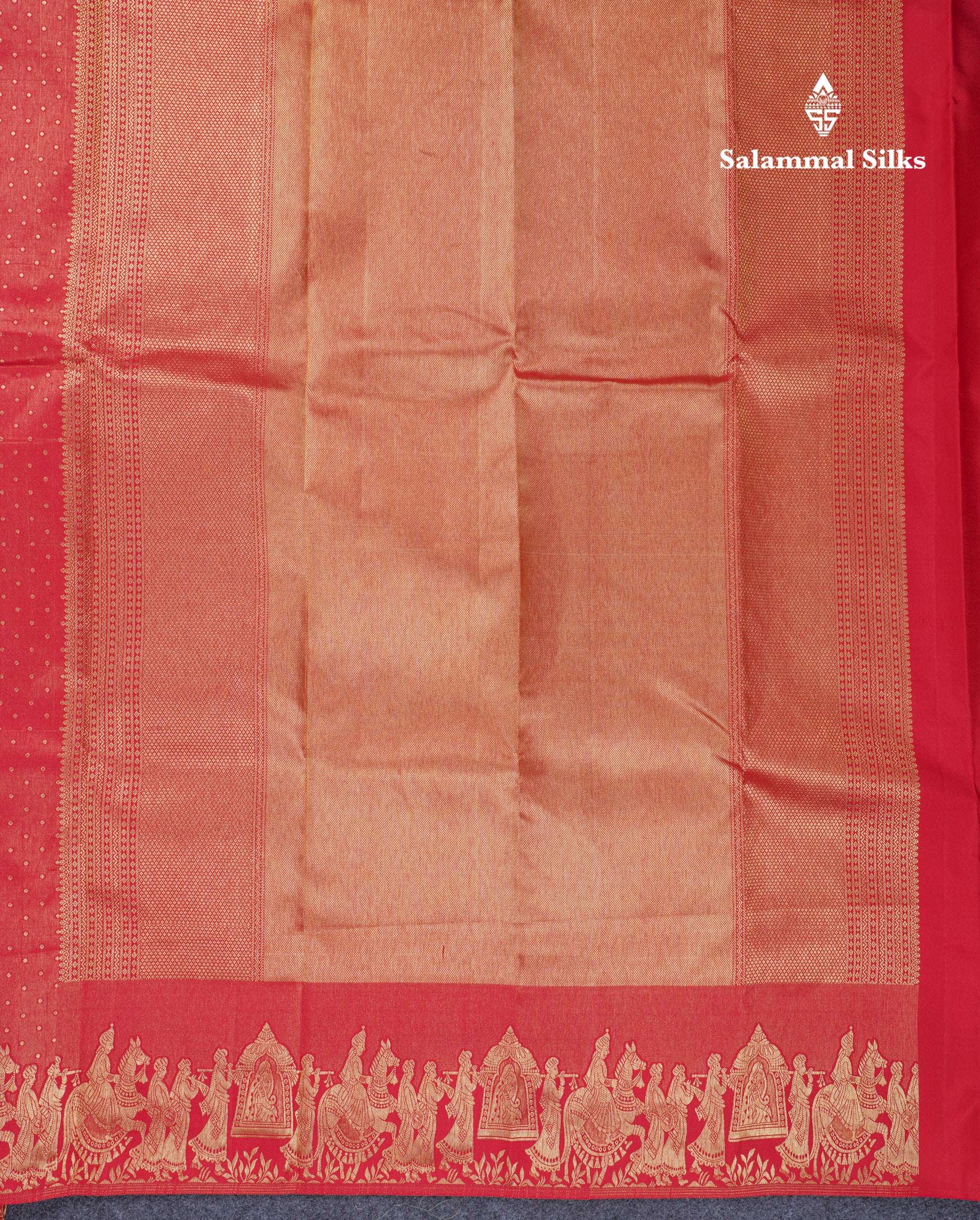 Salammal is known for its handloom sarees. In some sarees, there is cross-weaving between the body and the pallu, which is a sign of pure handloom sarees. This can be seen in Kanchipuram embossed sarees.