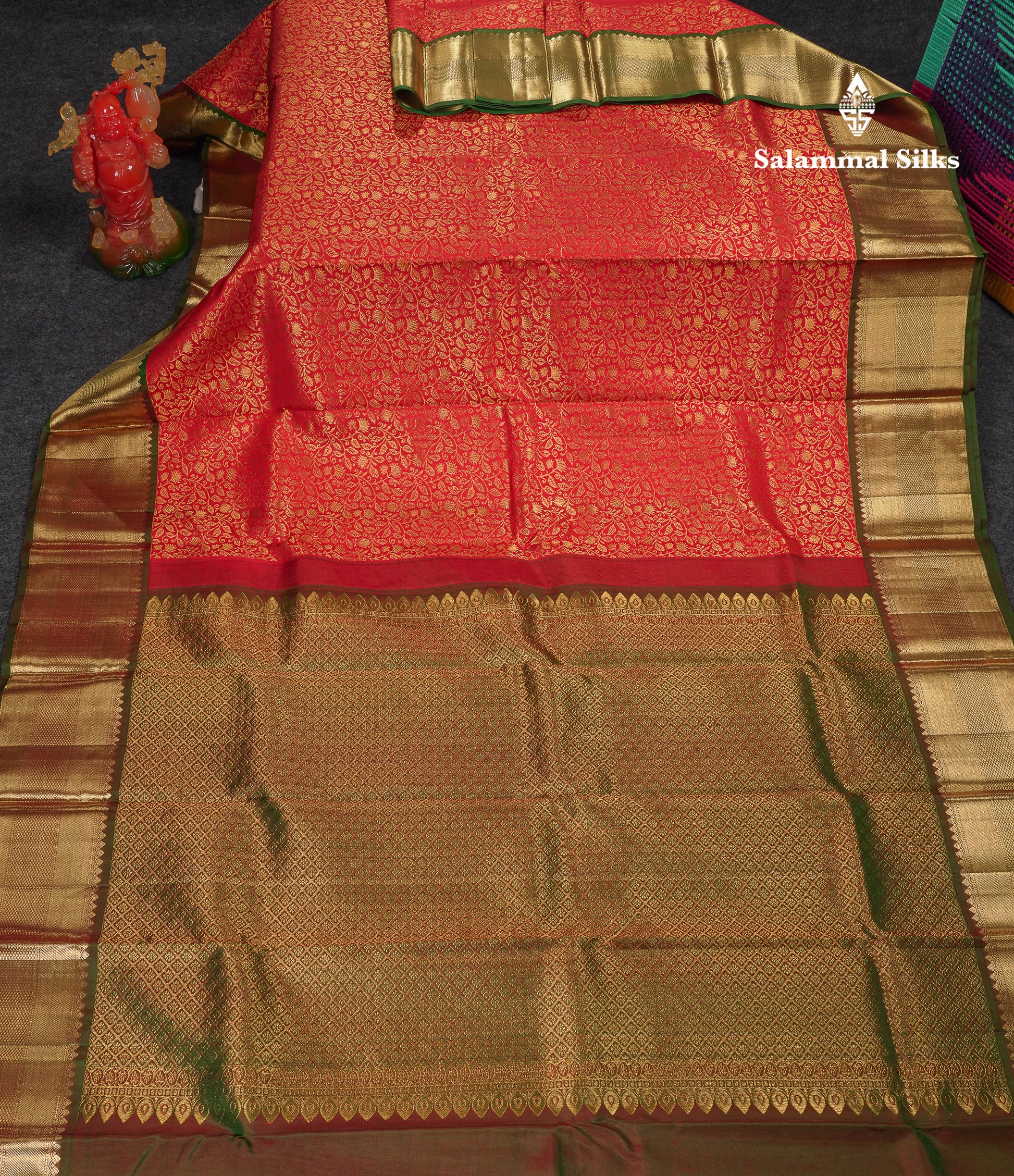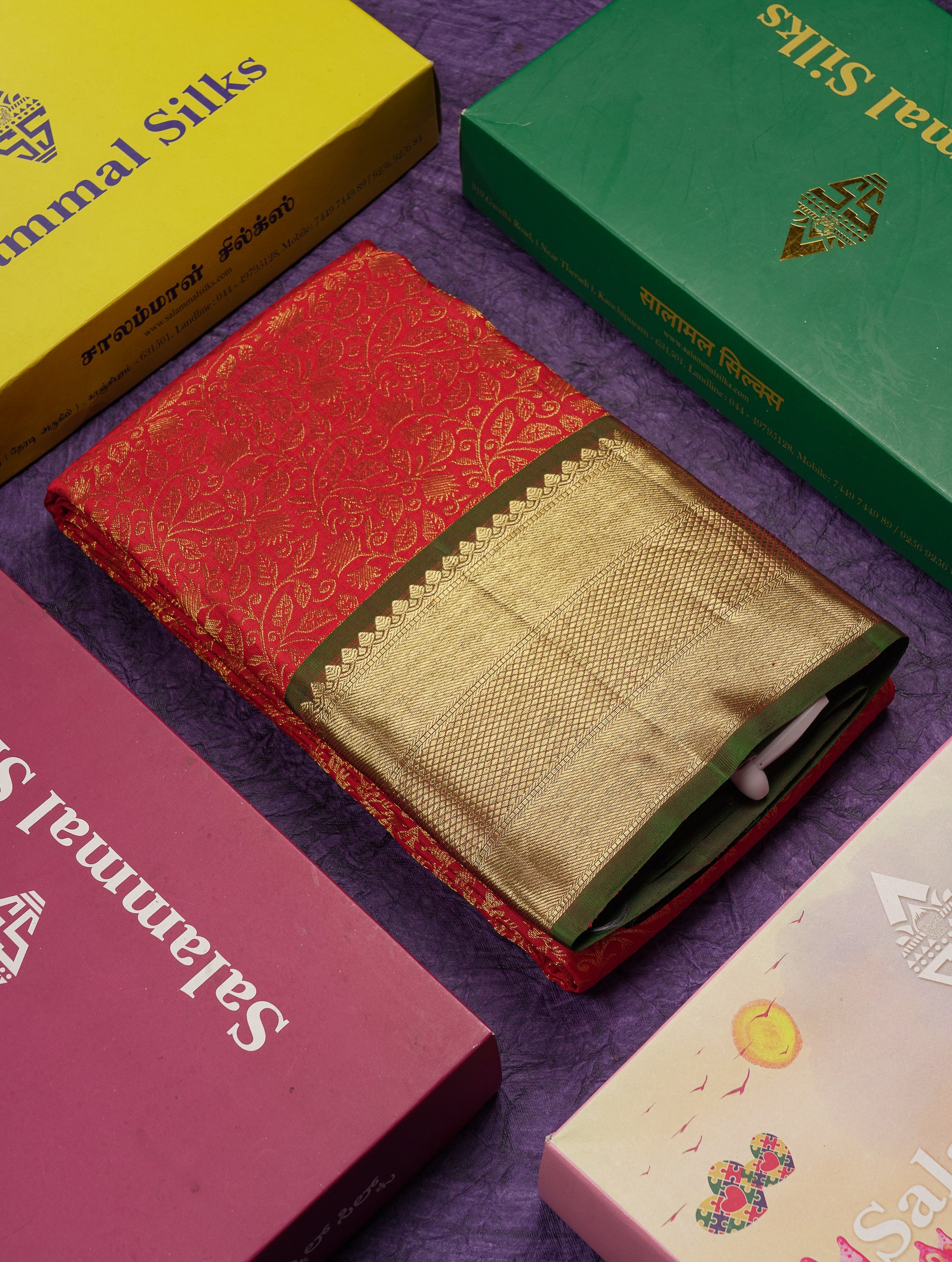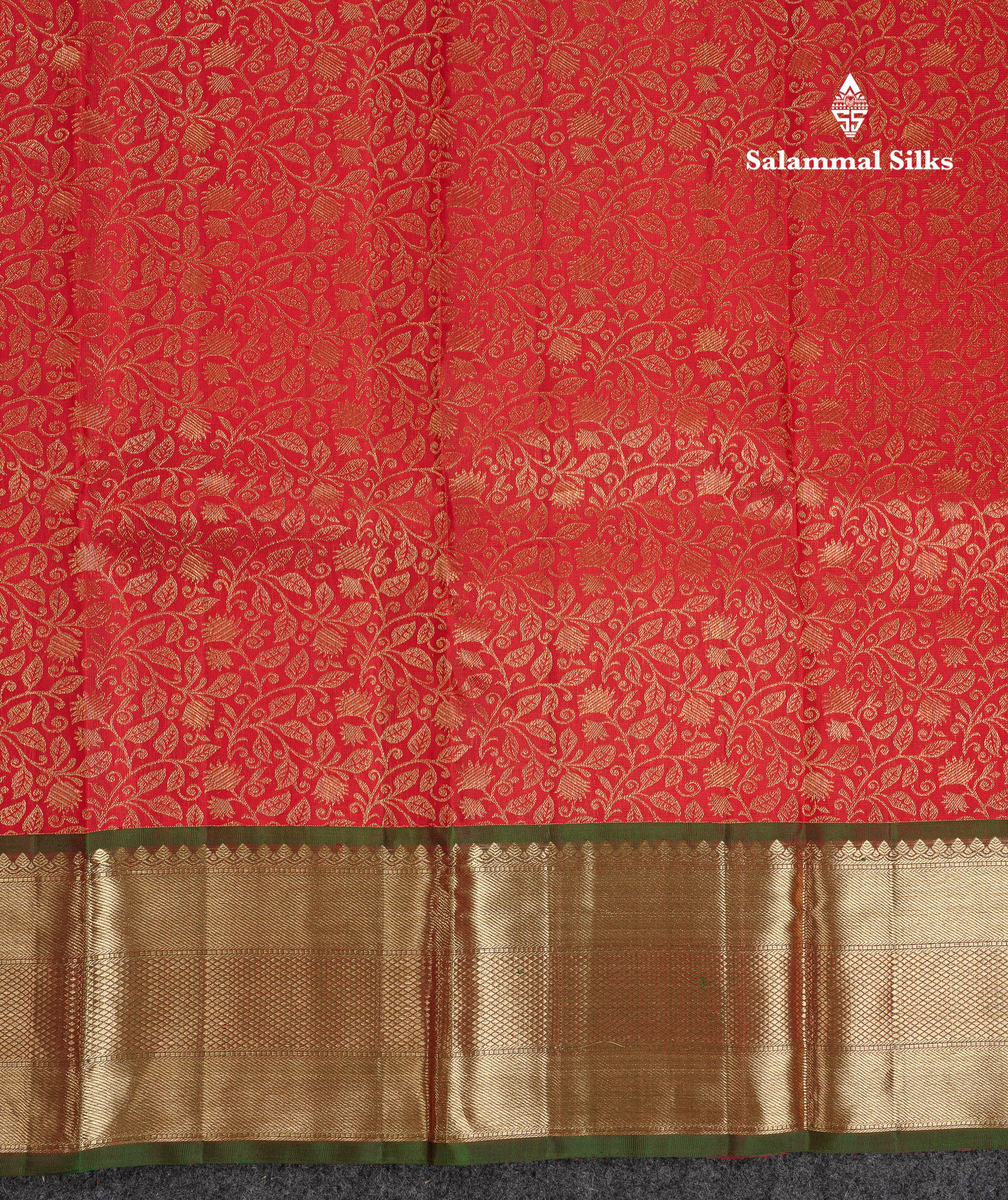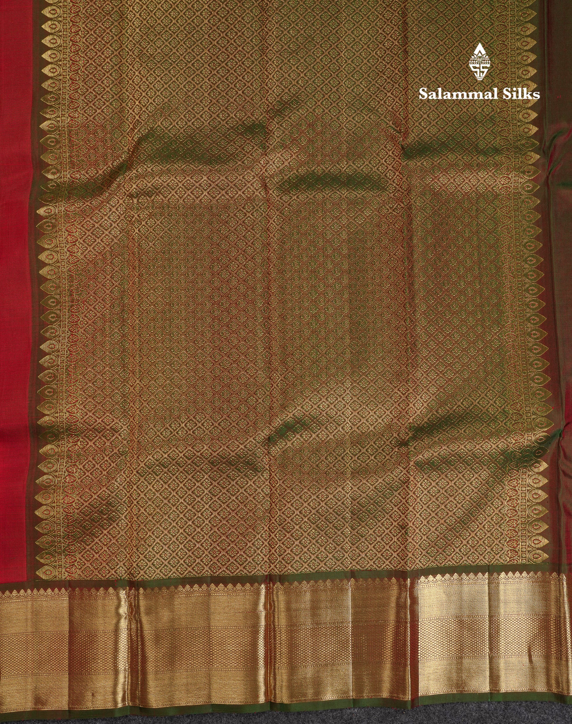 Salammal is known for its handloom sarees. In some sarees, there is cross-weaving between the body and the pallu, which is a sign of pure handloom sarees. This can be seen in Kanchipuram embossed sarees.
