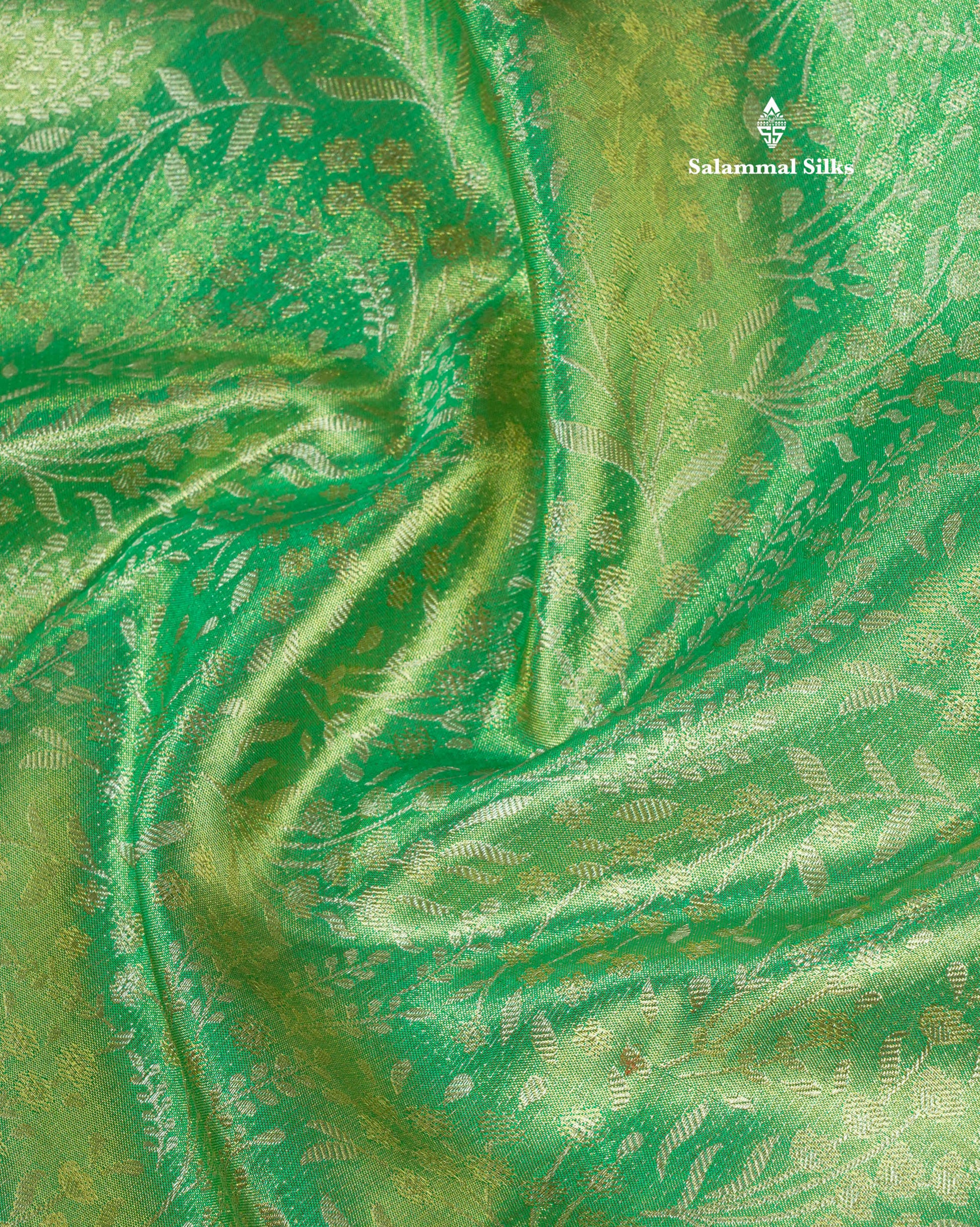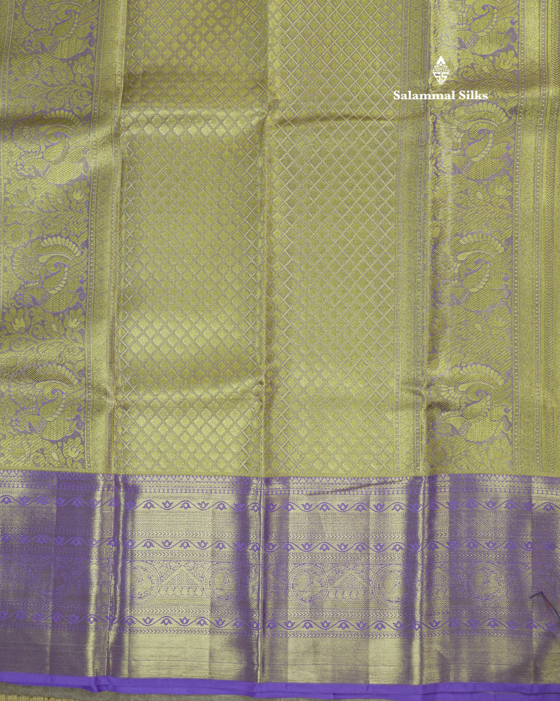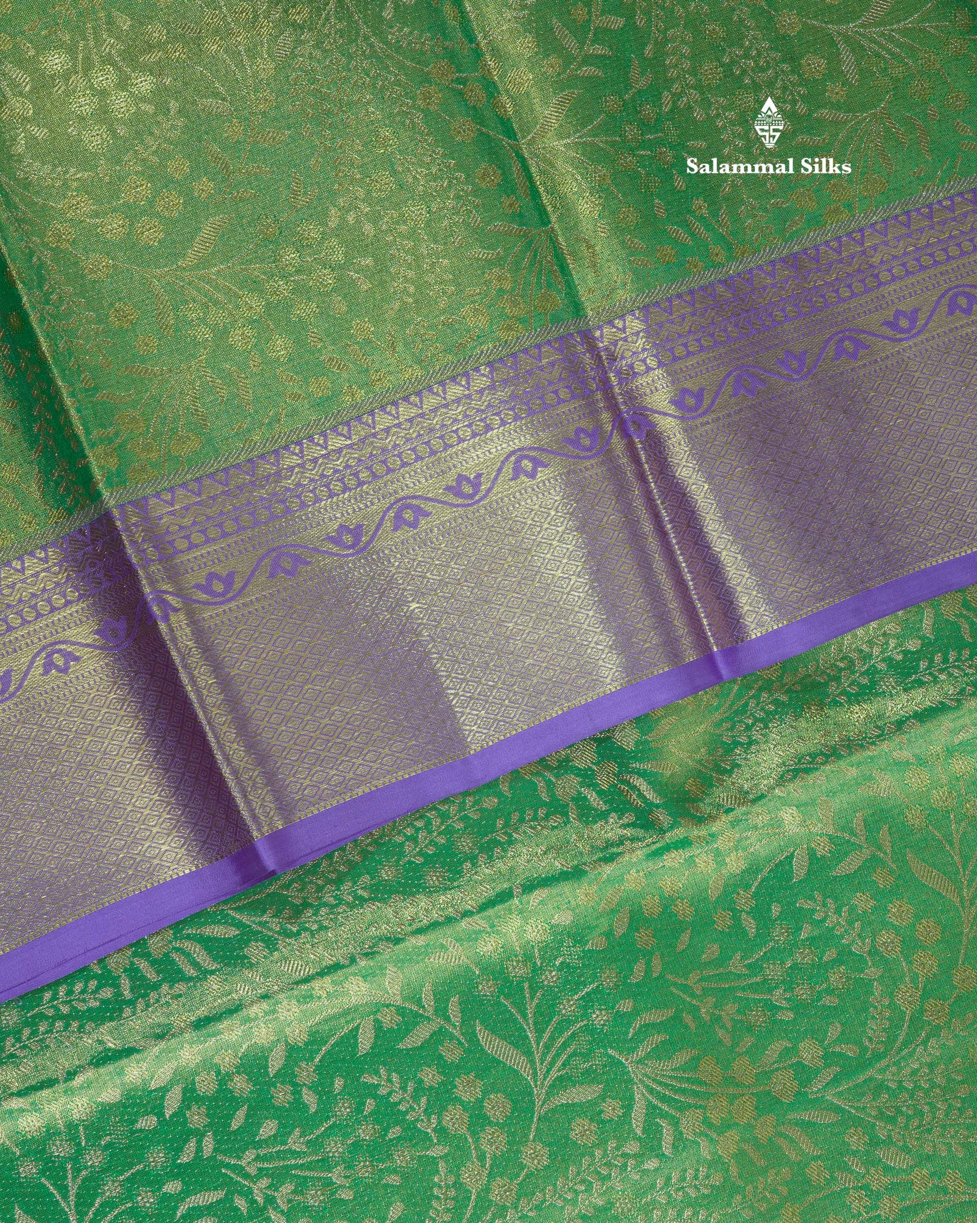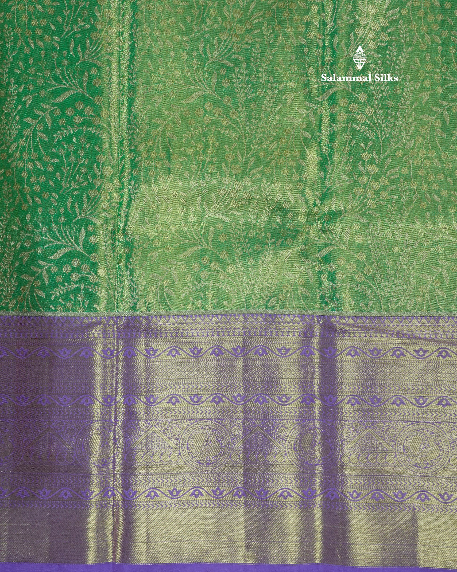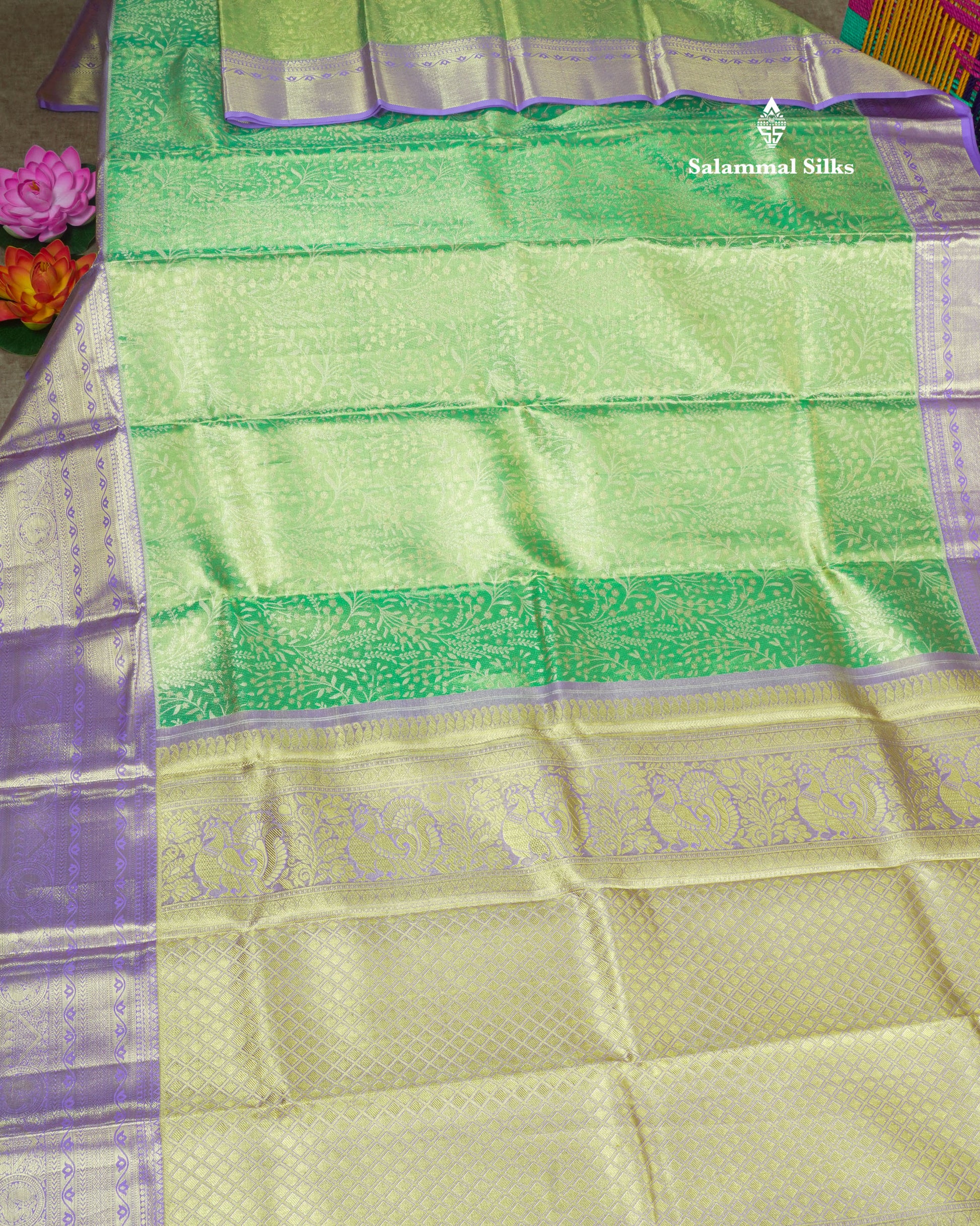 Beautiful Rexona Green Tissue Bridal Pure Kanjvaram Silk Saree With Lavander Border