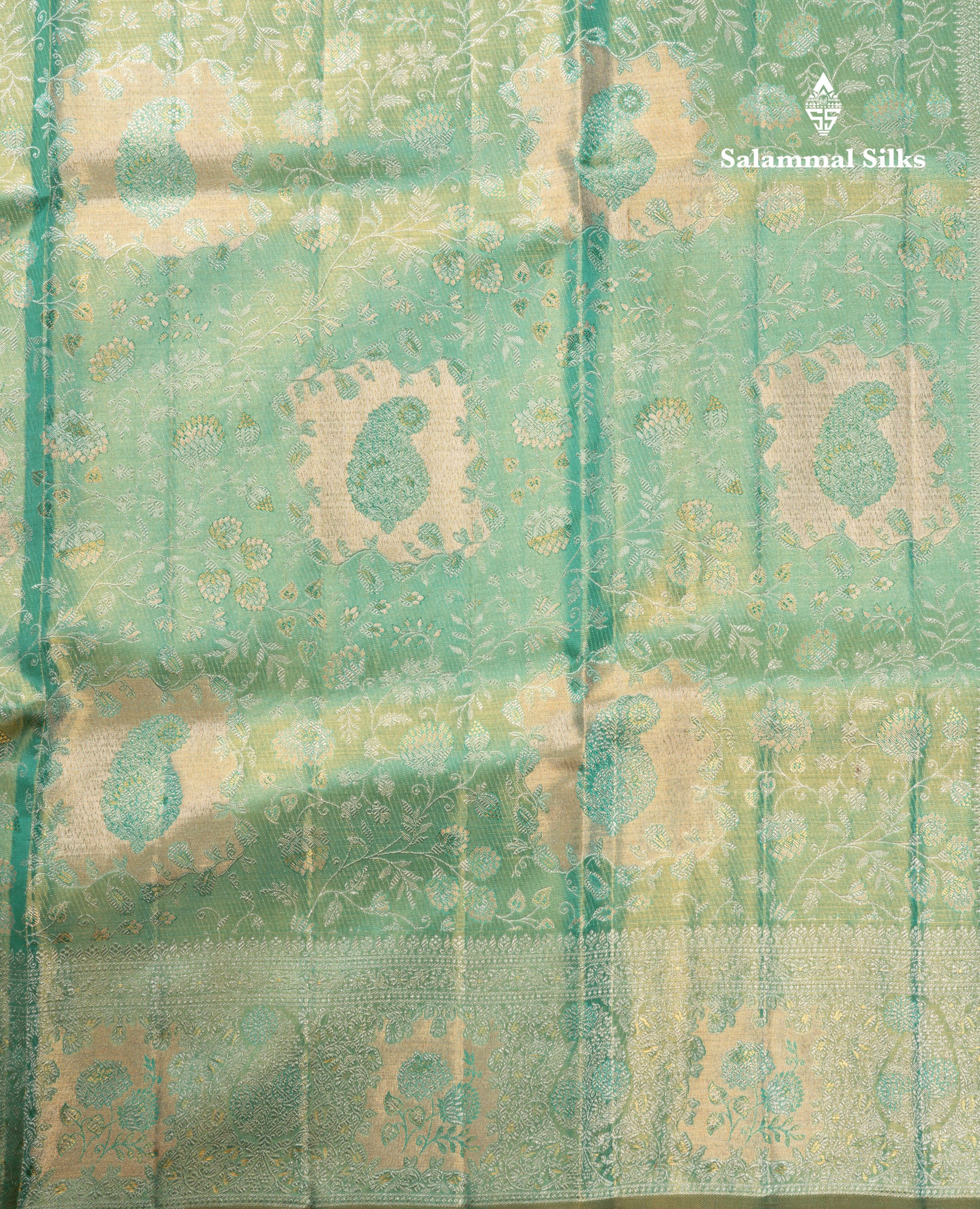 Salammal is known for its handloom sarees. In some sarees, there is cross-weaving between the body and the pallu, which is a sign of pure handloom sarees. This can be seen in Kanchipuram embossed sarees.