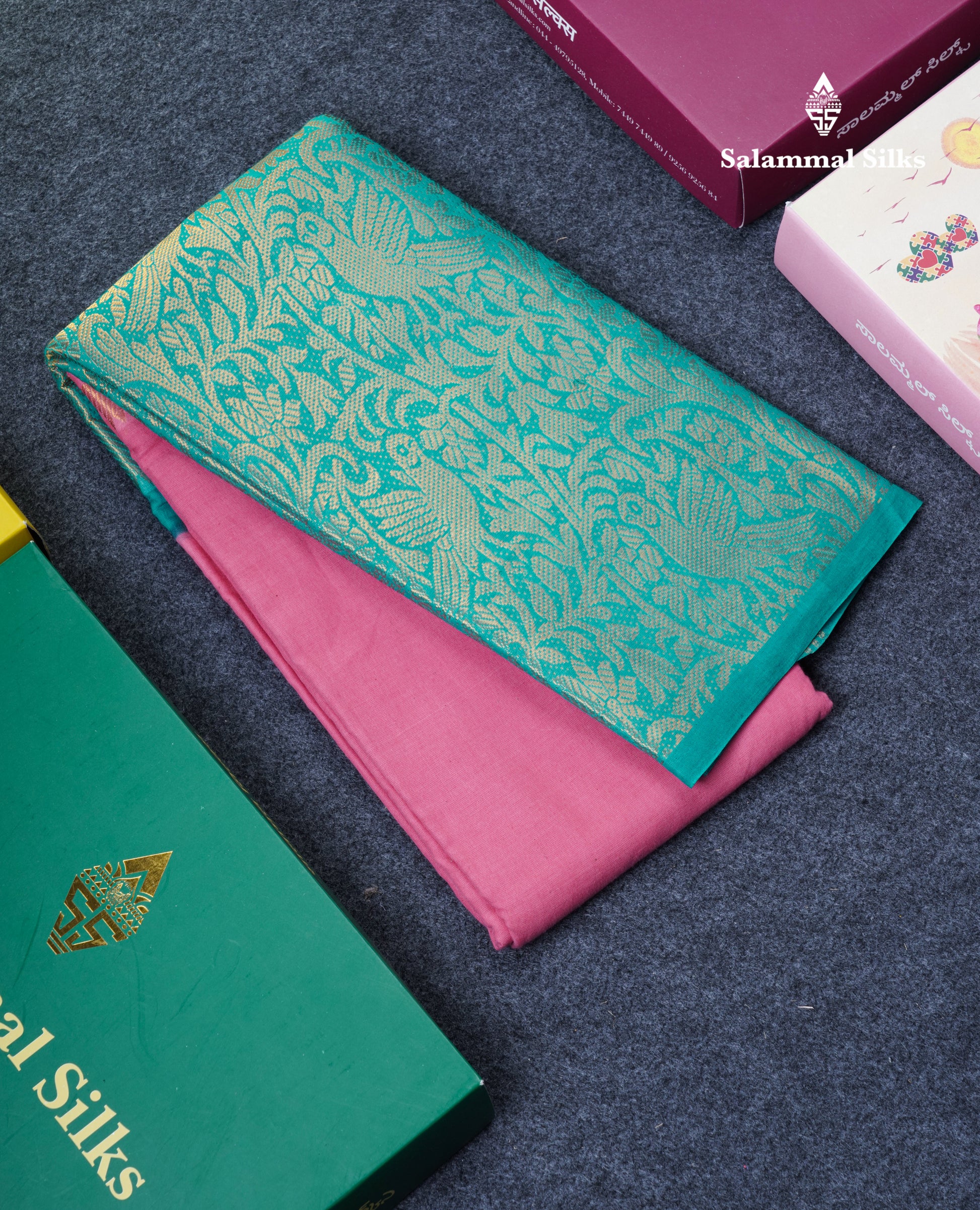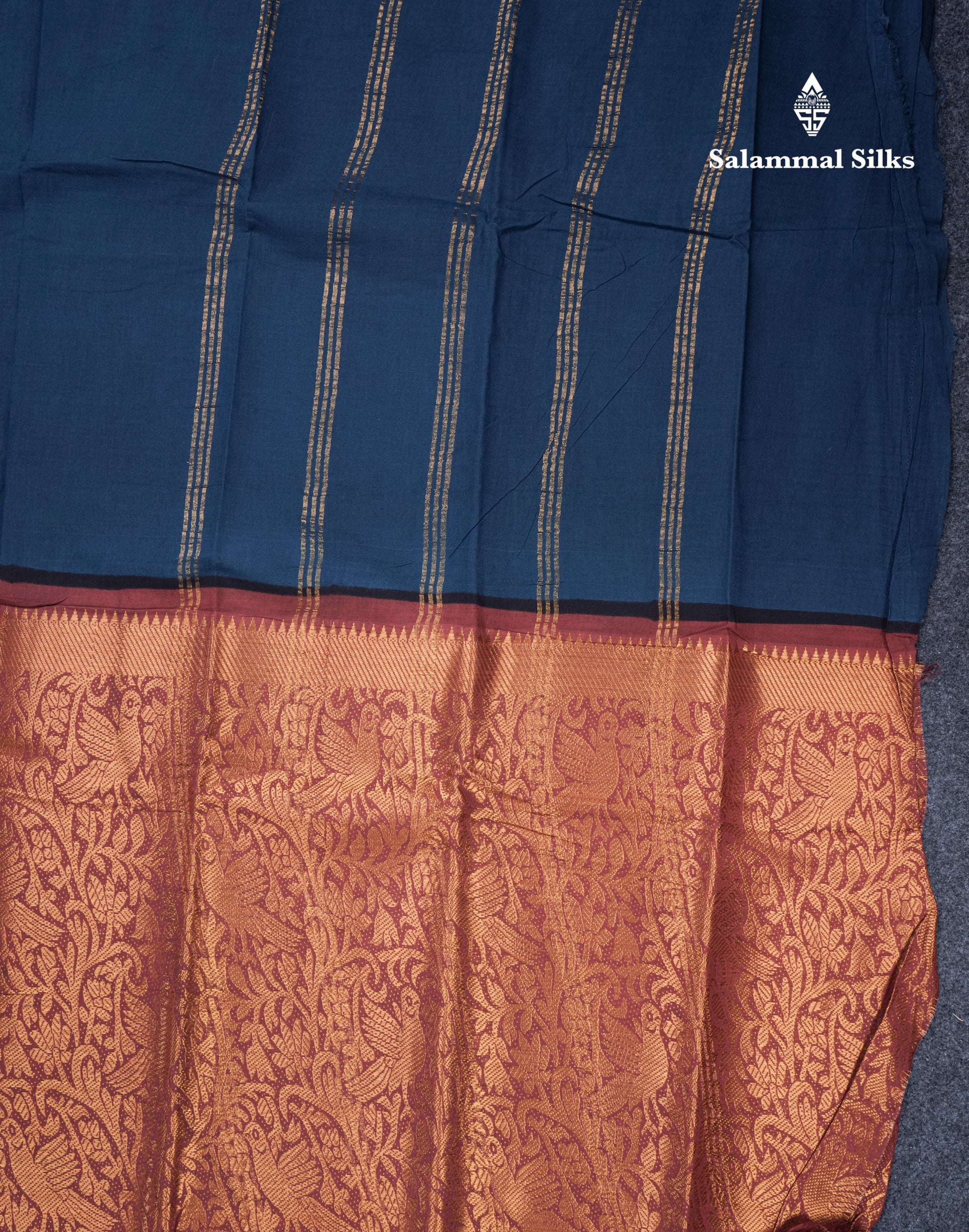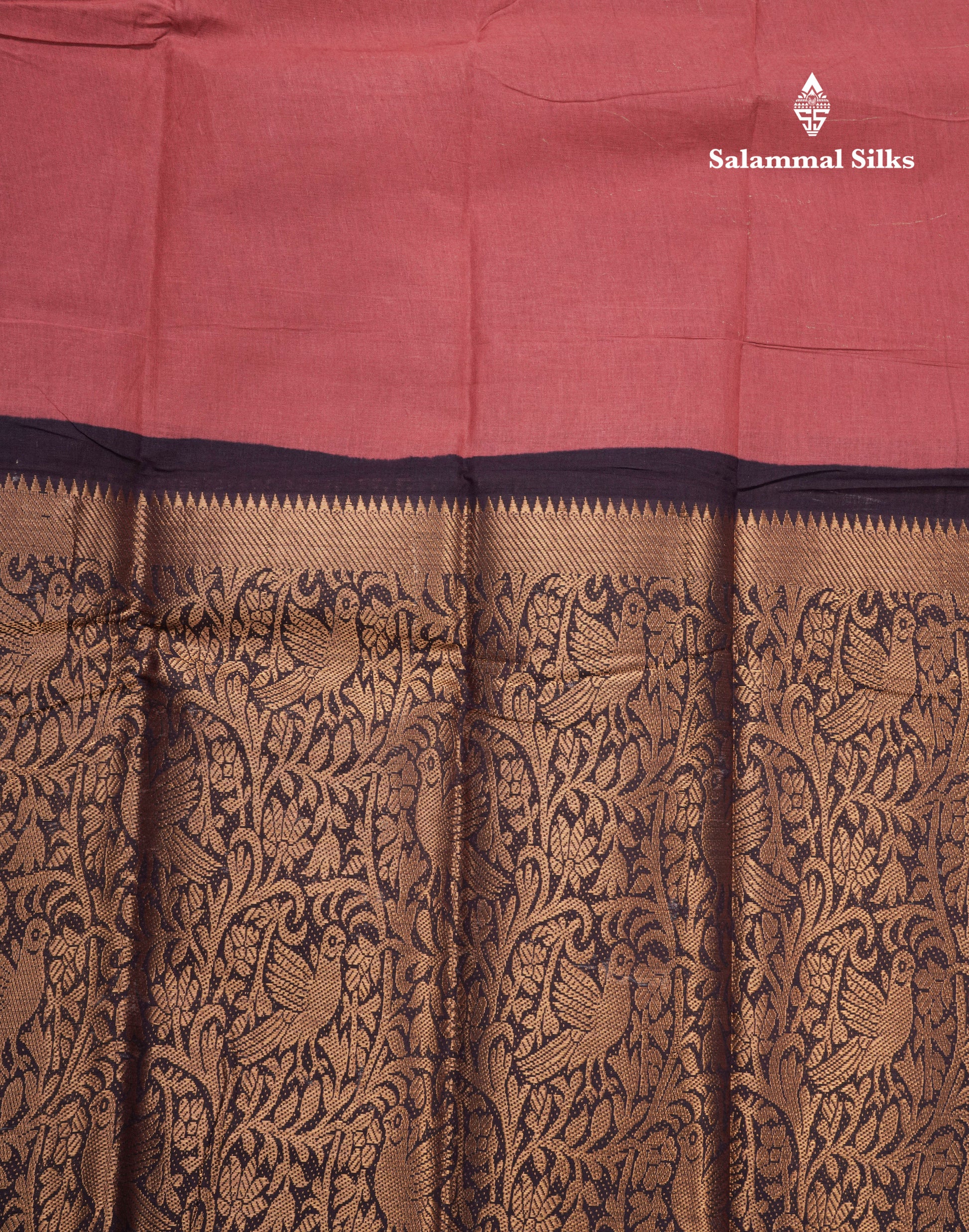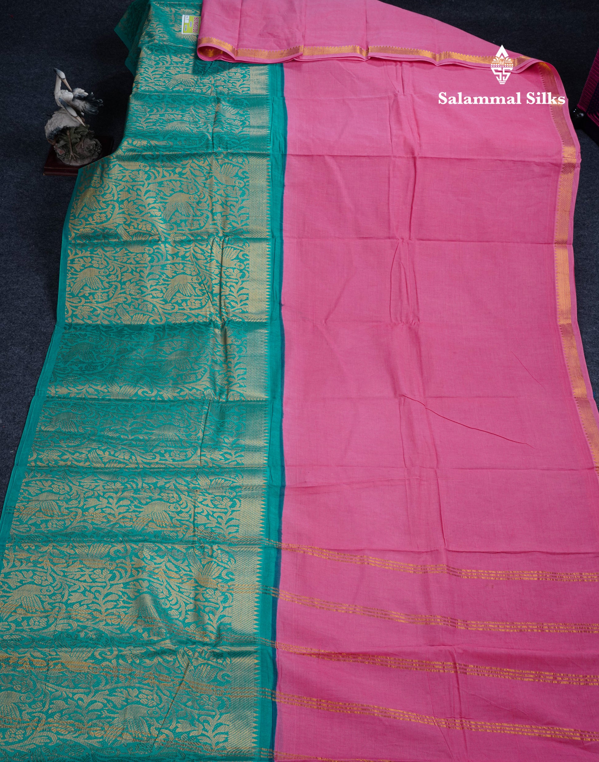 Salammal is known for its handloom sarees. In some sarees, there is cross-weaving between the body and the pallu, which is a sign of pure handloom sarees. This can be seen in Kanchipuram embossed sarees.