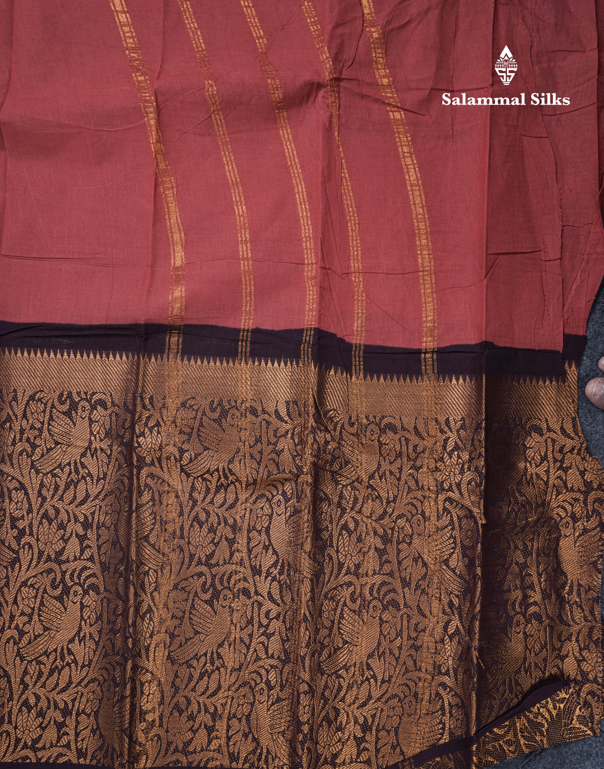 Beautiful Rust Orange Plain Pure Sungudi Cotton Saree With Contrast Brown Long Border