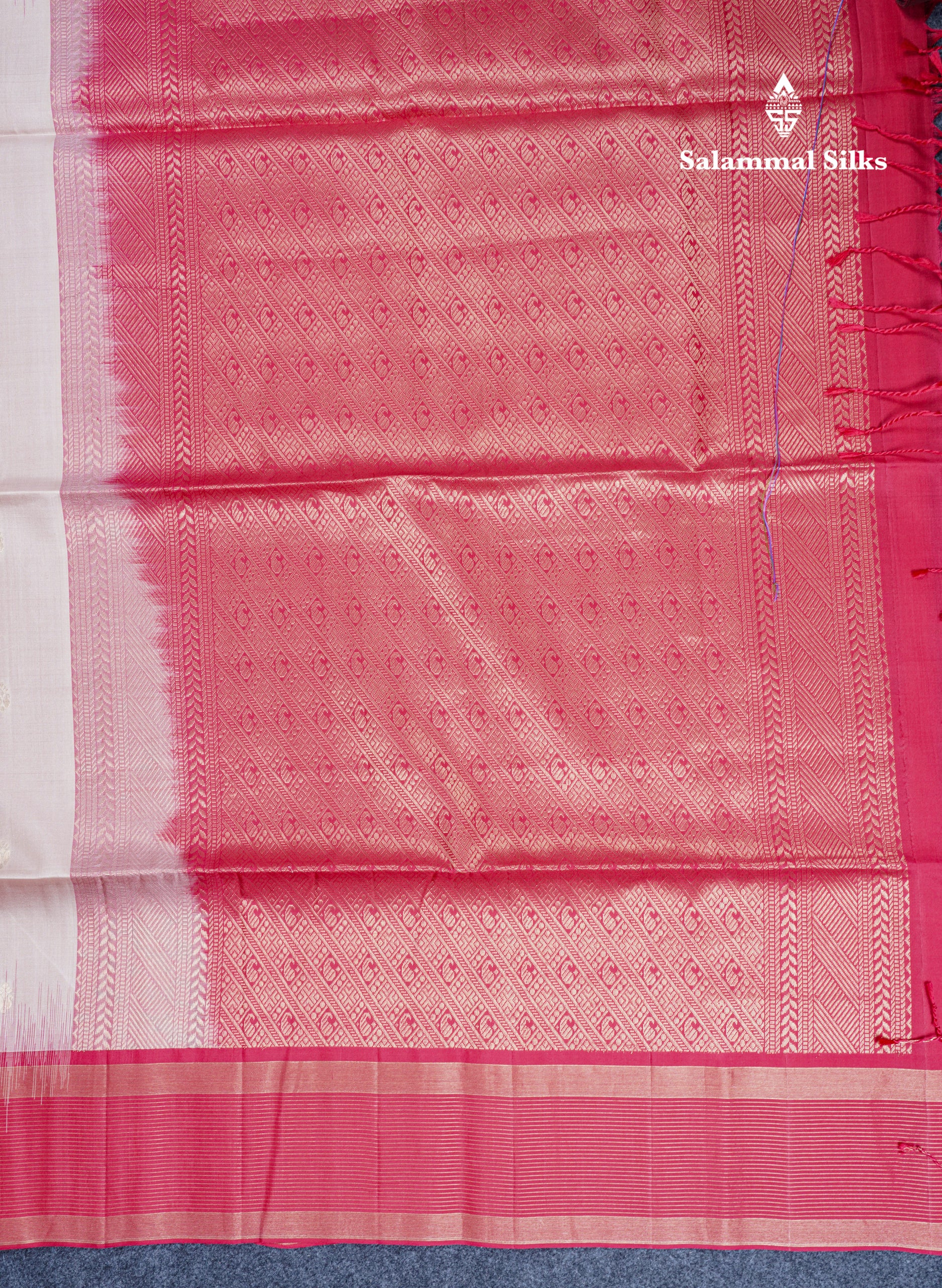 Salammal is known for its handloom sarees. In some sarees, there is cross-weaving between the body and the pallu, which is a sign of pure handloom sarees. This can be seen in Kanchipuram embossed sarees.