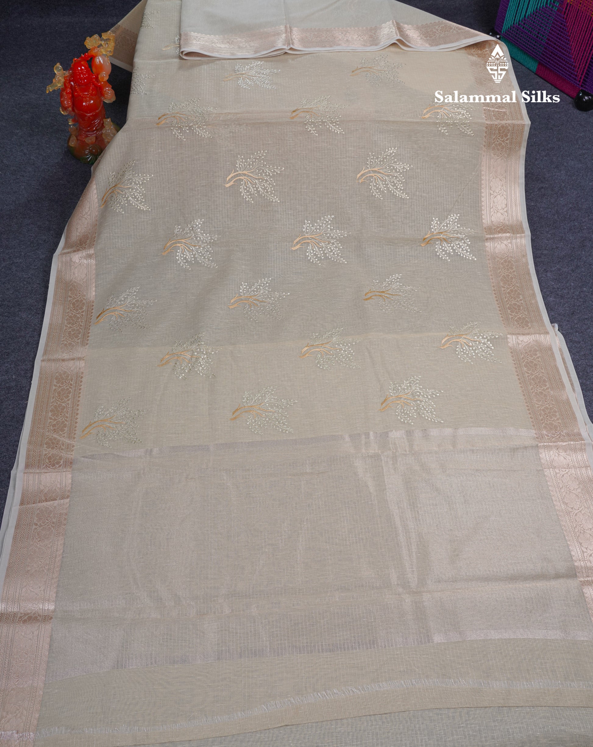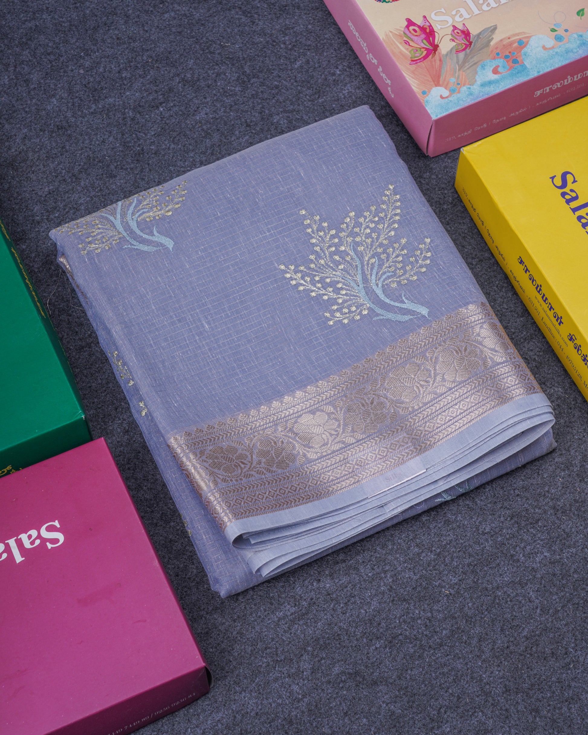 Salammal is known for its handloom sarees. In some sarees, there is cross-weaving between the body and the pallu, which is a sign of pure handloom sarees. This can be seen in Kanchipuram embossed sarees.