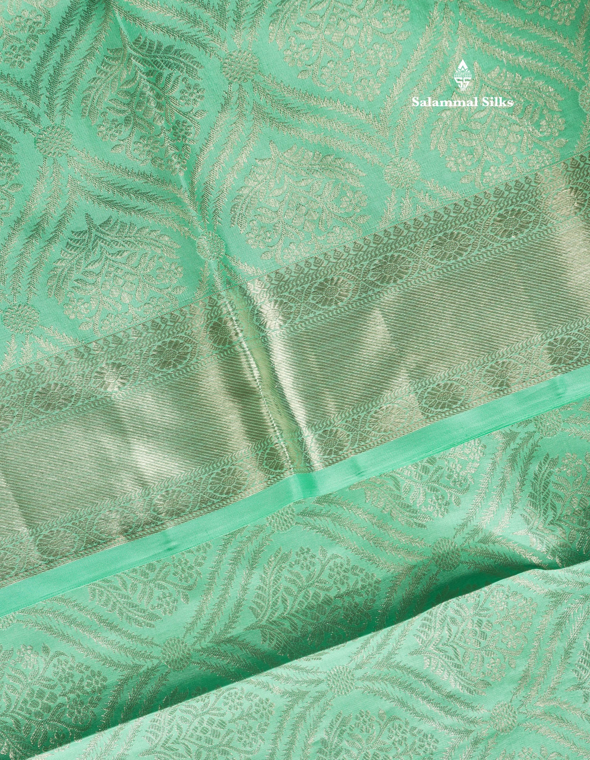 Salammal is known for its handloom sarees. In some sarees, there is cross-weaving between the body and the pallu, which is a sign of pure handloom sarees. This can be seen in Kanchipuram embossed sarees.