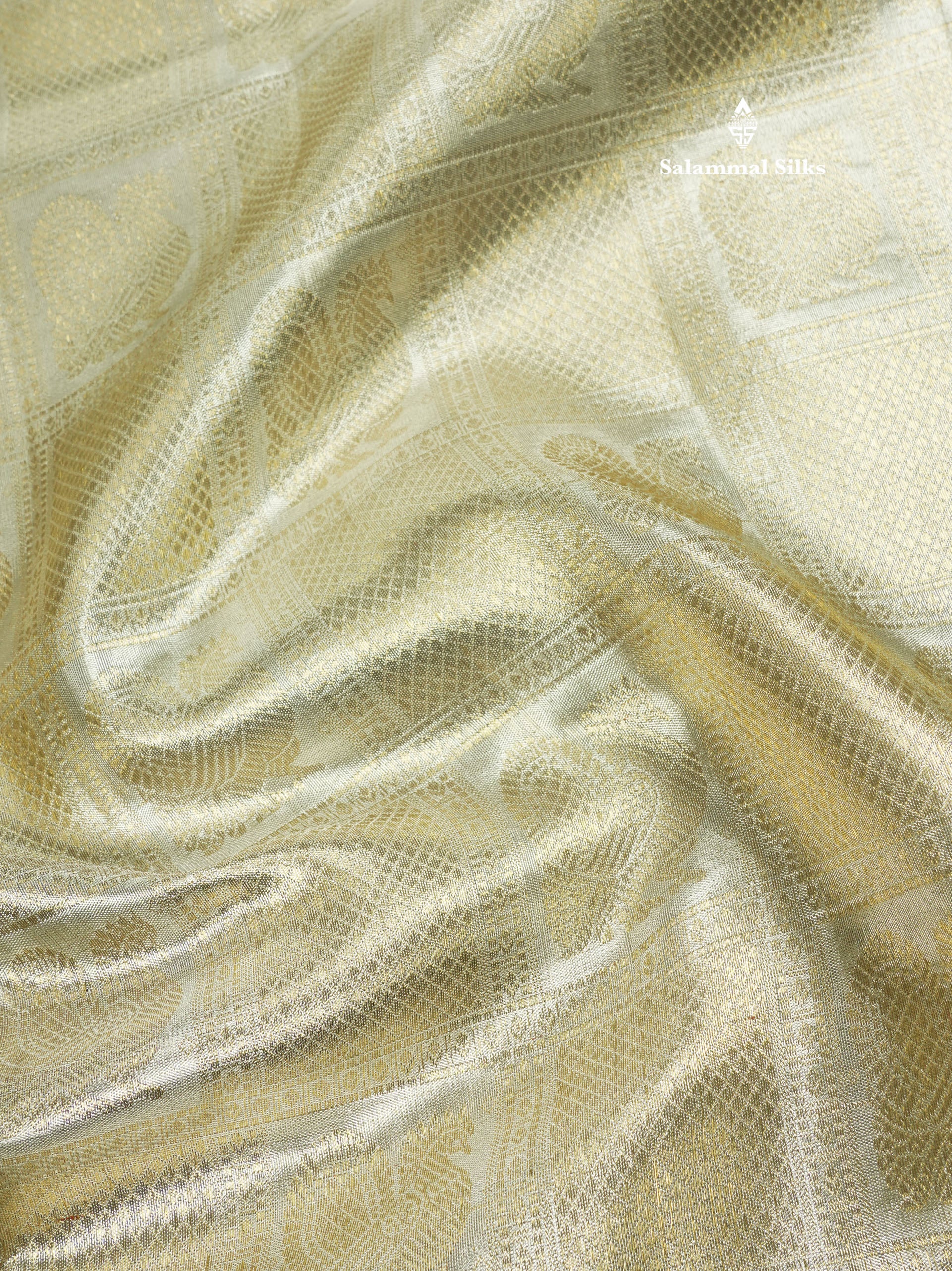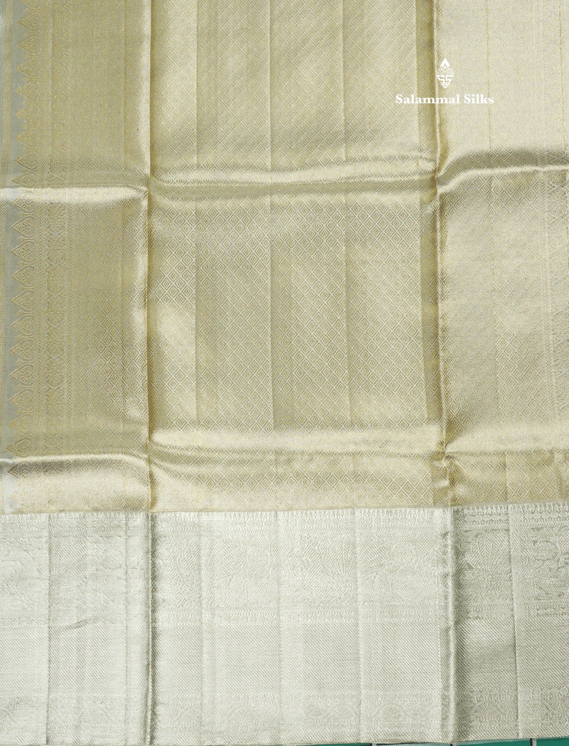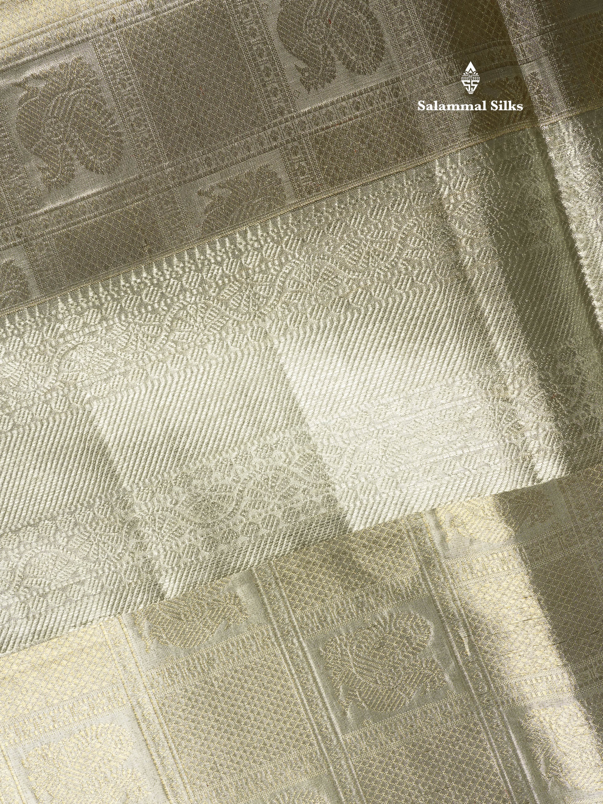 Beautiful Silver Colour Checks With Peacock Butta Tissue Pure Kanjivaram Silk Saree (2G) Zari With Self Border
