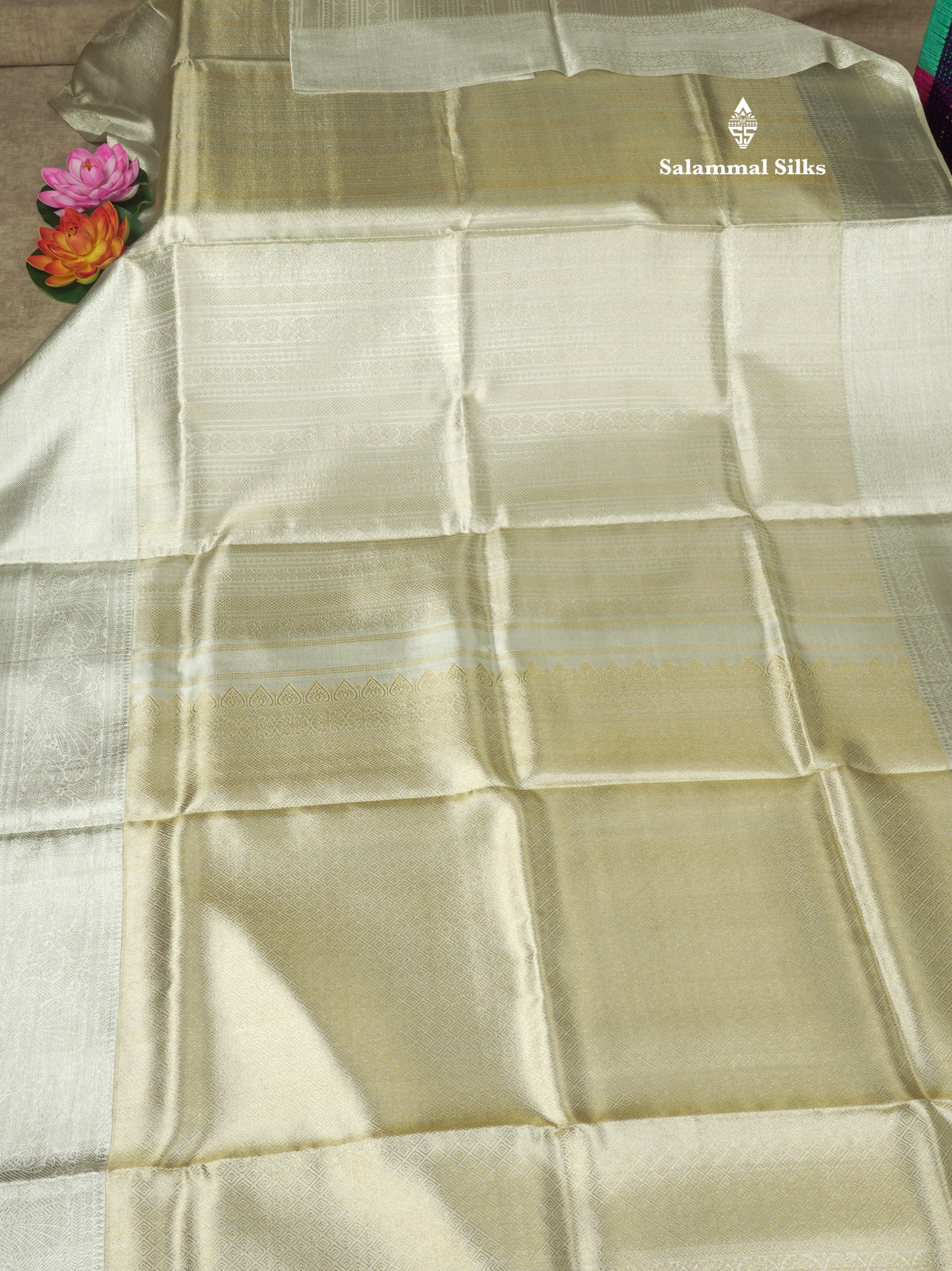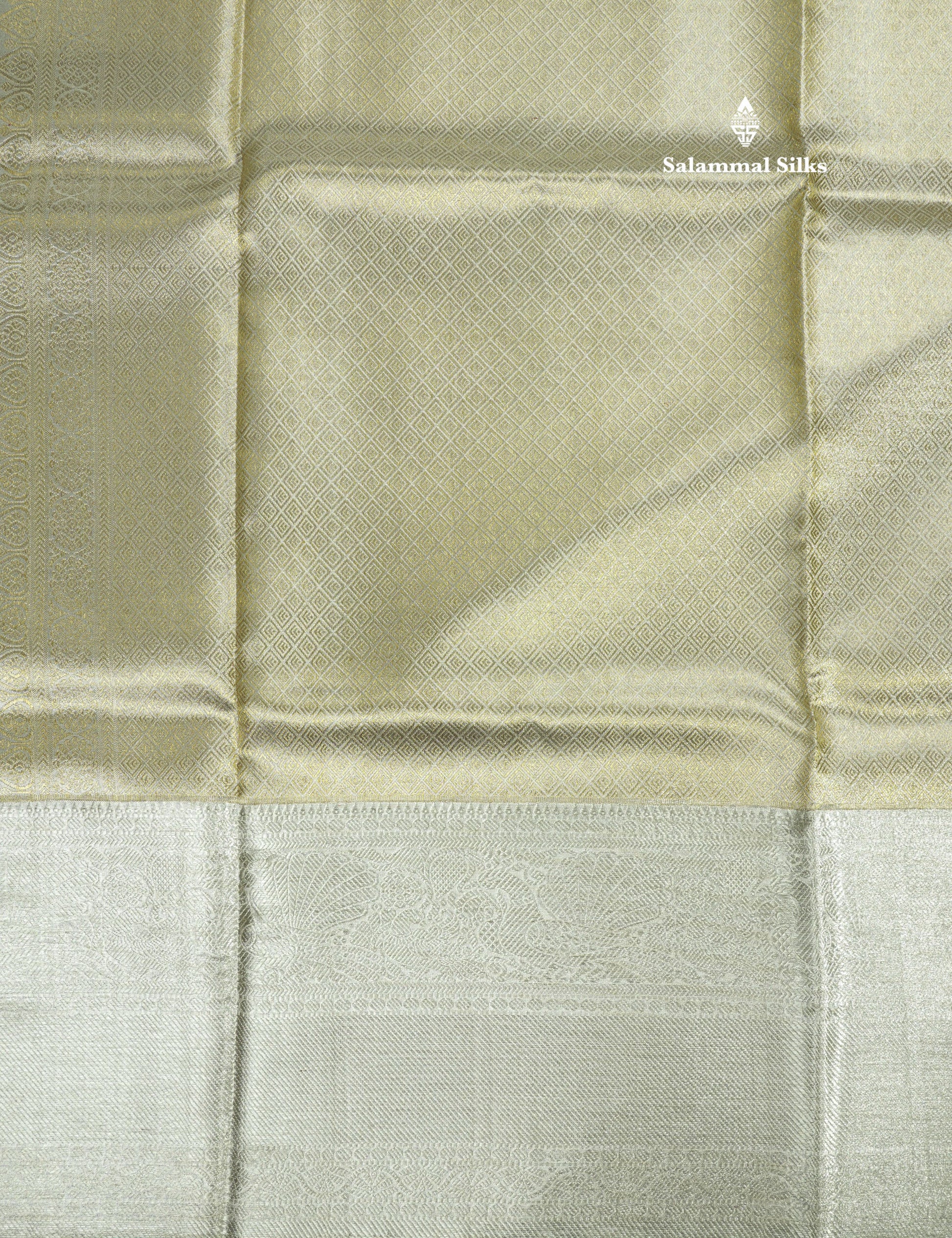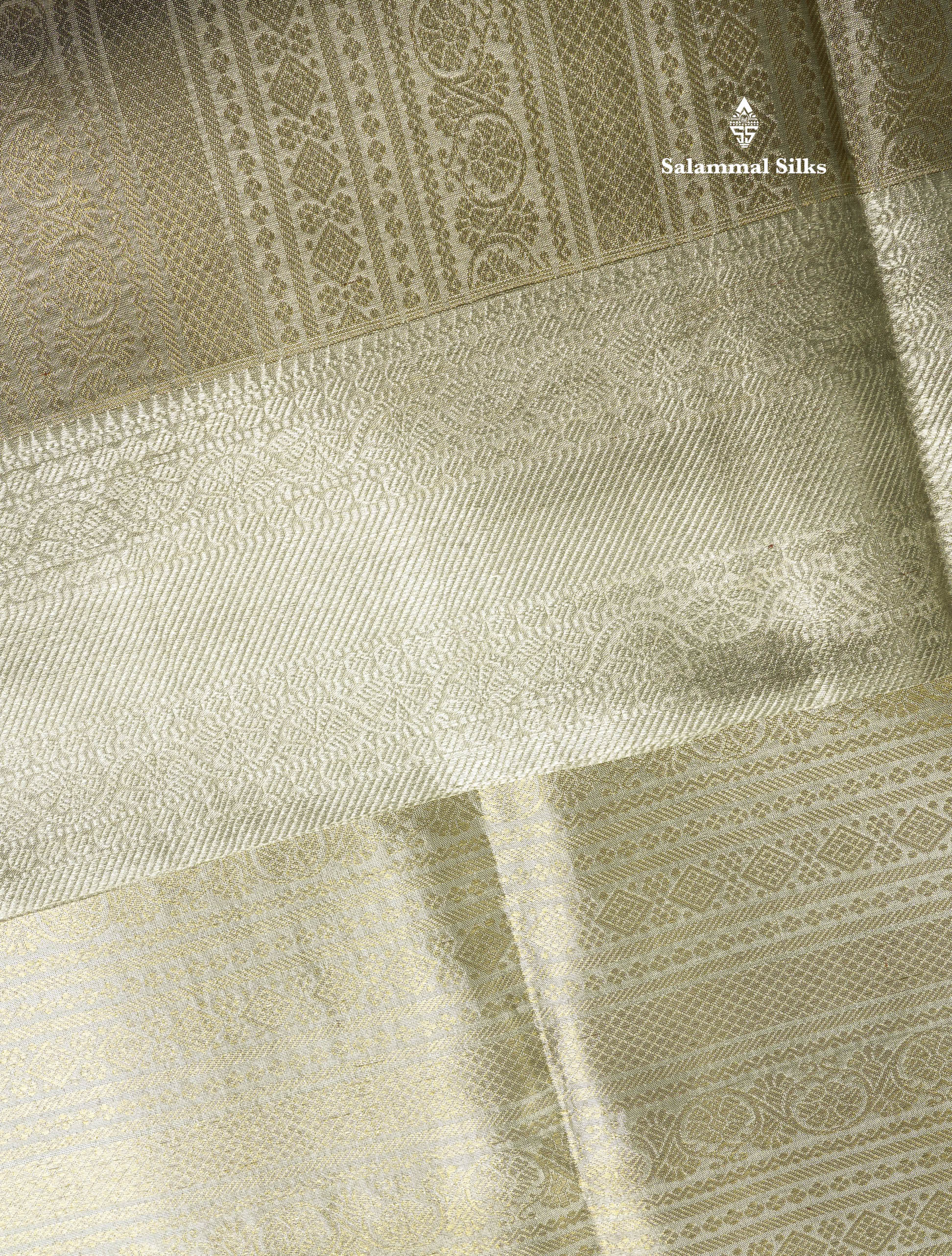 Beautiful Silver Colour Tissue Pure Kanjivaram Silk Saree (2G) Zari With Self Border
