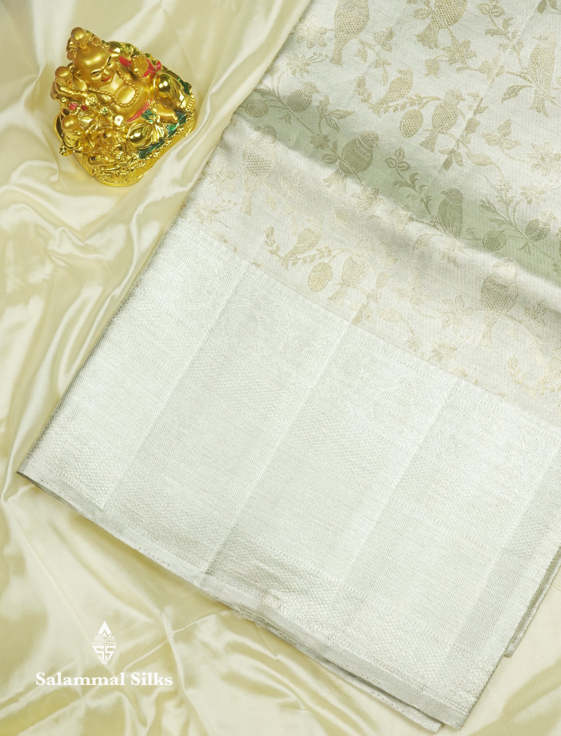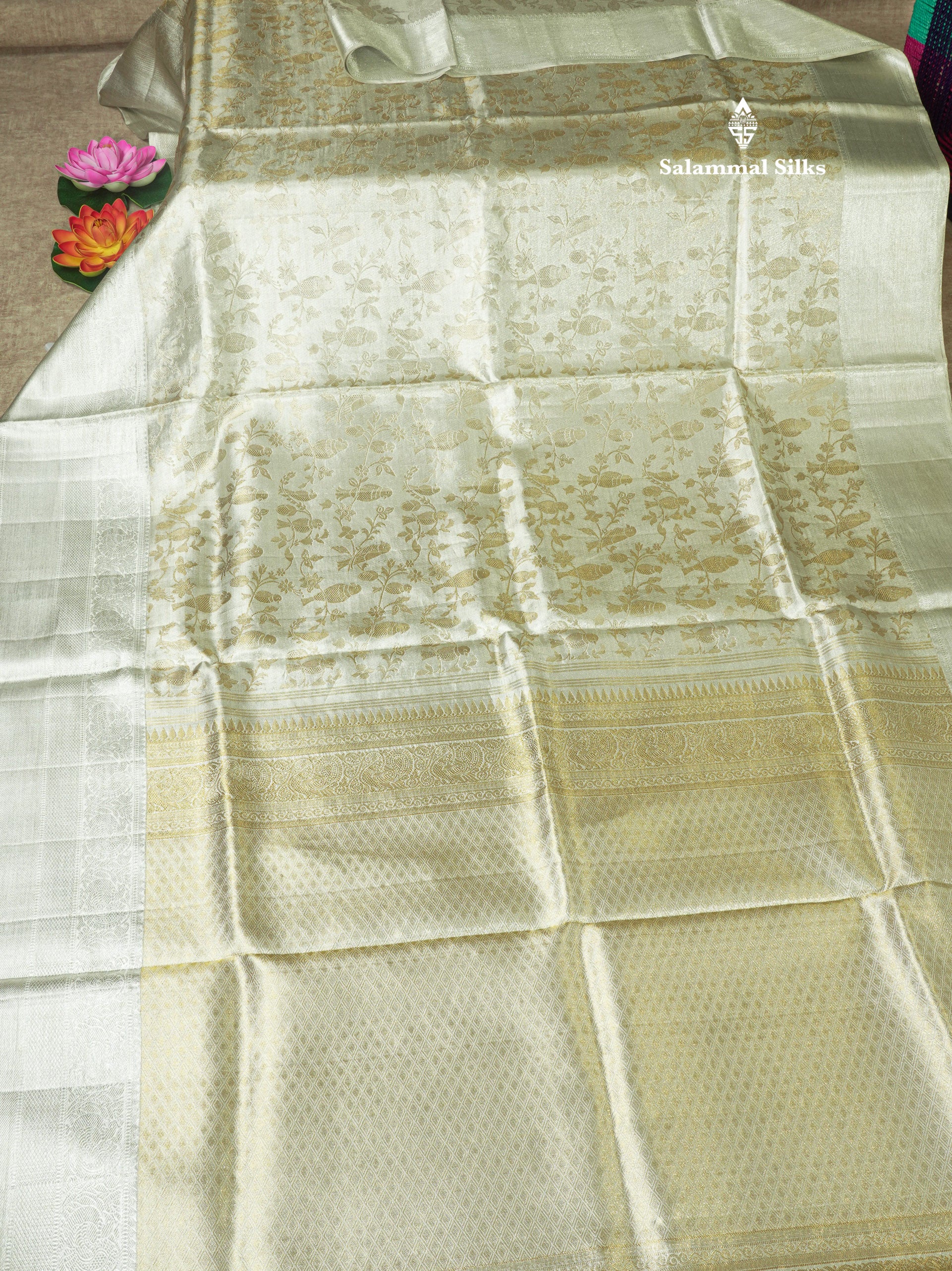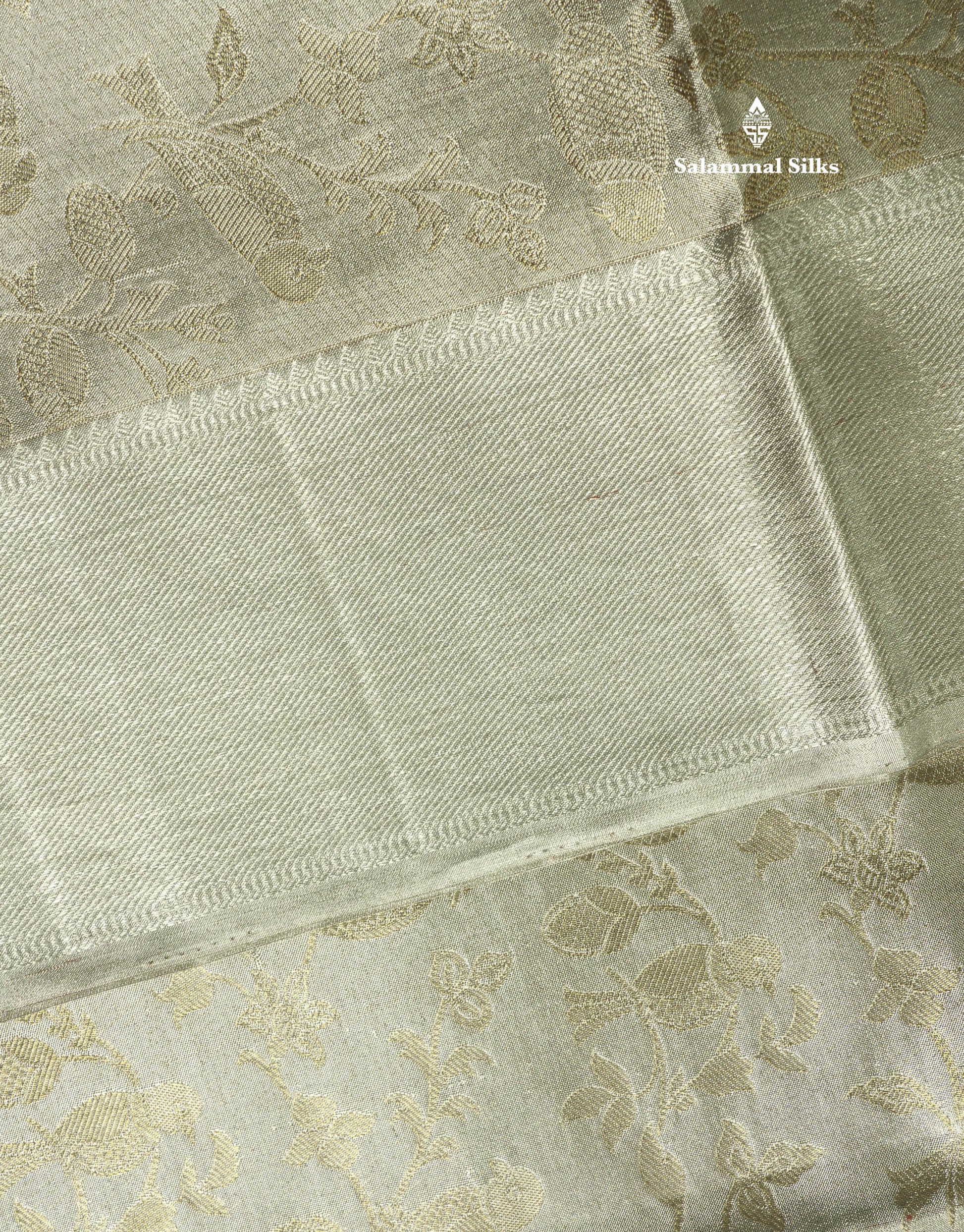 Beautiful Silver Colour Tissue Pure Kanjivaram Silk Saree (2G) Zari With Self Border