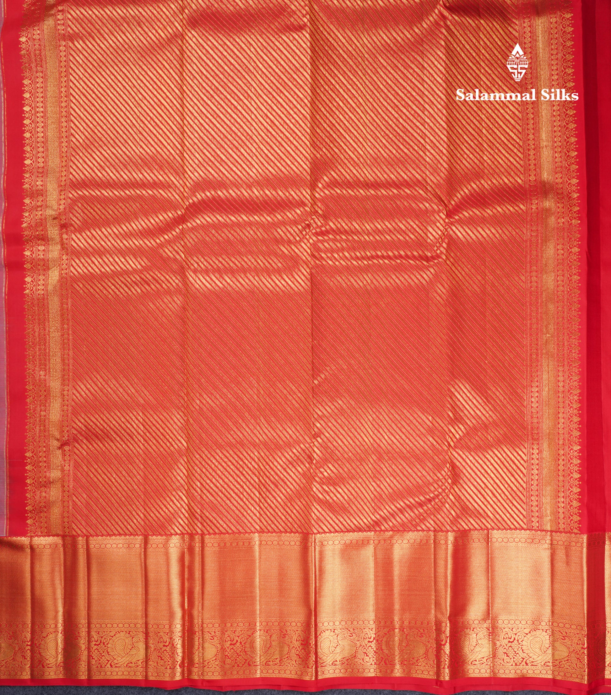Salammal is known for its handloom sarees. In some sarees, there is cross-weaving between the body and the pallu, which is a sign of pure handloom sarees. This can be seen in Kanchipuram embossed sarees.