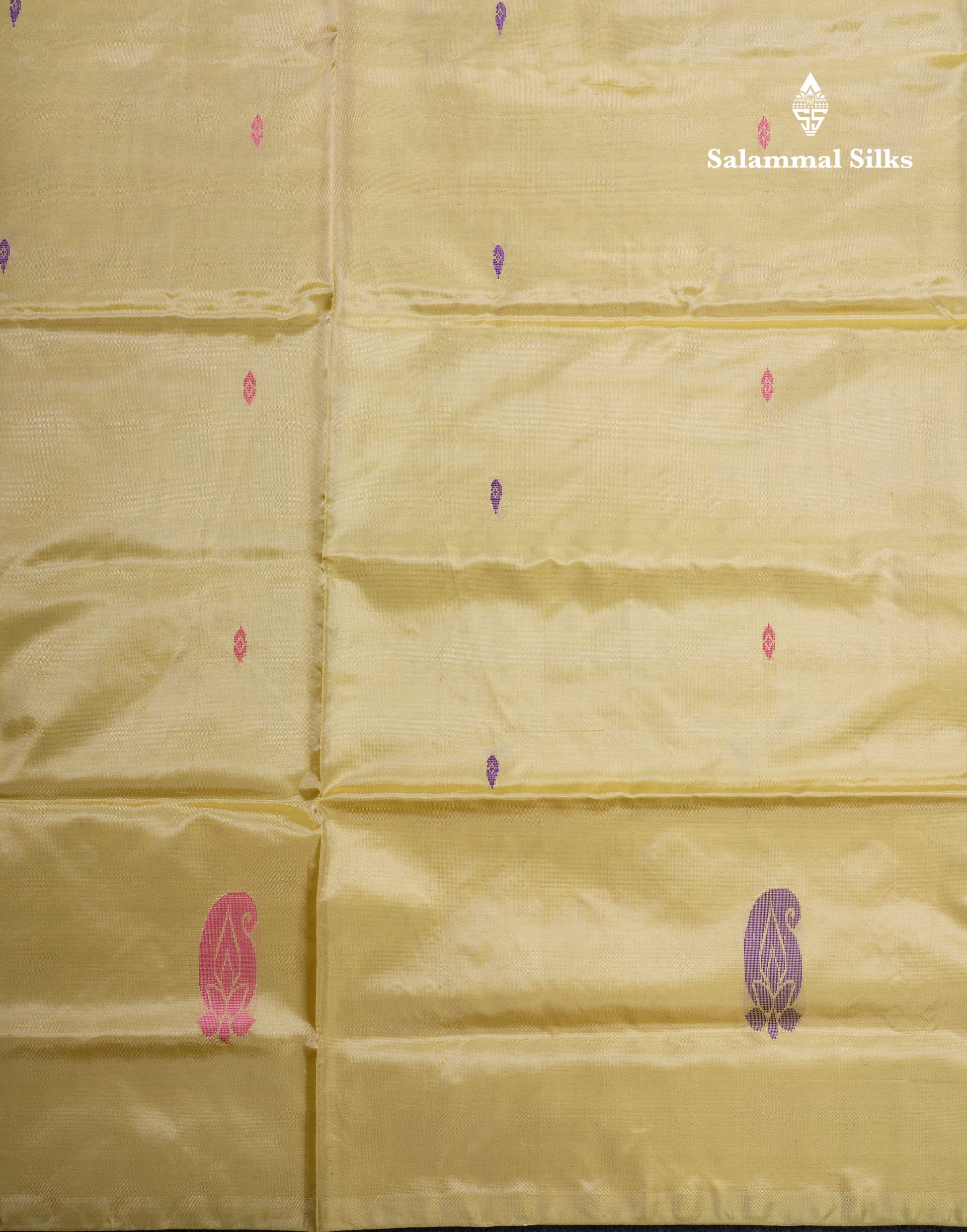 Salammal is known for its handloom sarees. In some sarees, there is cross-weaving between the body and the pallu, which is a sign of pure handloom sarees. This can be seen in Kanchipuram embossed sarees.
