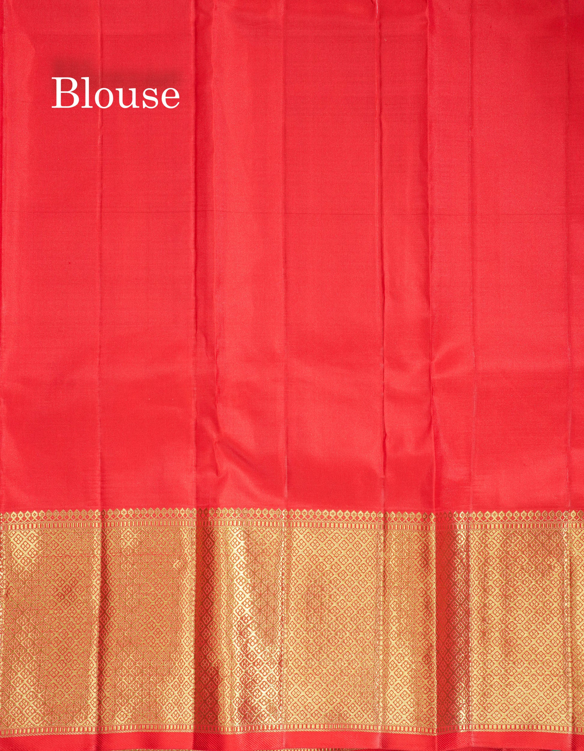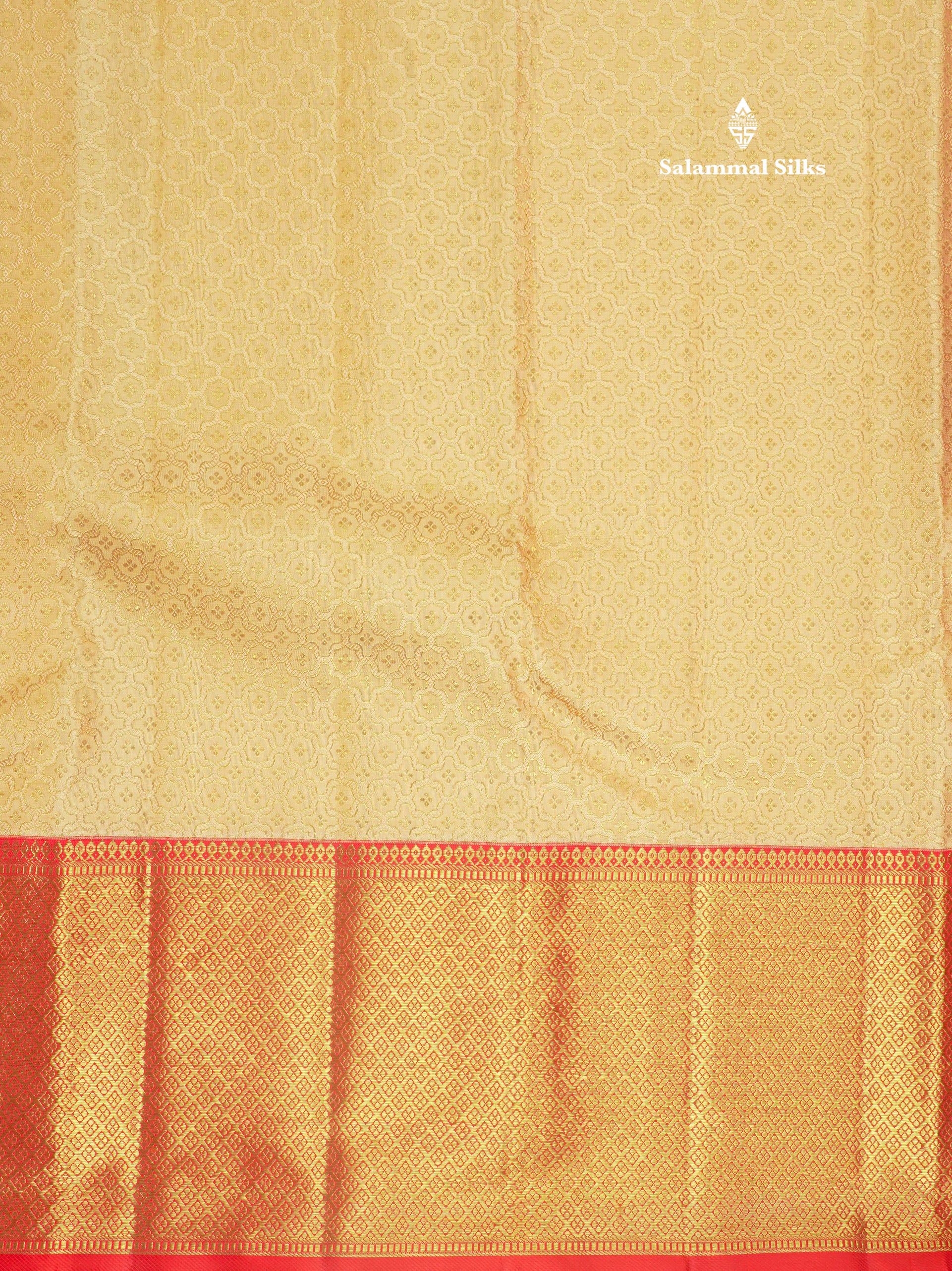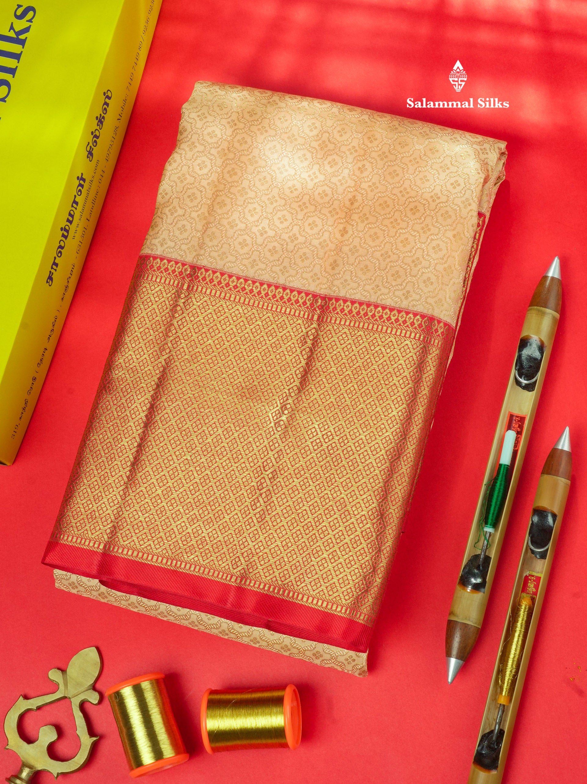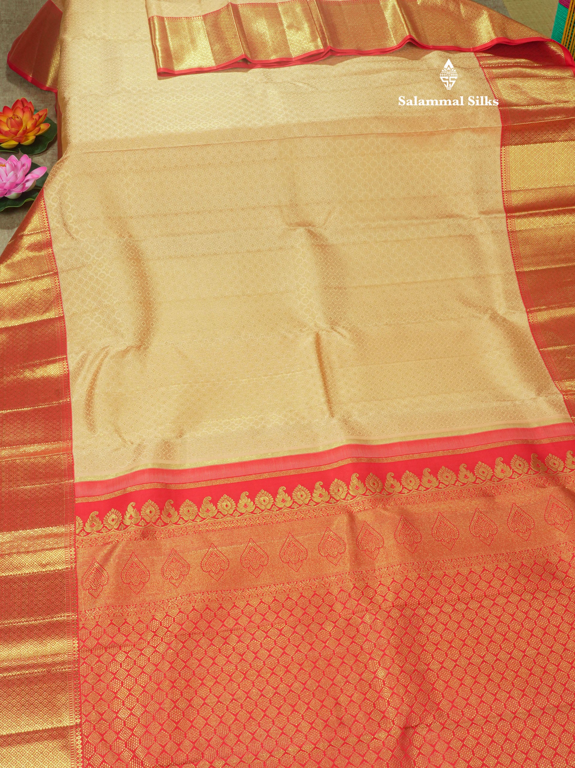 Beige Pure Kanjivaram Silk Saree Pure Zari(3G) with Contrast Chilly Red Border