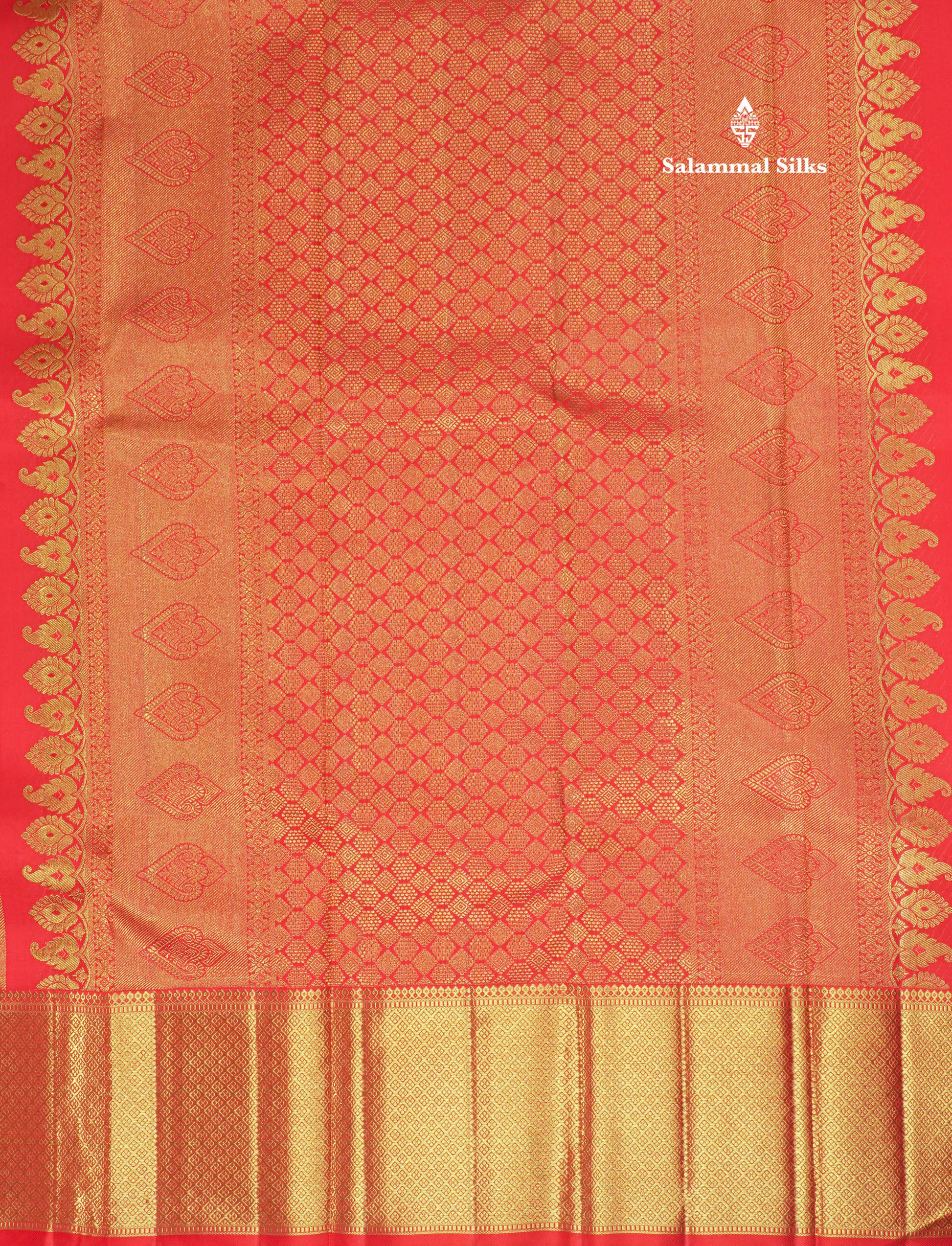 Salammal is known for its handloom sarees. In some sarees, there is cross-weaving between the body and the pallu, which is a sign of pure handloom sarees. This can be seen in Kanchipuram embossed sarees.