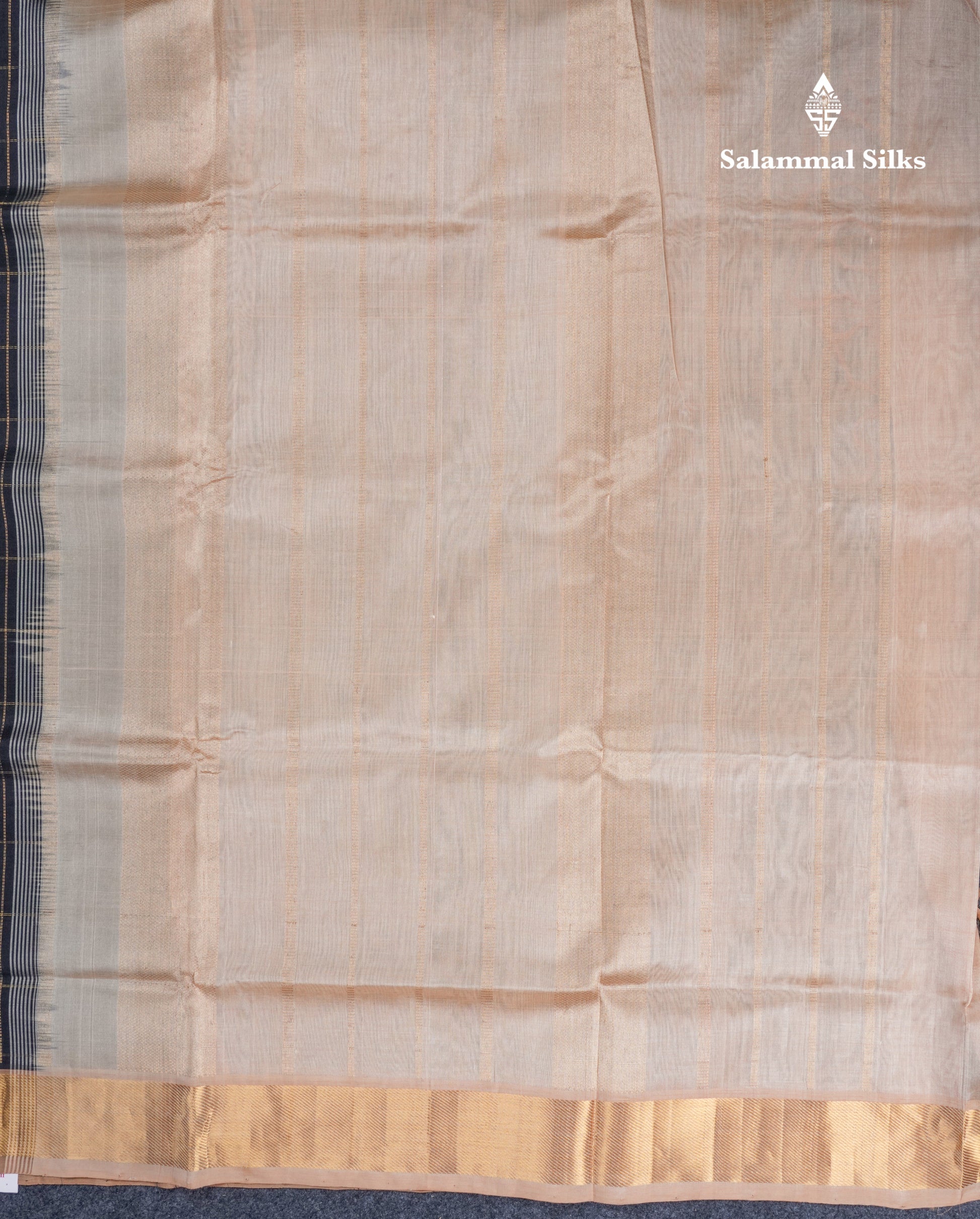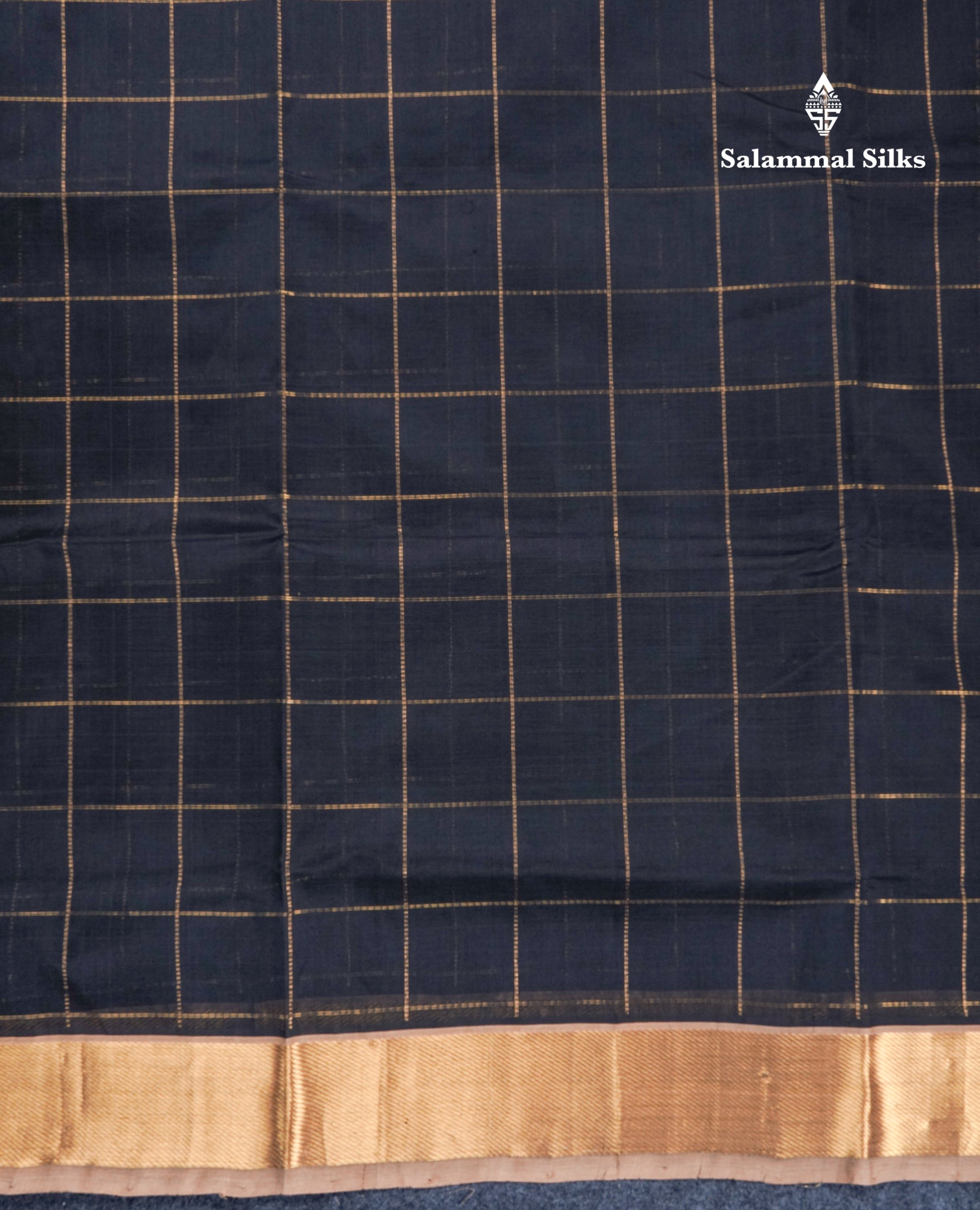 Black Checks Pure Silk Cotton Saree With Contrast Beige Blouse