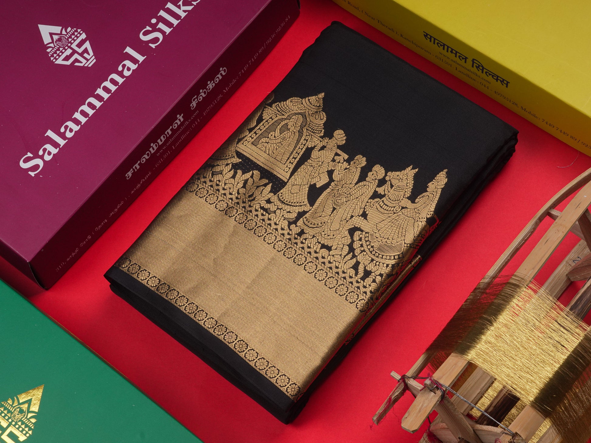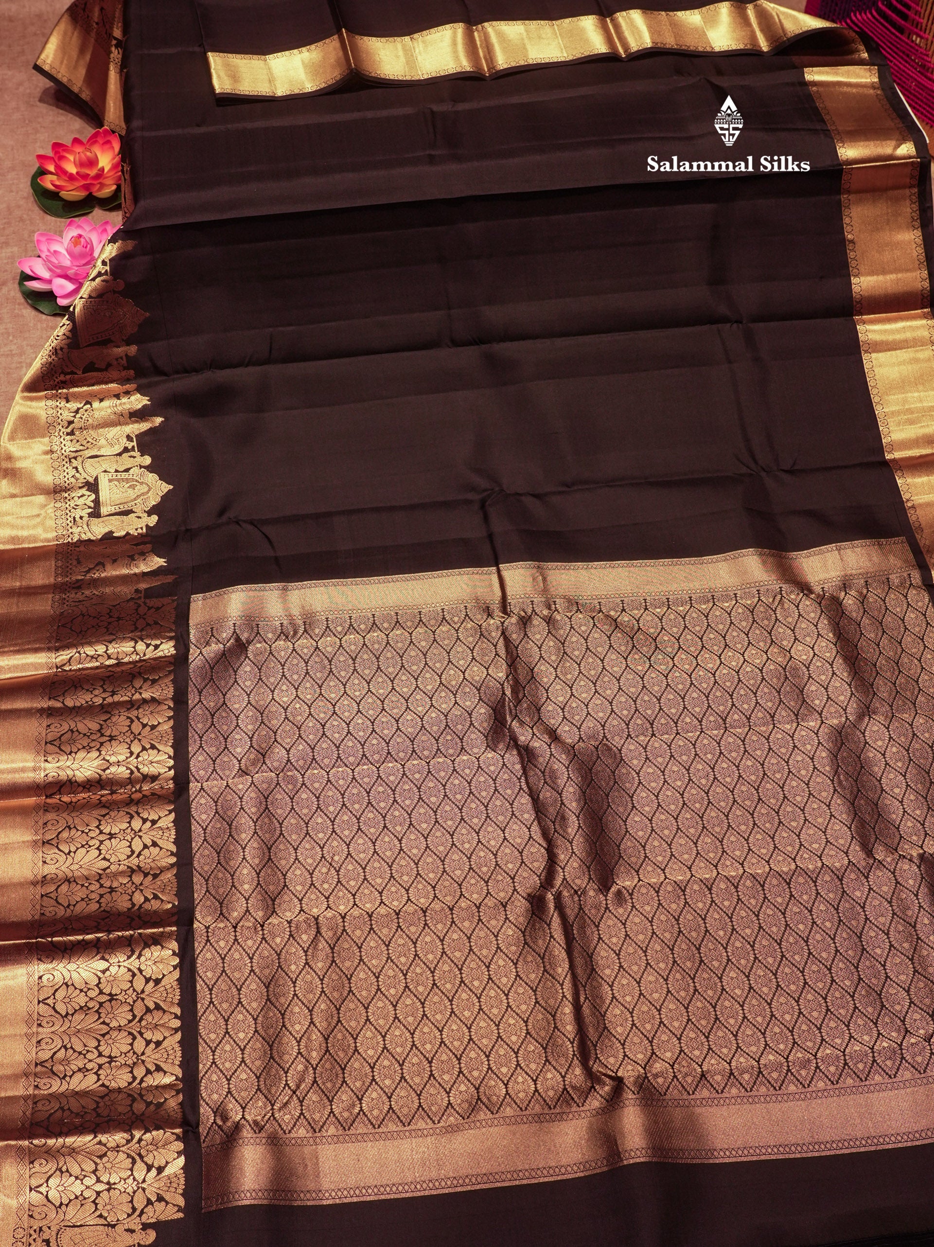 Black Colour Plain Pure Kanjivaram Silk Saree with Pallakku Border
