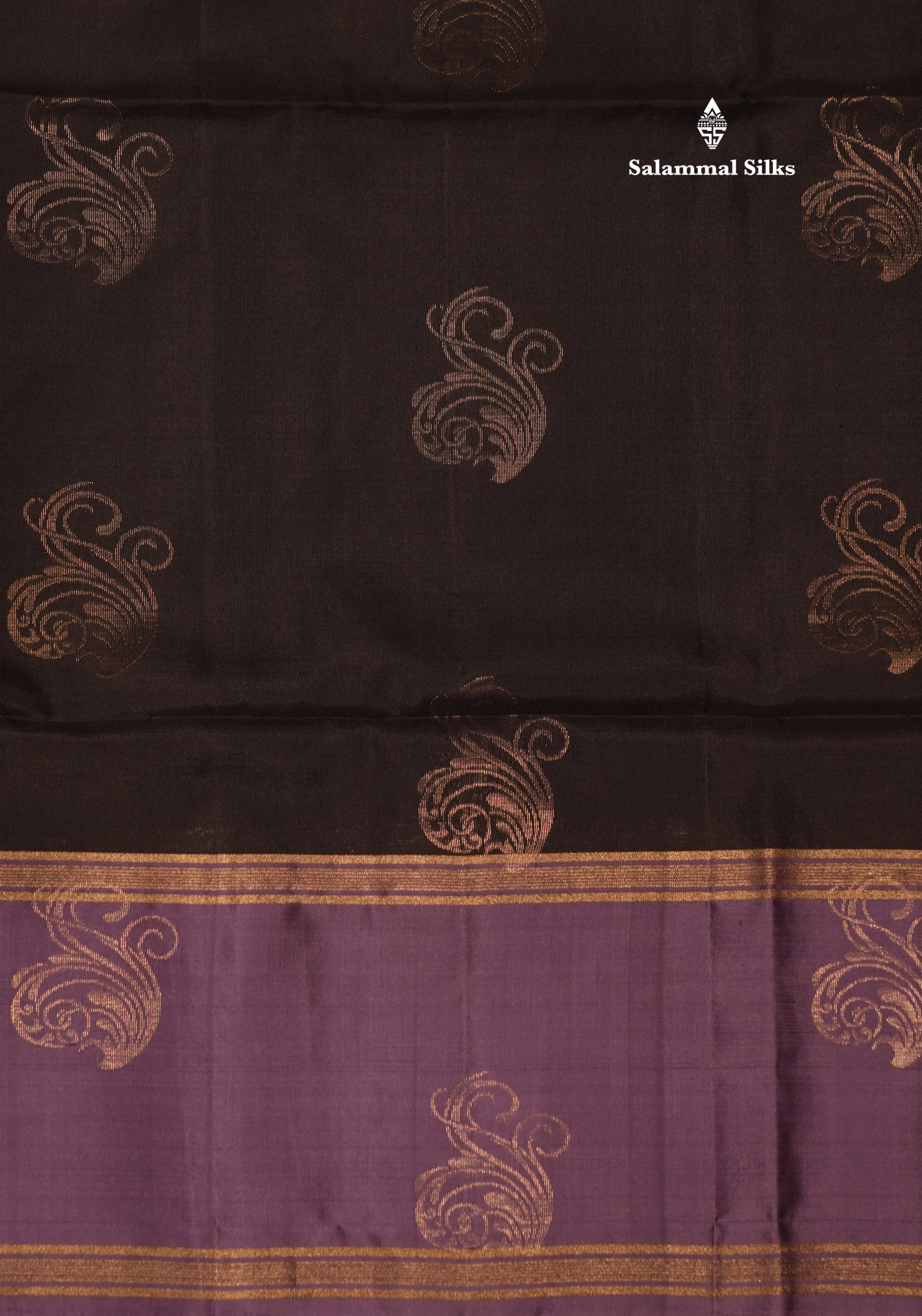 Black Colour Pure Kanjivaram Soft Silk Saree With Light Purple Border