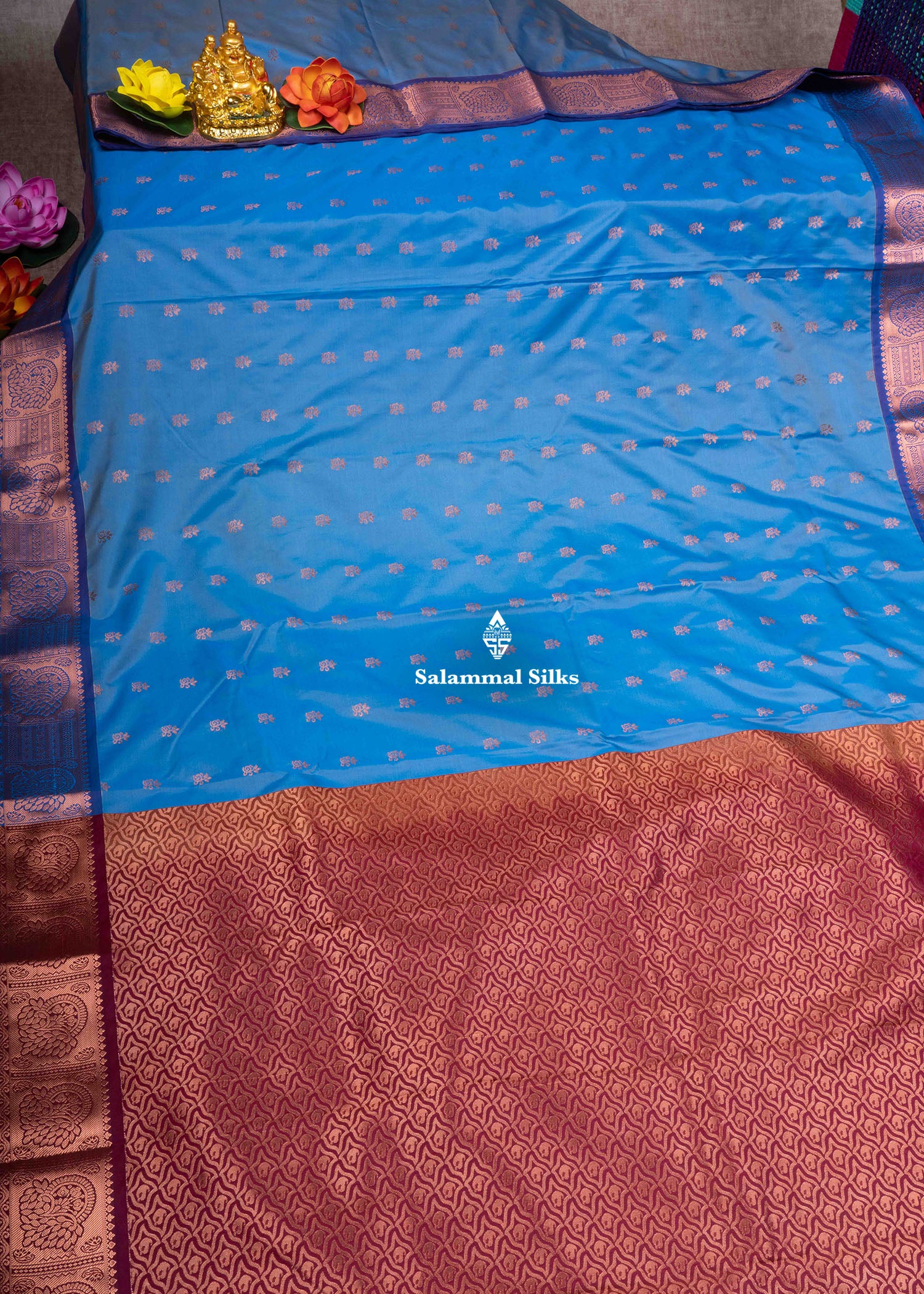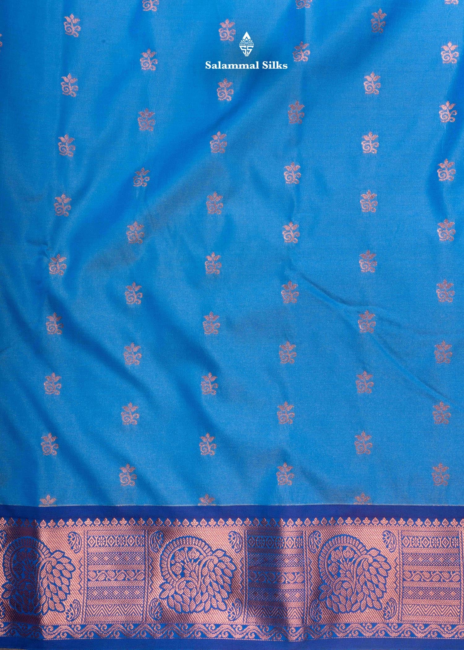 Blue Semi Silk Saree With Copper Zari Medium Border