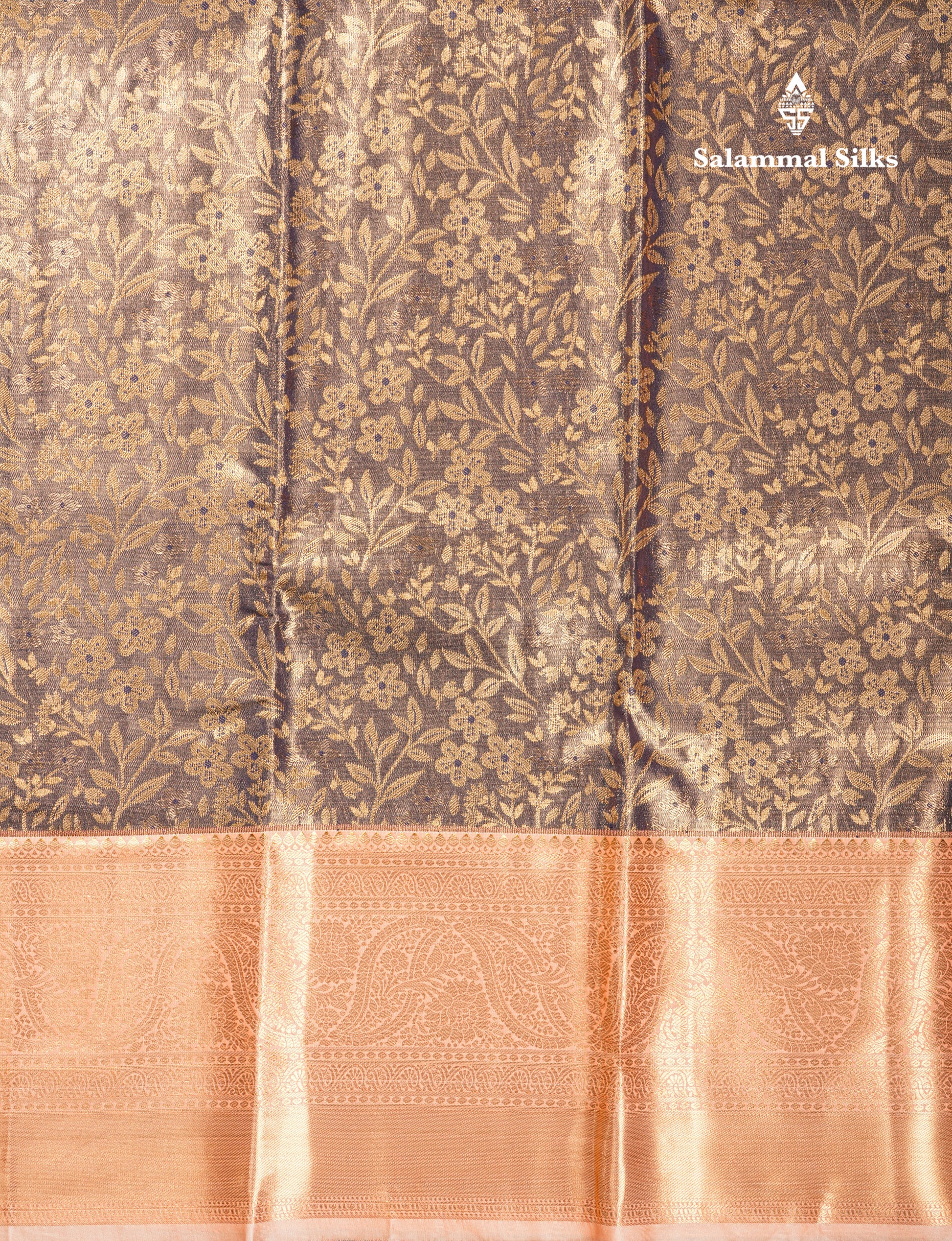 Blue Shade Bridal Tissue Semi Silk Saree With Contrast Peach Border