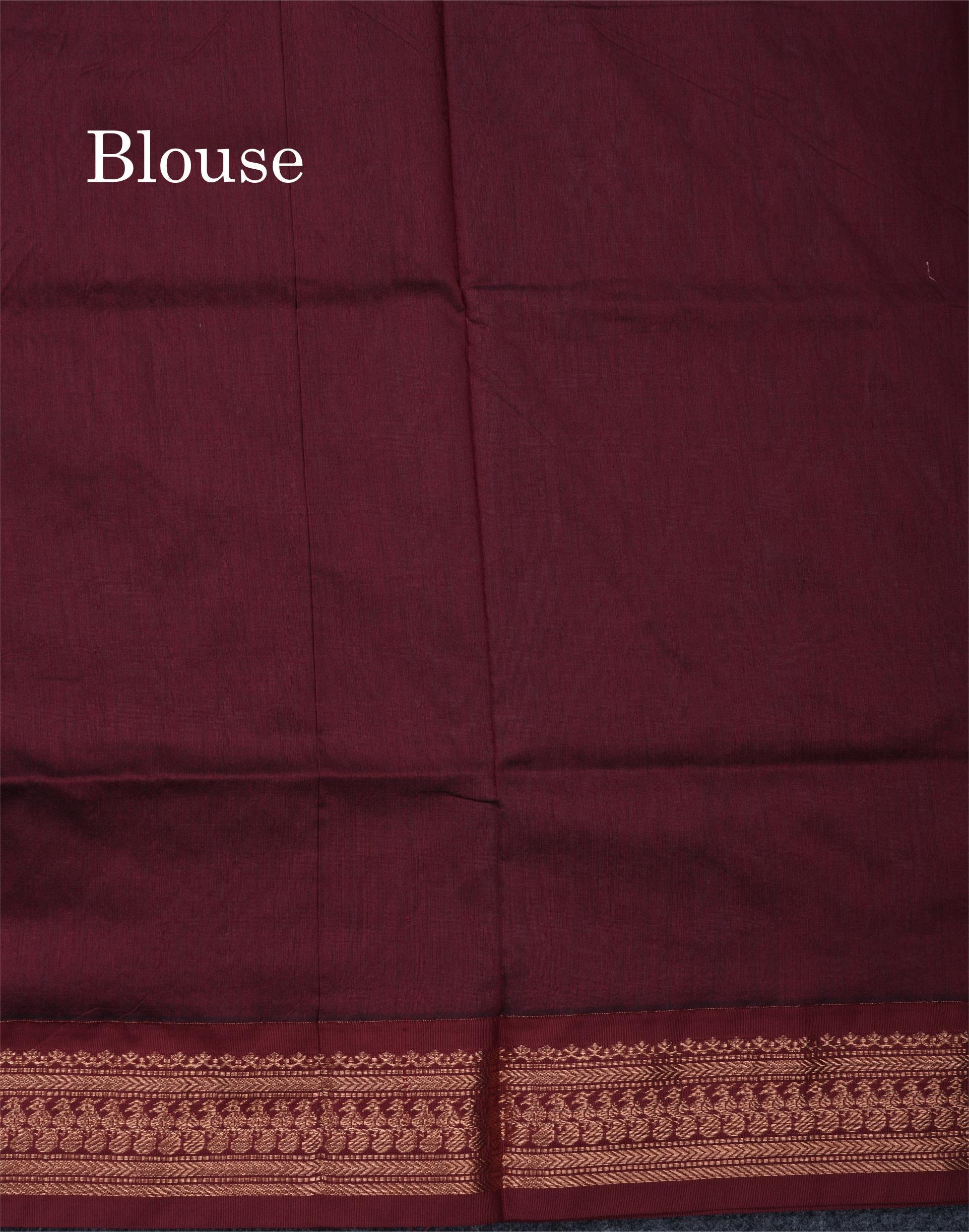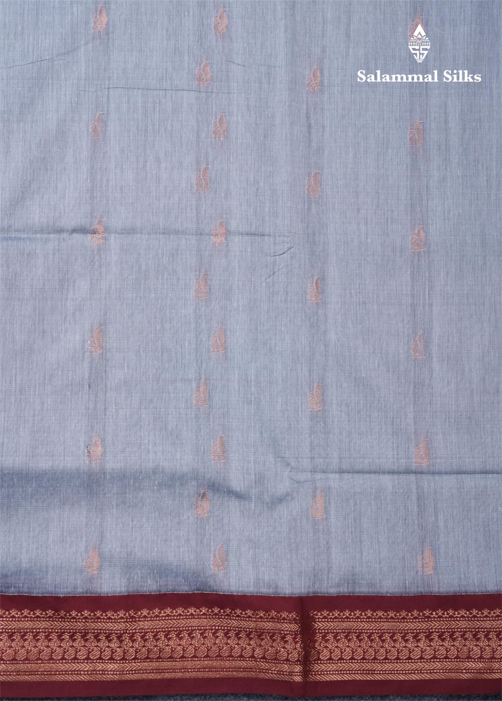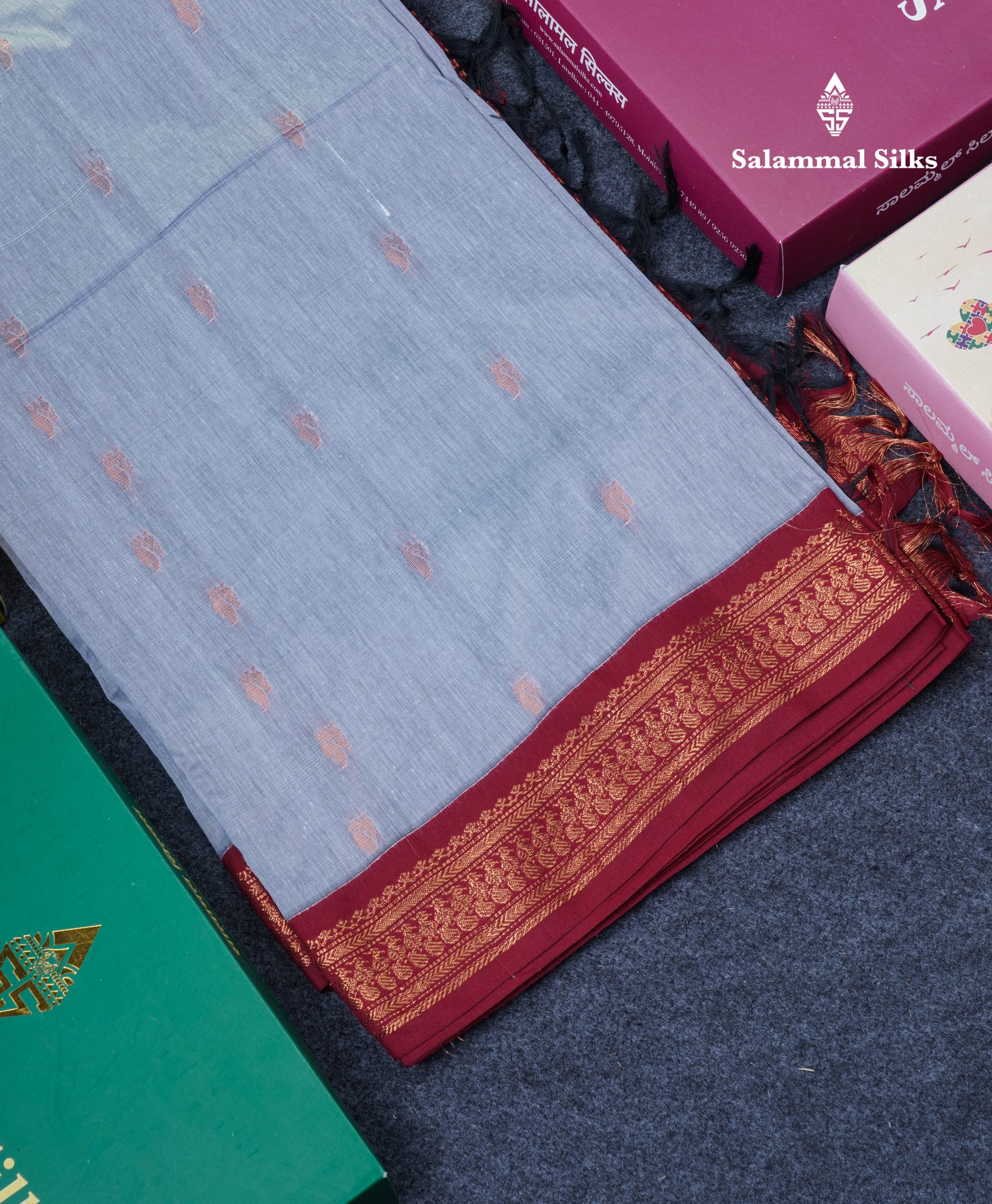 Blueish Grey Kalyani Cotton Saree With Contrast Maroon Border