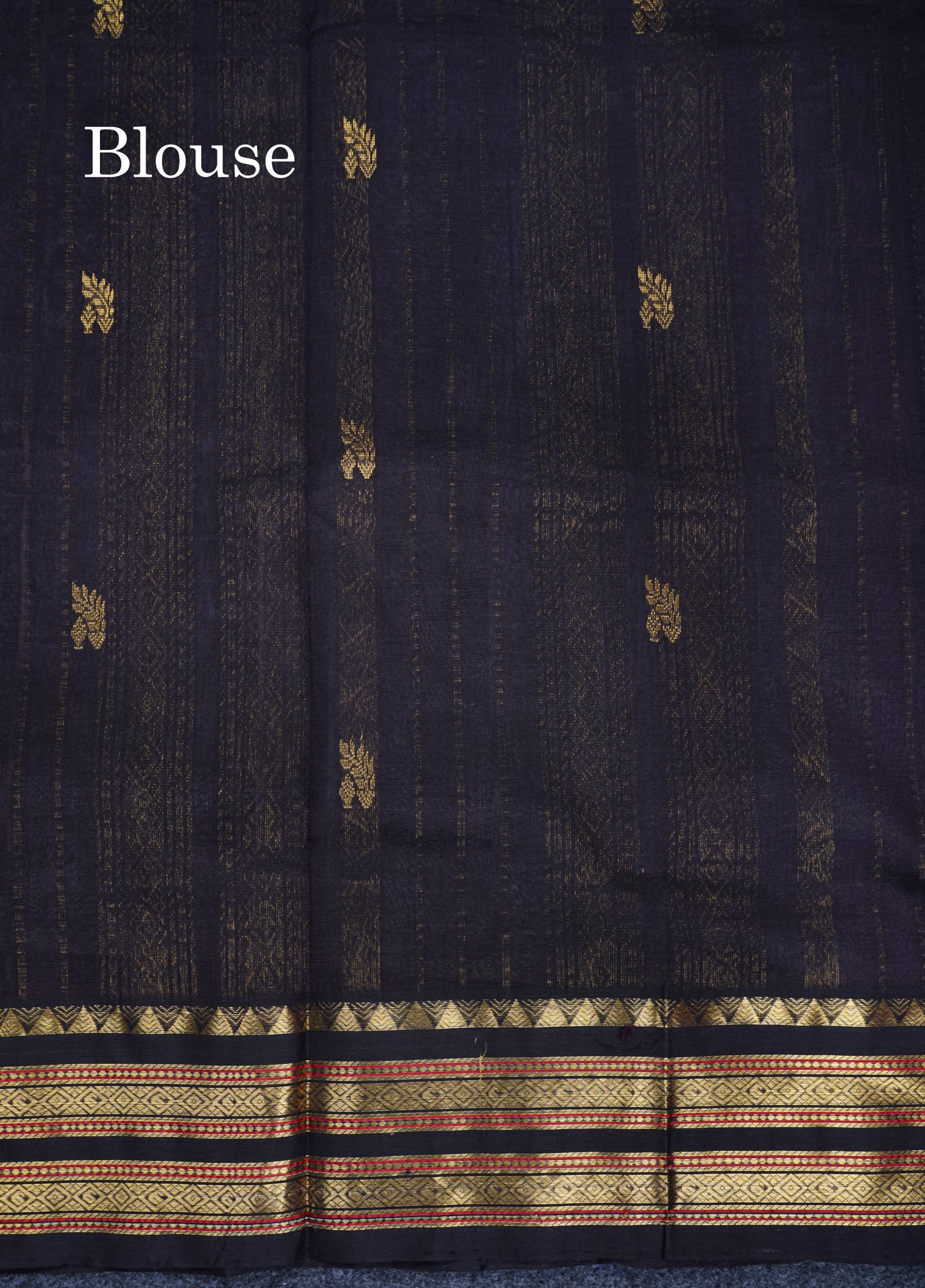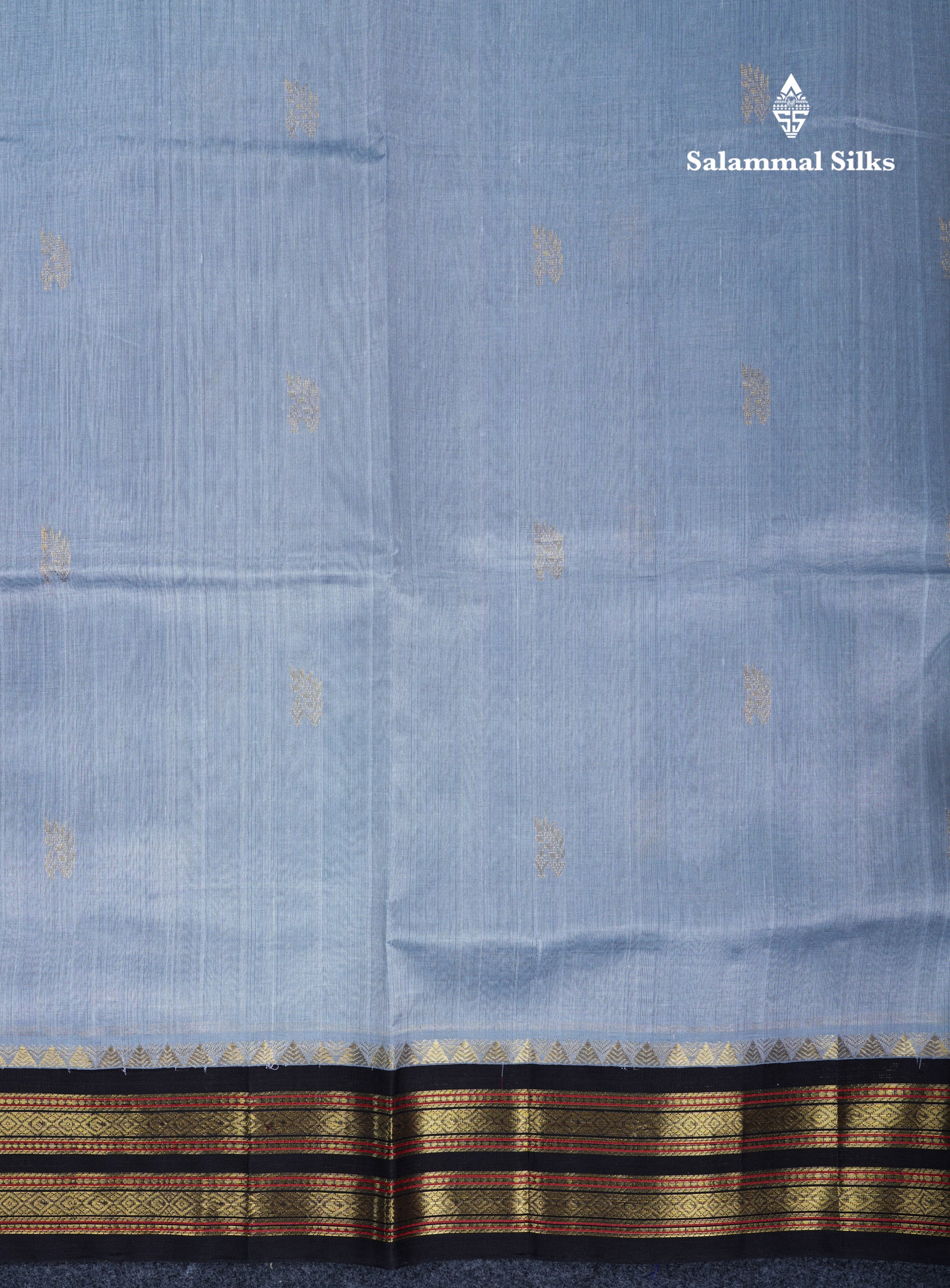 Blueish Grey Pure Silk Cotton Saree With Contrast Black Traditional Border