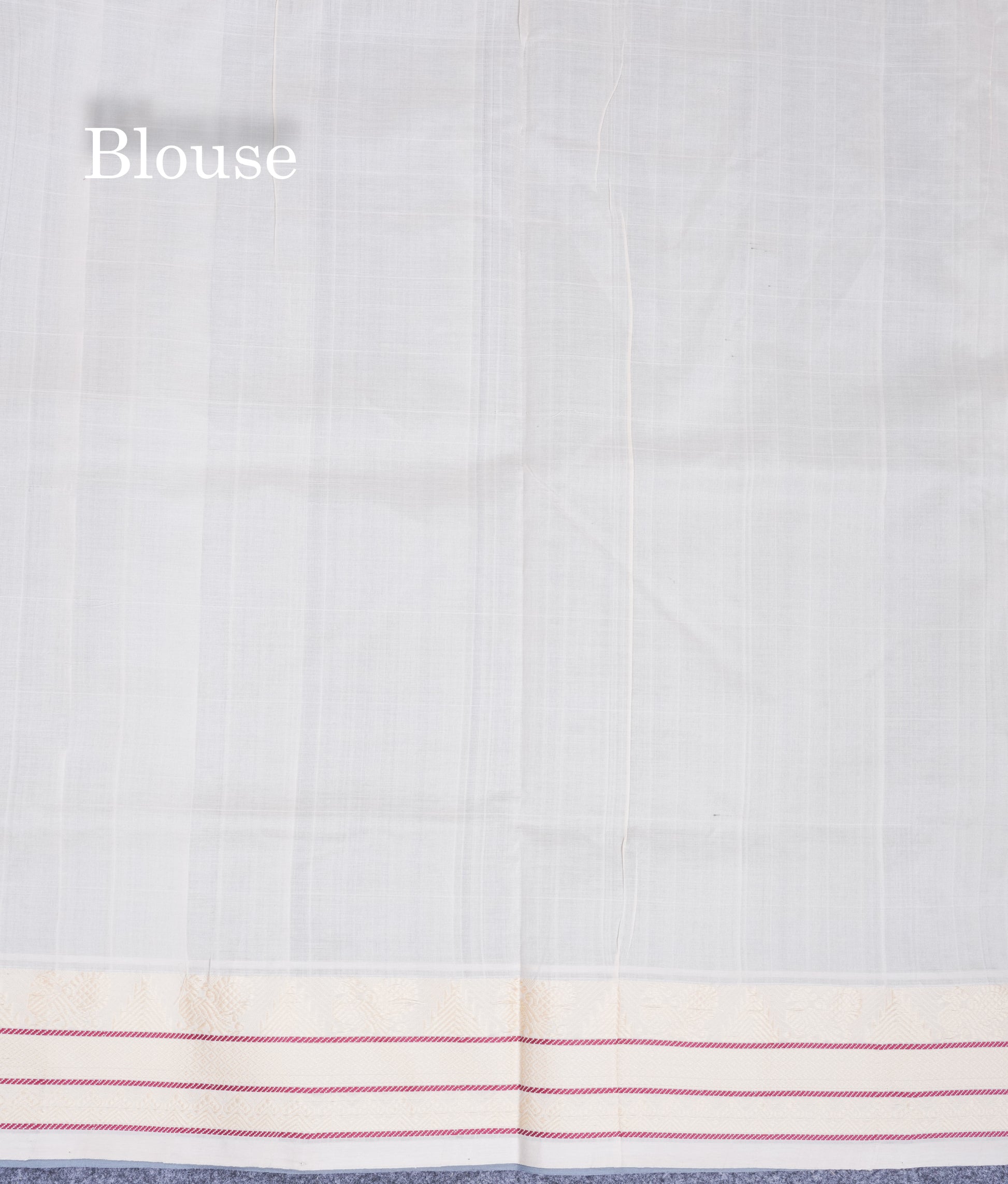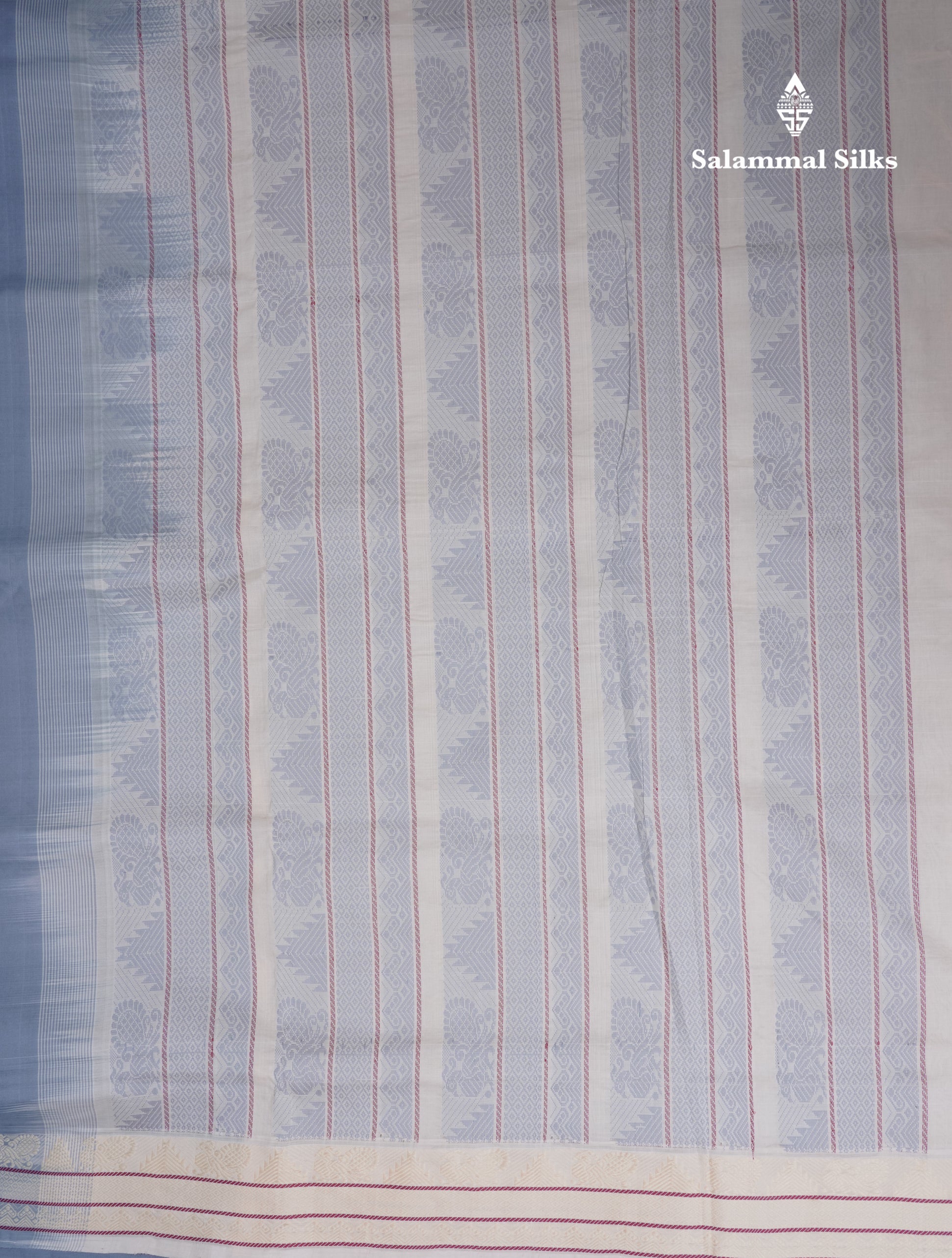 Blueish Grey Thread Work Plain Pure Silk Cotton Saree With Contrast Beige Blouse