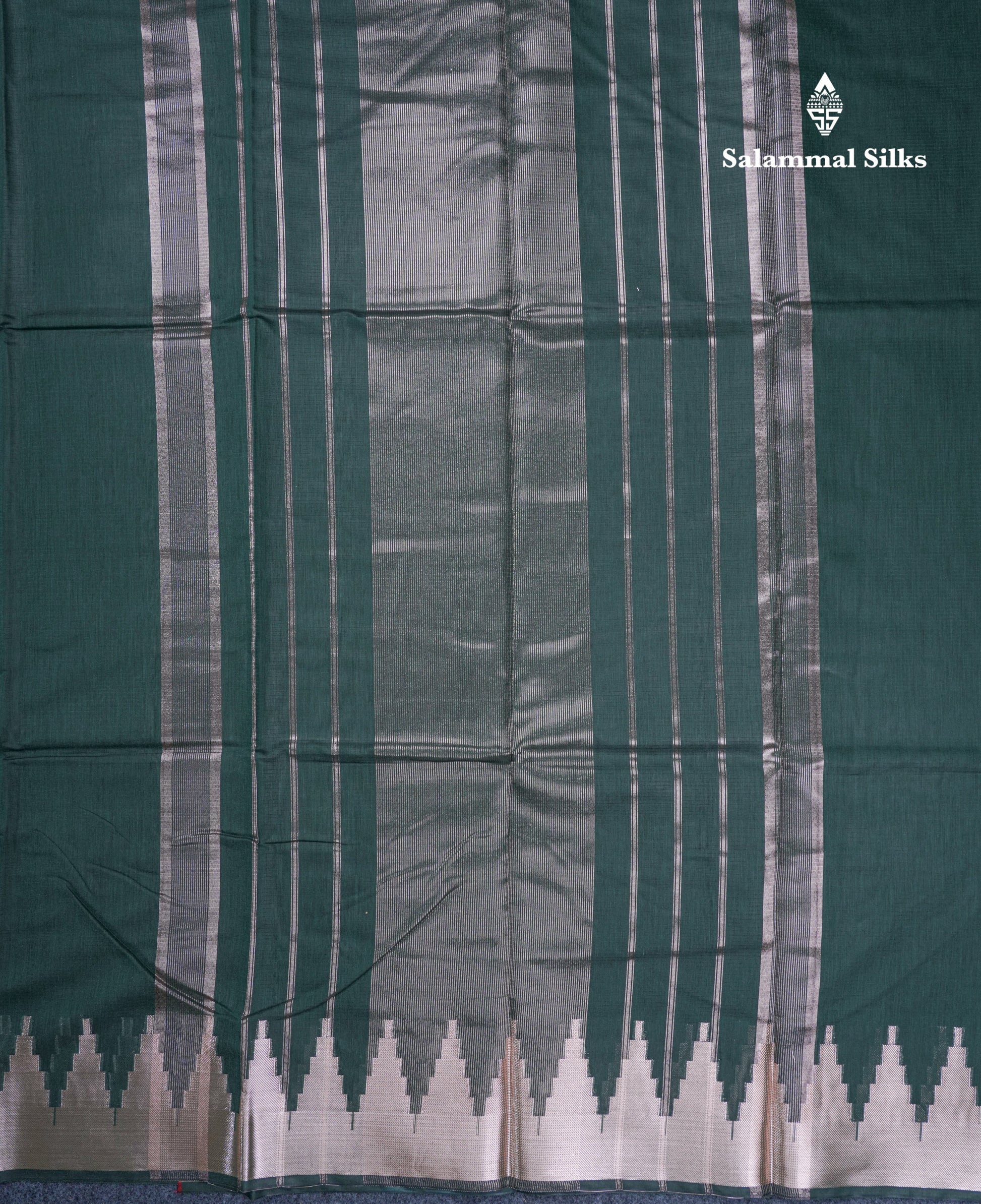 Bottle Green Beautiful Horizontal Lines Cotton Mix Fancy Saree With Silver Zari Temple Border