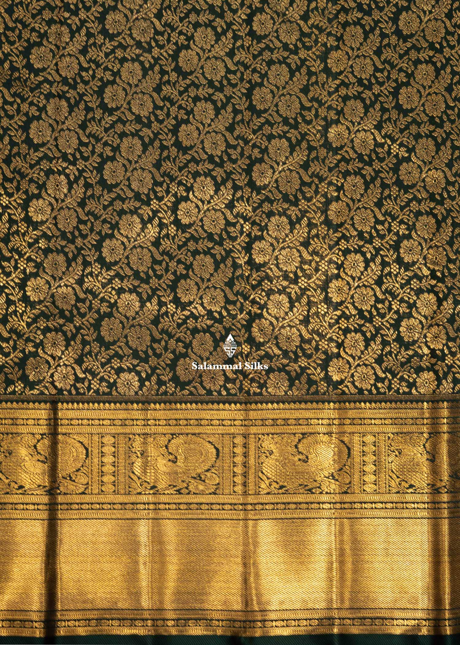 Bottle Green Colour Kanjivaram 2G Zari Pure Silk Saree With Traditional Border