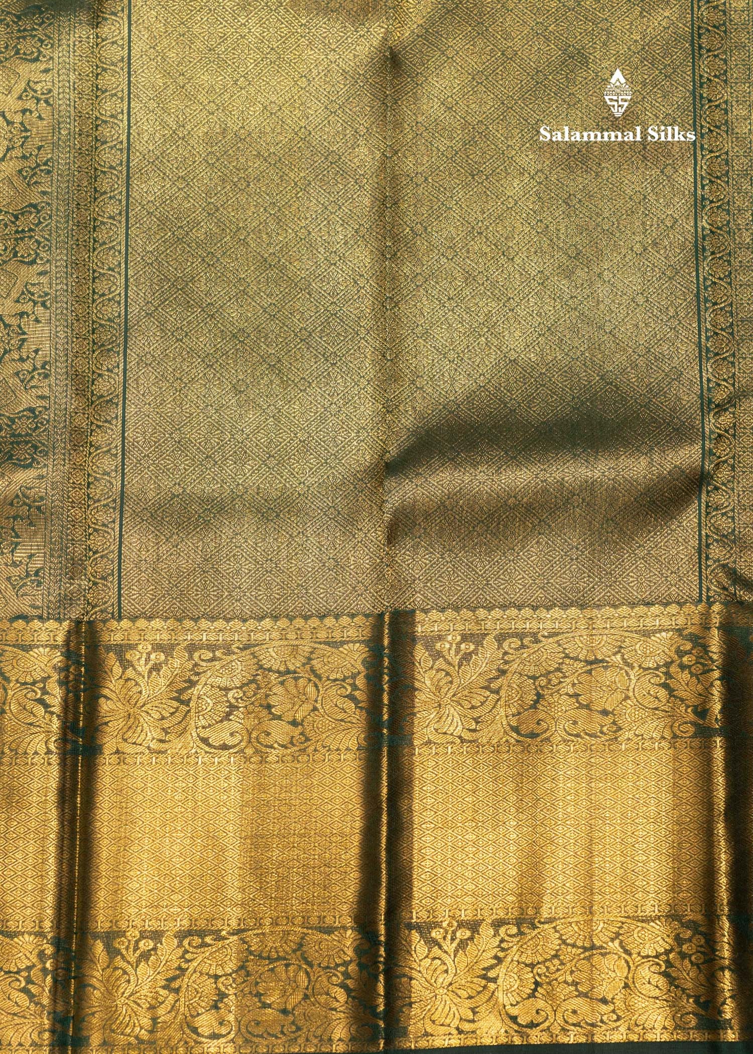 Bottle Green Colour Pure Kanjivaram Silk Saree With Gold Zari Border