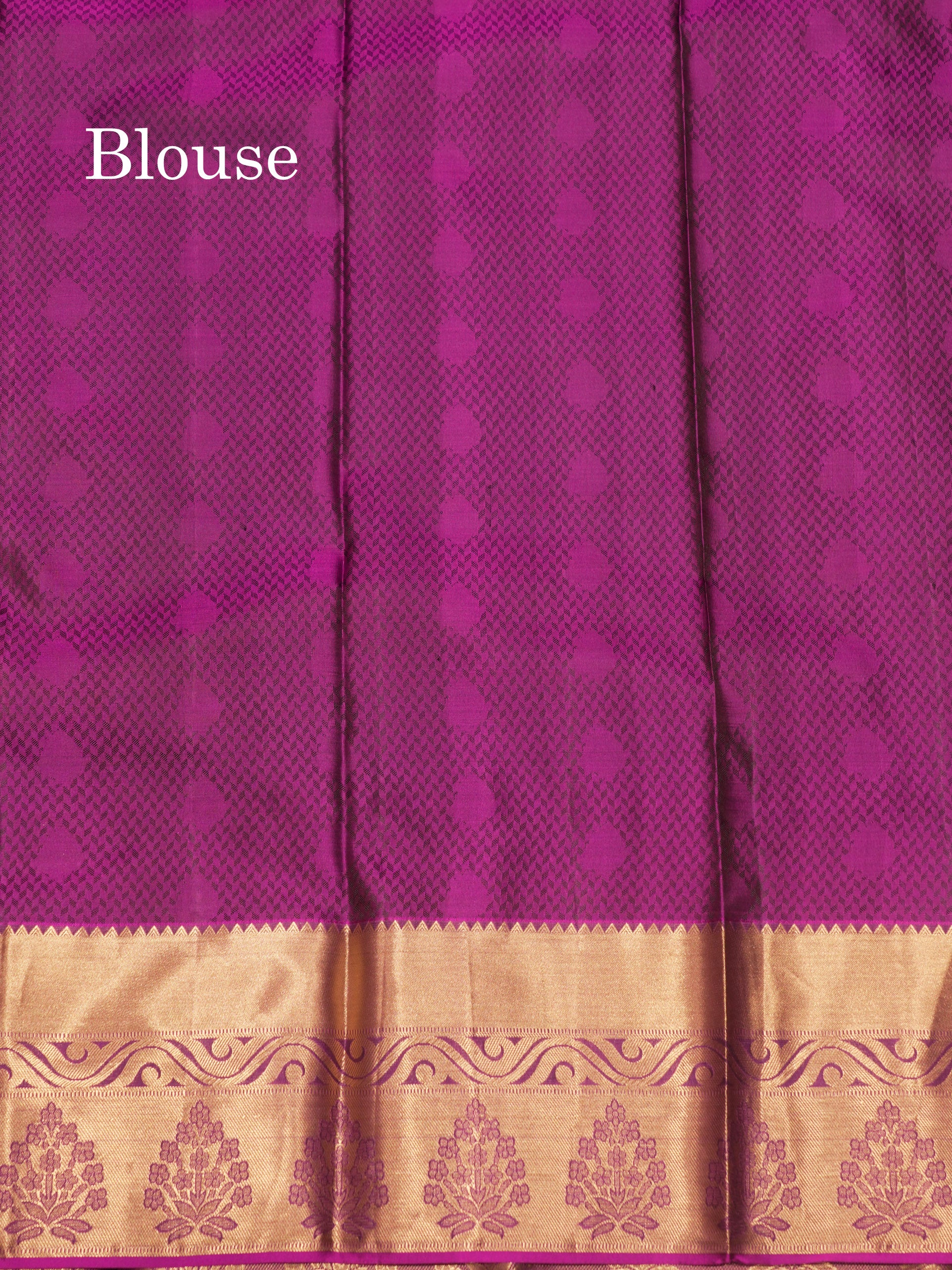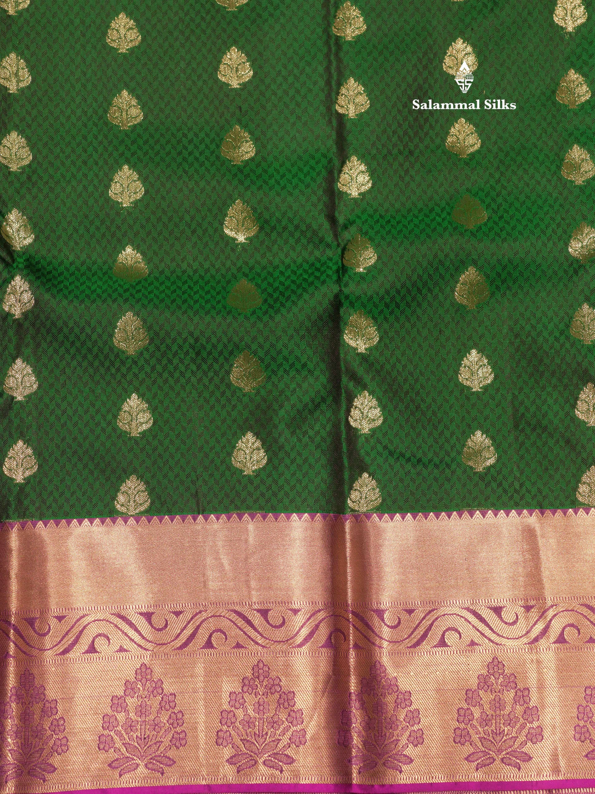 Bottle Green Colour Pure Kanjivaram Silk Saree With Contrast Magenta Border