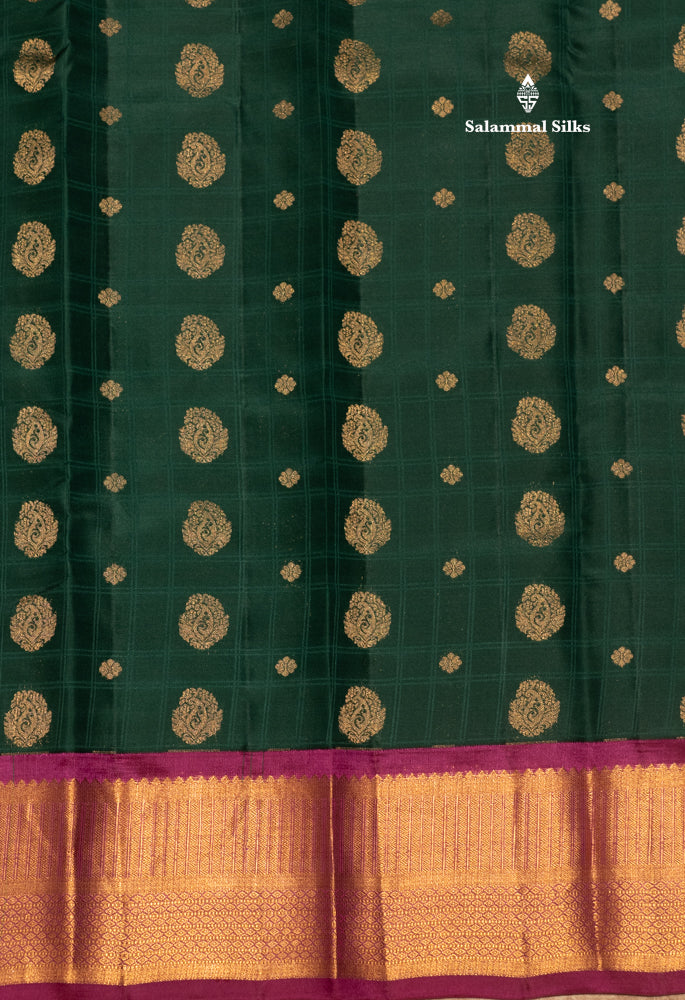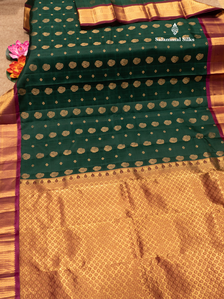 Bottle Green Colour Pure Kanjivaram Silk Saree with Magenta Border