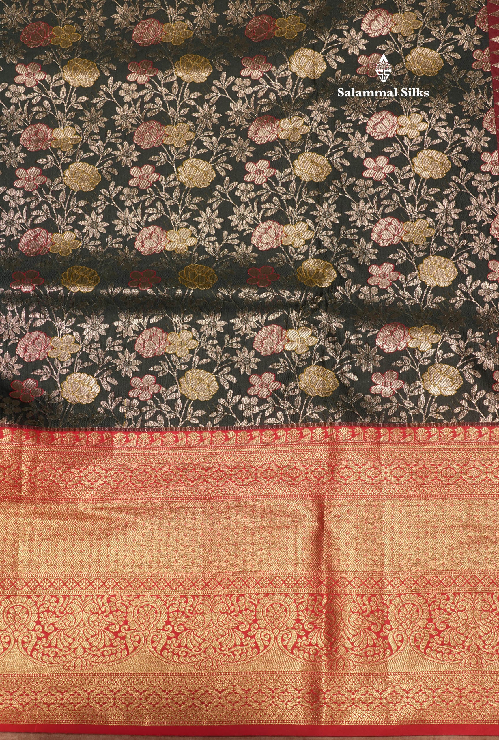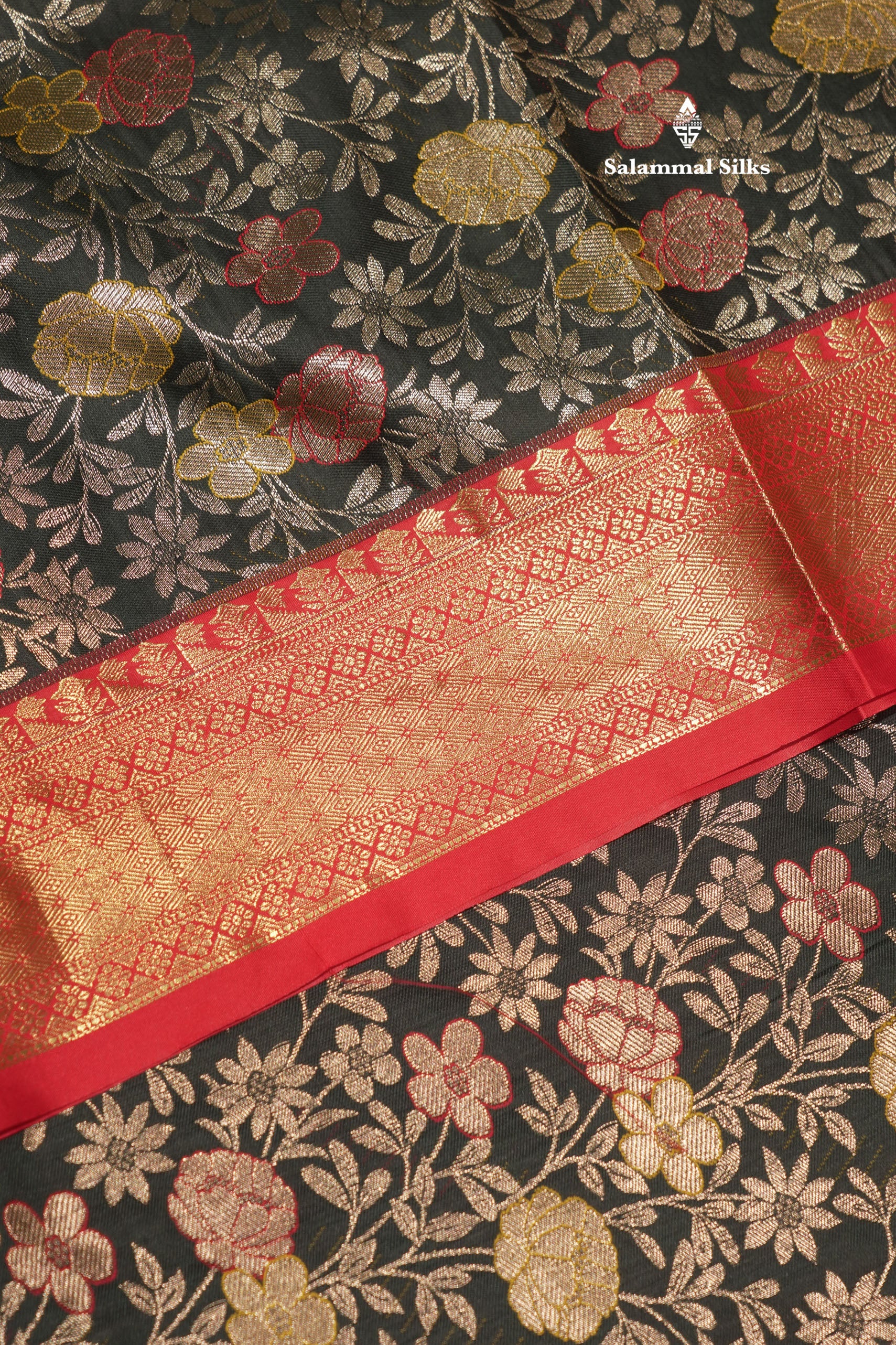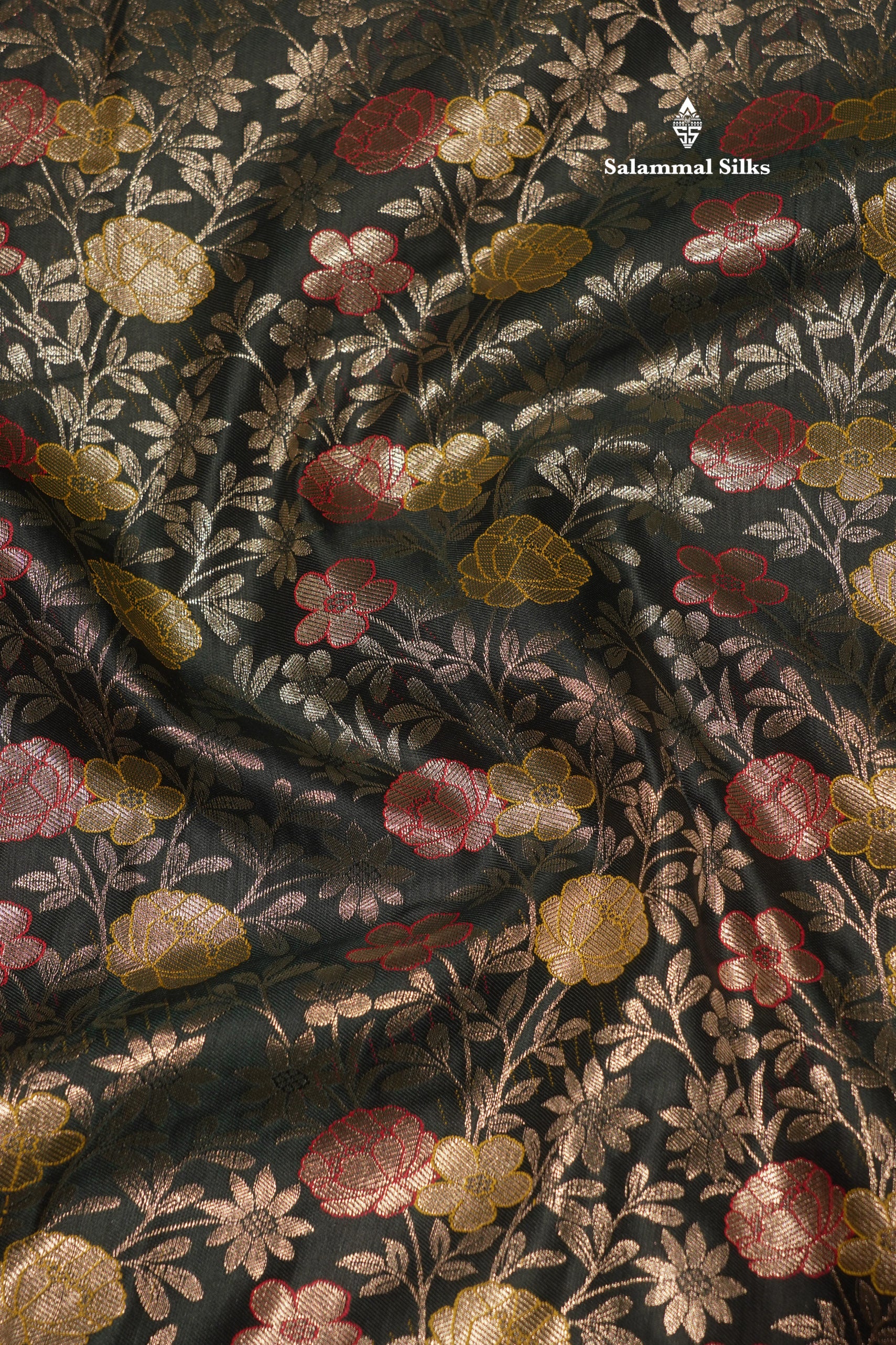 Salammal is known for its handloom sarees. In some sarees, there is cross-weaving between the body and the pallu, which is a sign of pure handloom sarees. This can be seen in Kanchipuram embossed sarees.