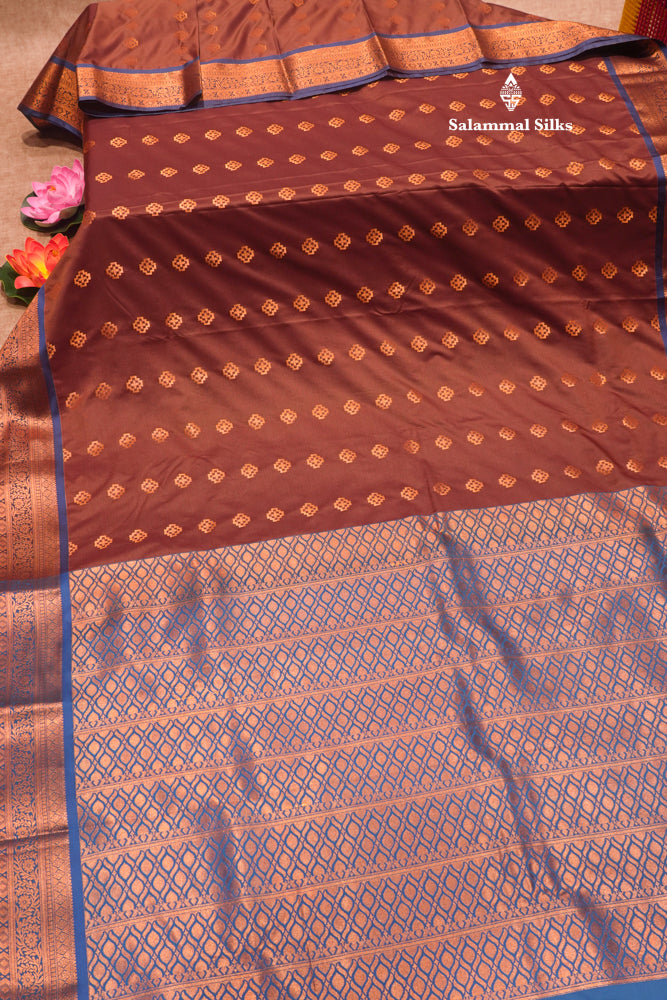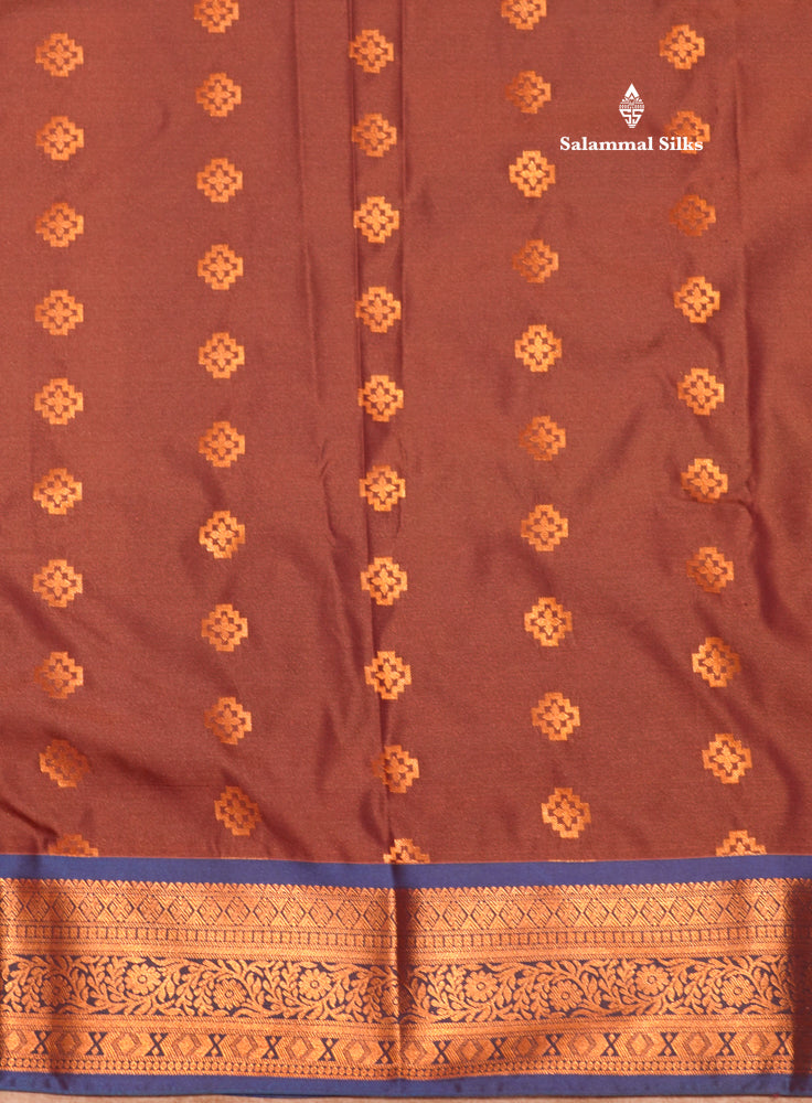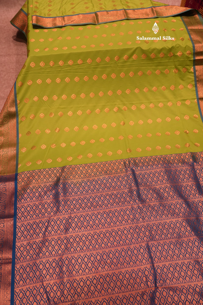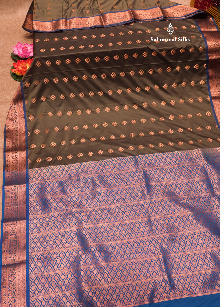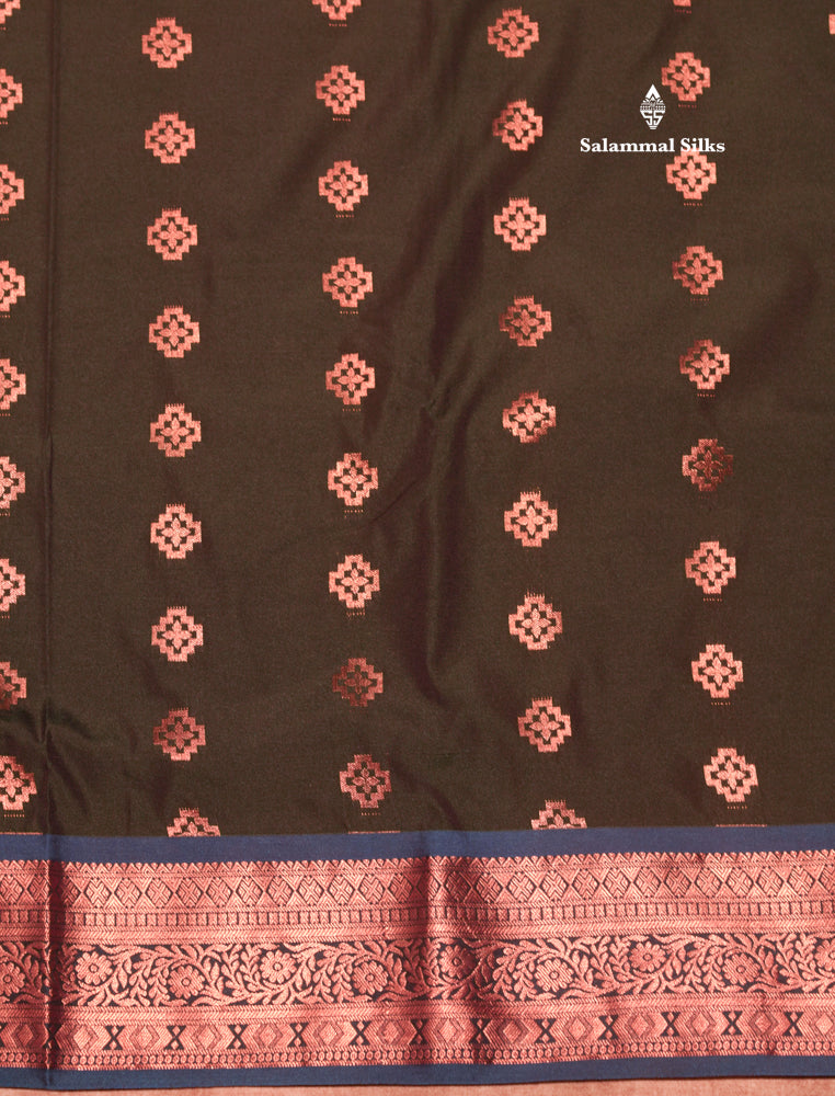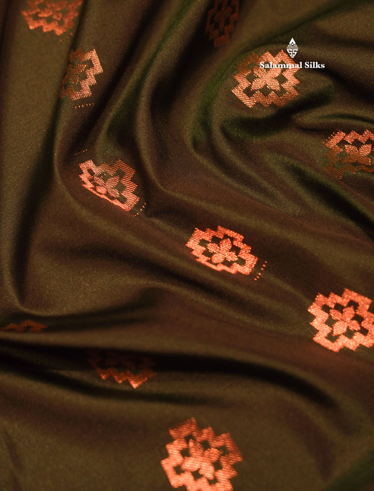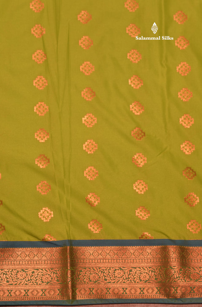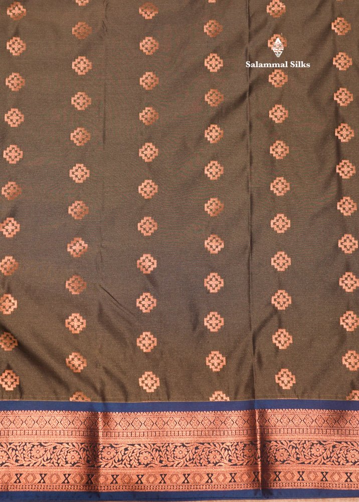 Bottle Green Colour Semi Silk Saree With Copper Zari Border