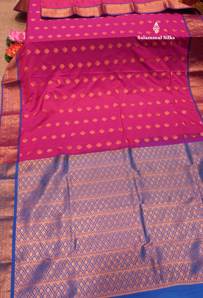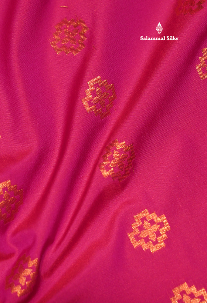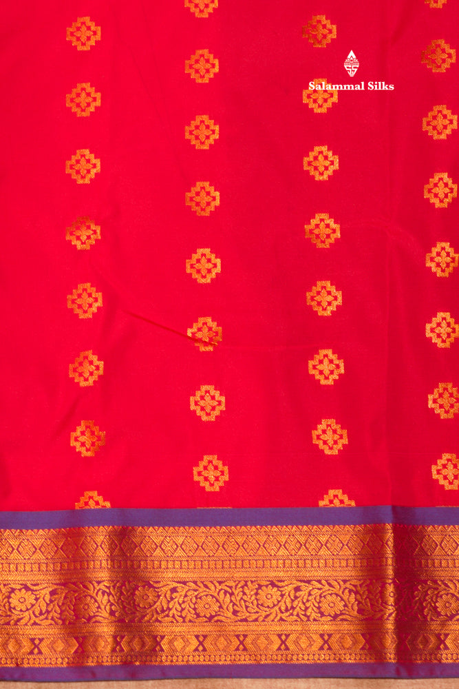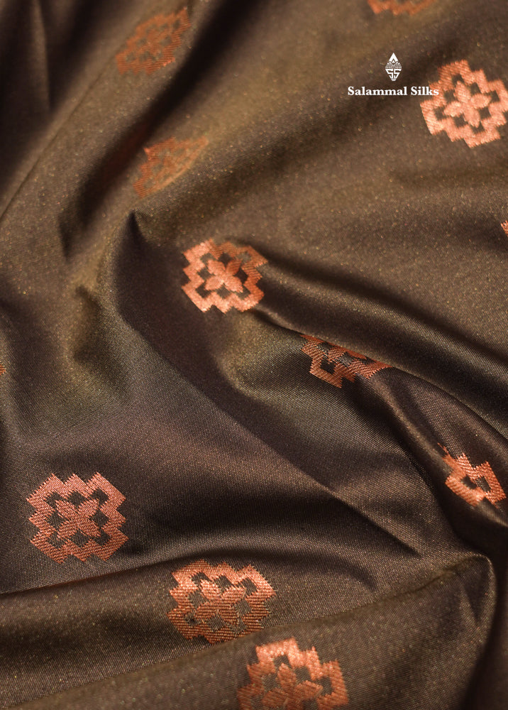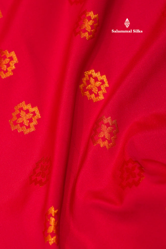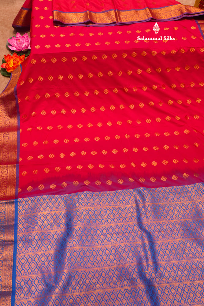 Salammal is known for its handloom sarees. In some sarees, there is cross-weaving between the body and the pallu, which is a sign of pure handloom sarees. This can be seen in Kanchipuram embossed sarees.