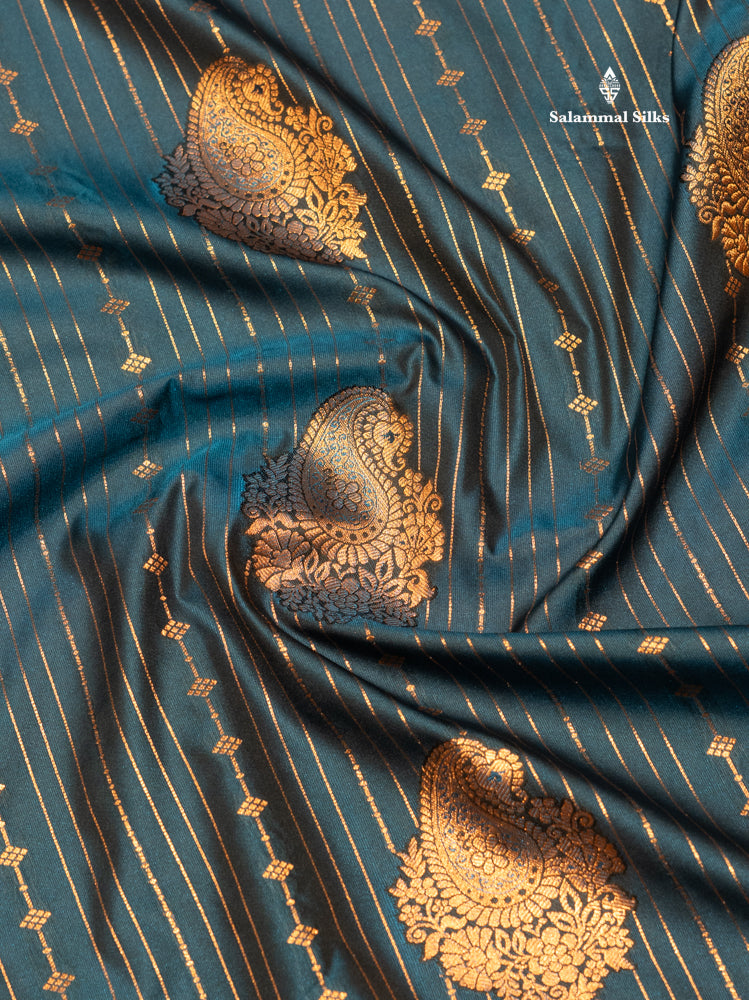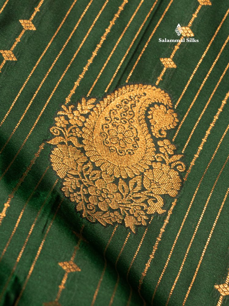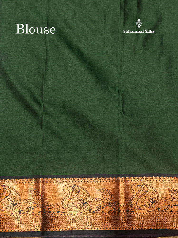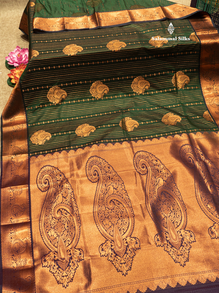 Bottle Green Colour Semi Silk Saree With Navy Blue Copper Zari Border