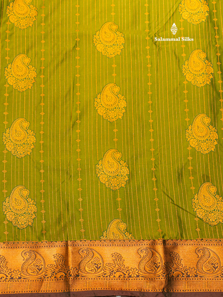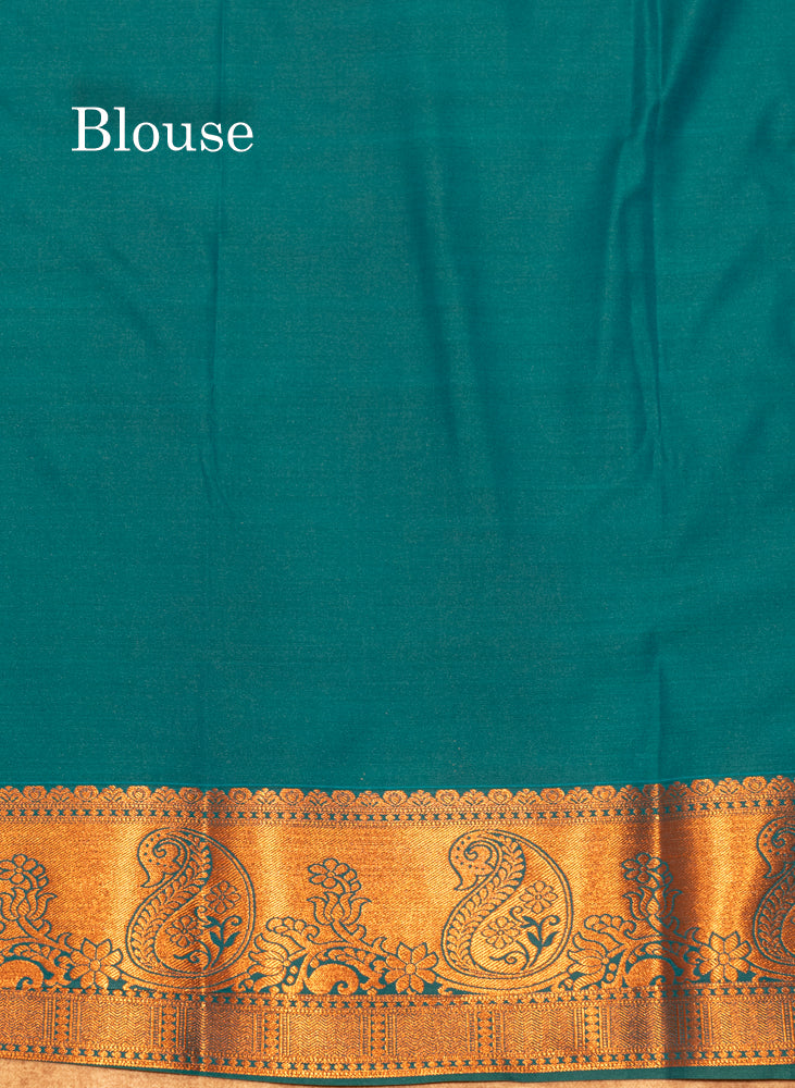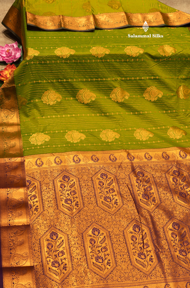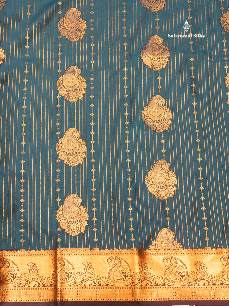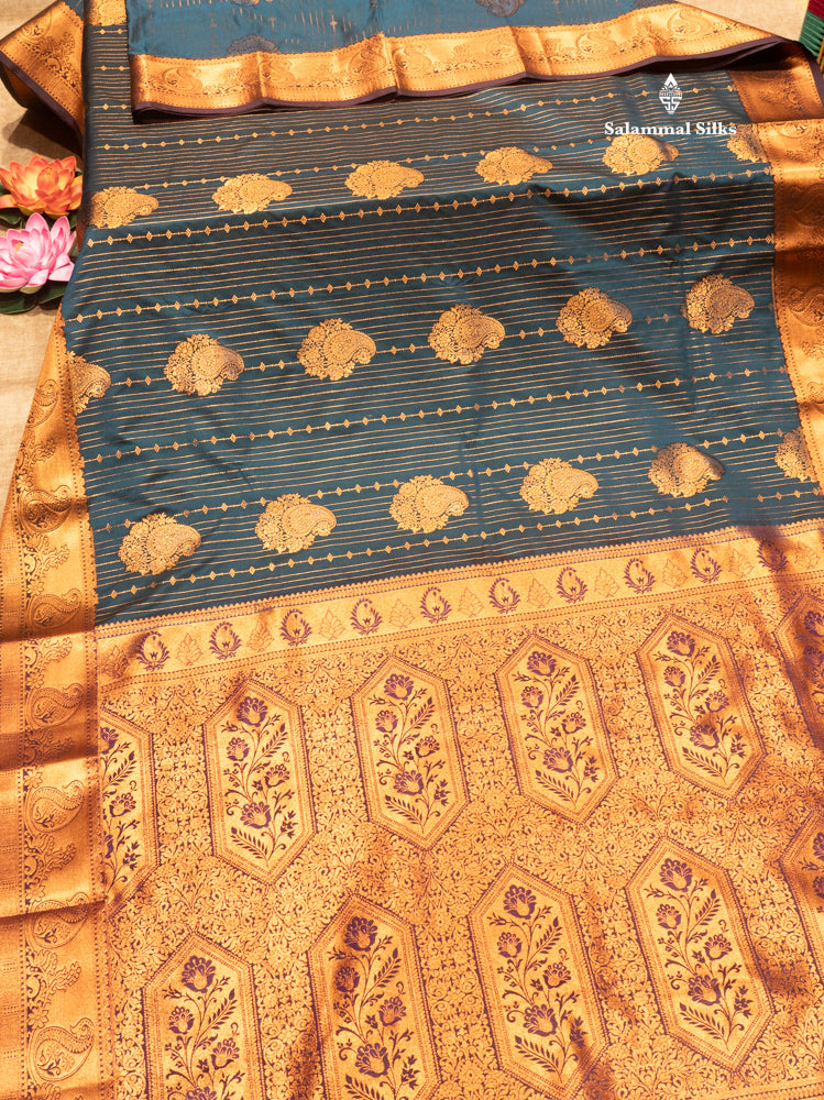 Bottle Green Colour Semi Silk Saree With Navy Blue Copper Zari Border