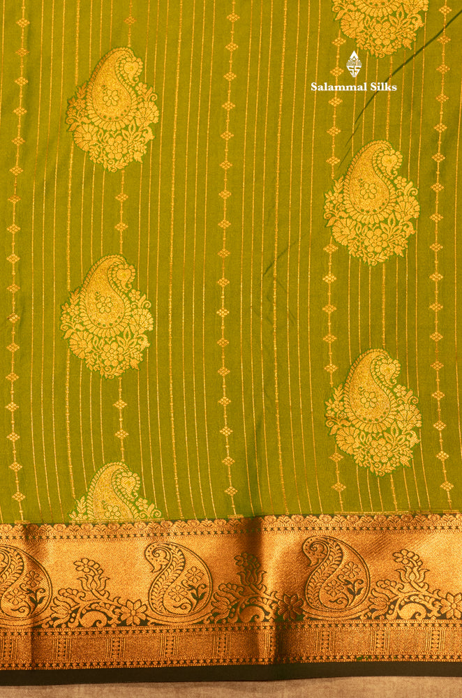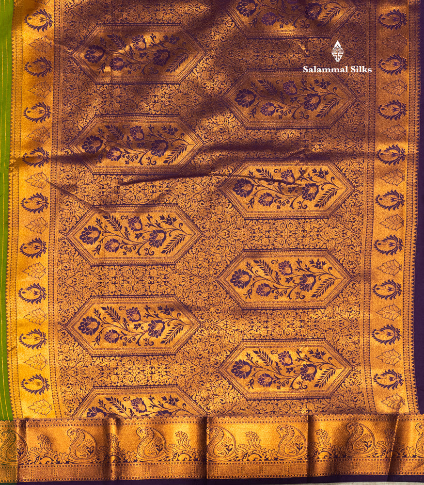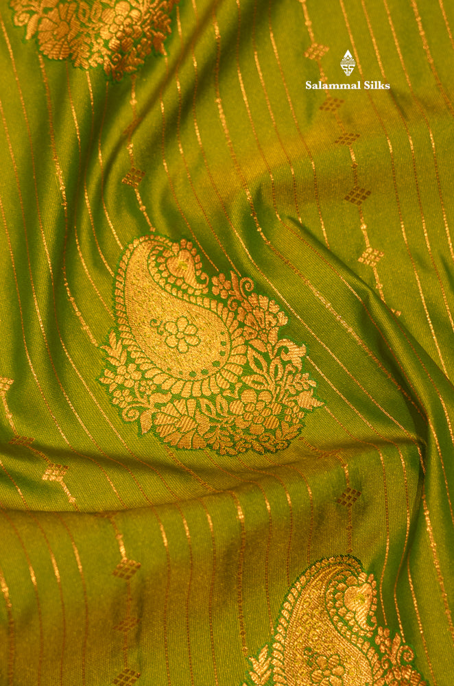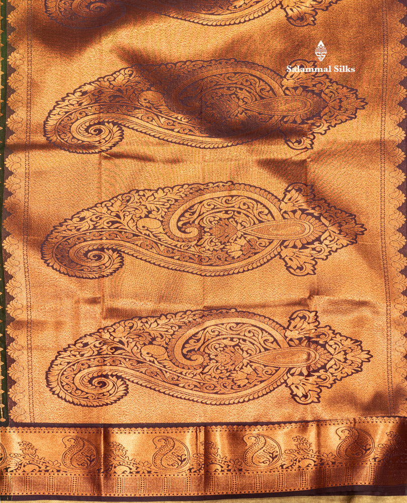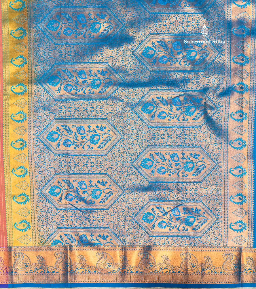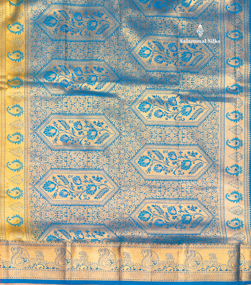 Salammal is known for its handloom sarees. In some sarees, there is cross-weaving between the body and the pallu, which is a sign of pure handloom sarees. This can be seen in Kanchipuram embossed sarees.