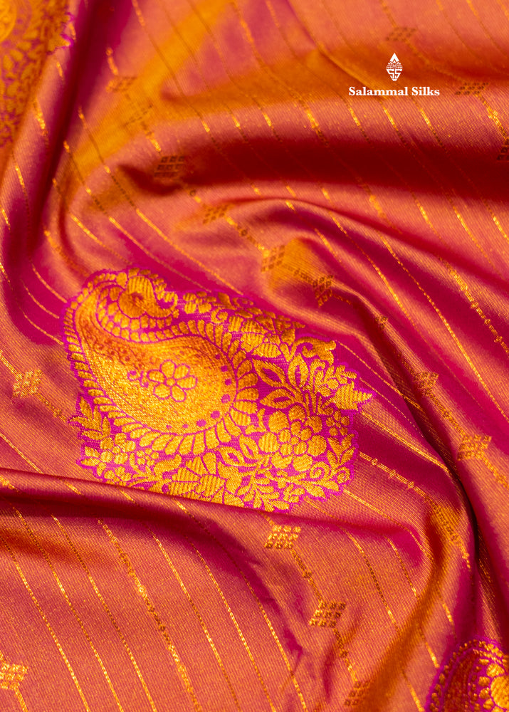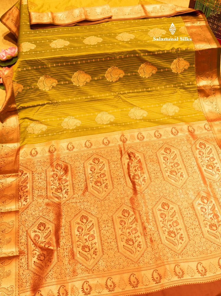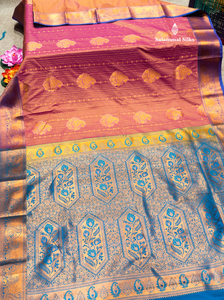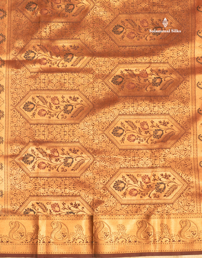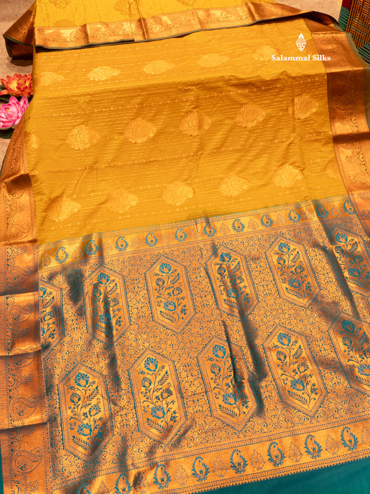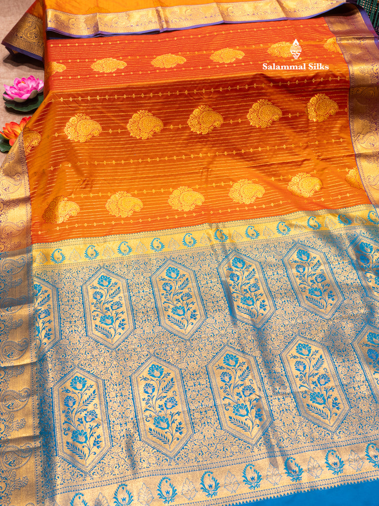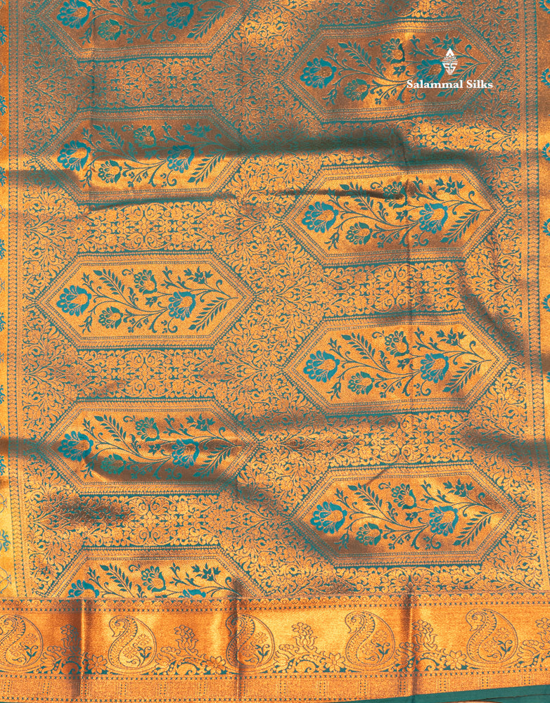 Salammal is known for its handloom sarees. In some sarees, there is cross-weaving between the body and the pallu, which is a sign of pure handloom sarees. This can be seen in Kanchipuram embossed sarees.