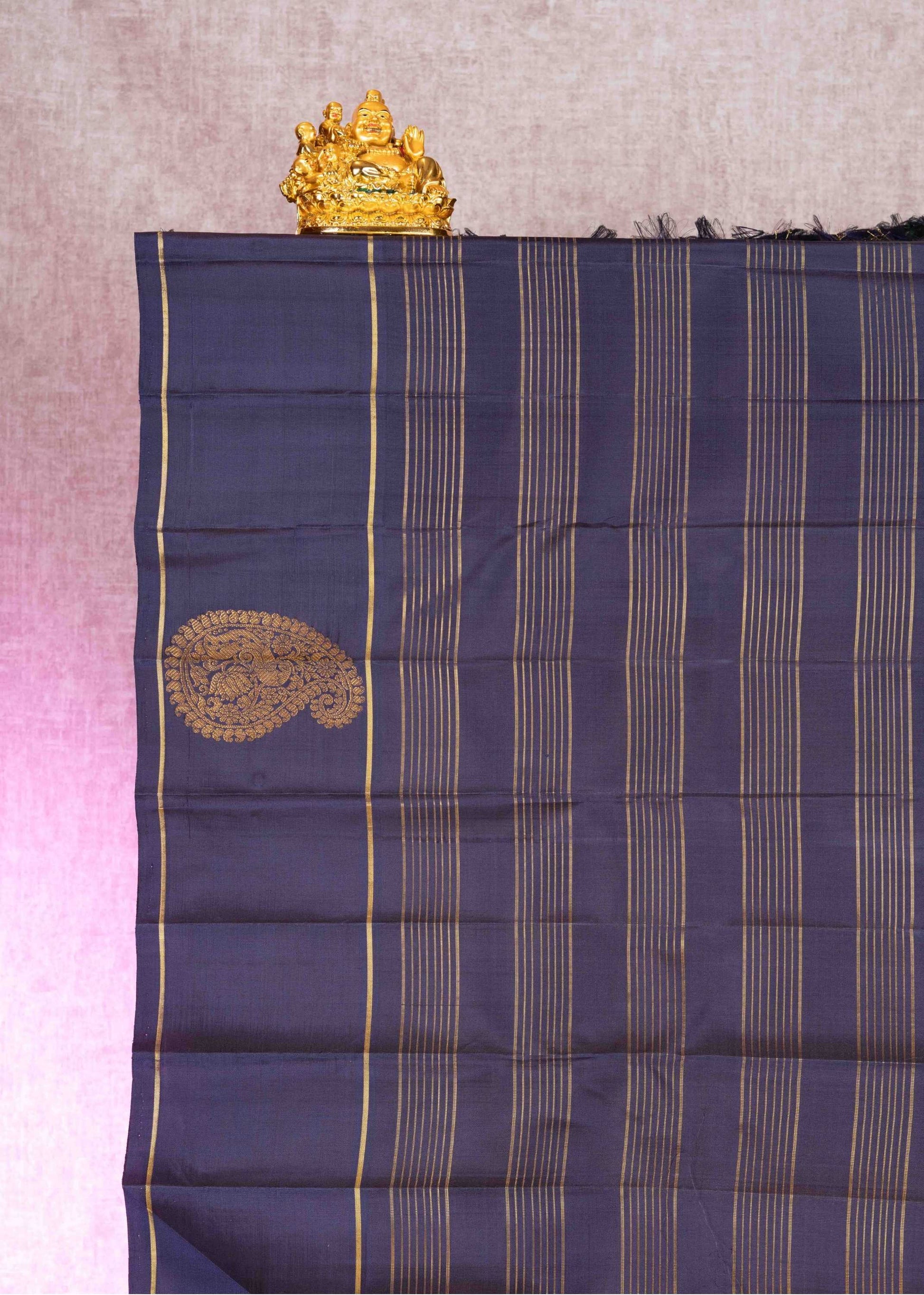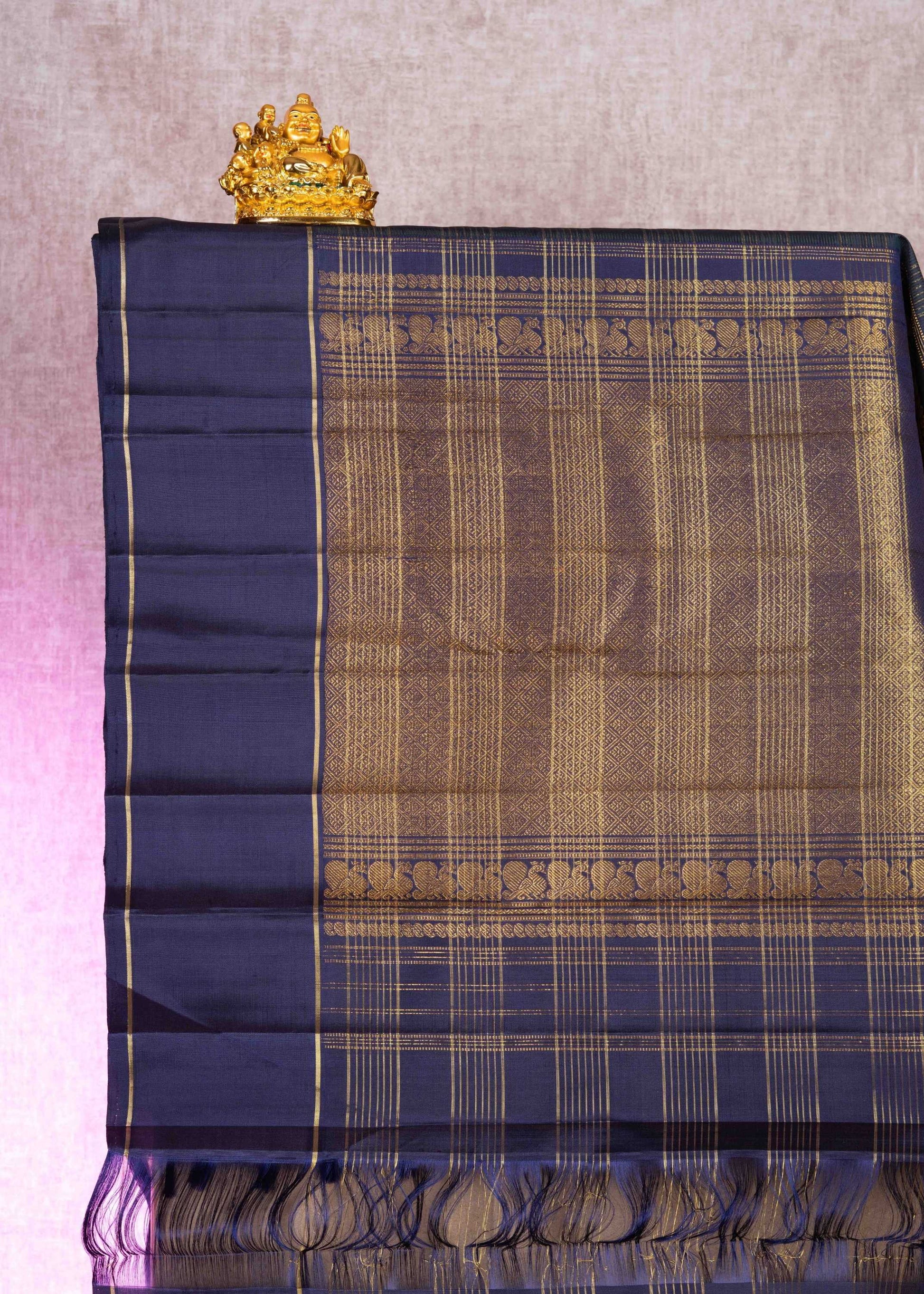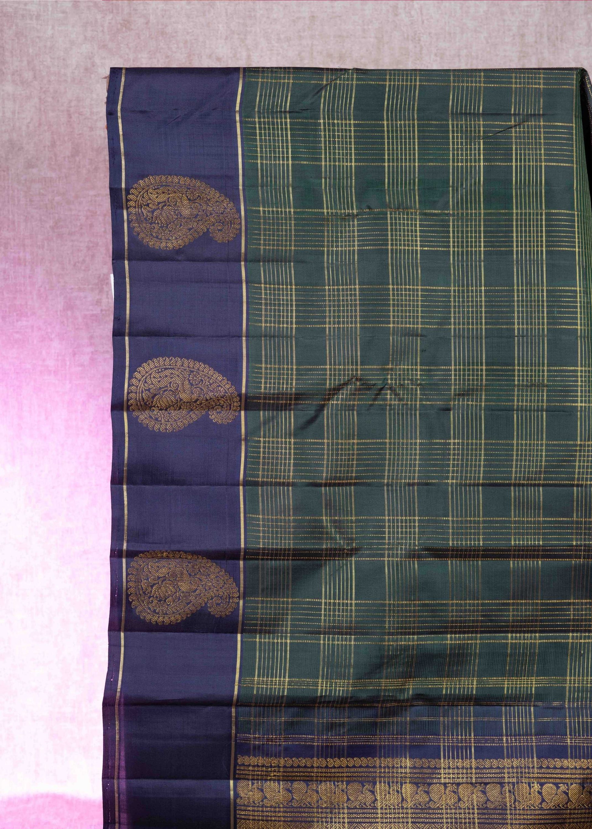 Bottle Green Kanjivaram Pure Silk Saree With Navy Blue Blouse
