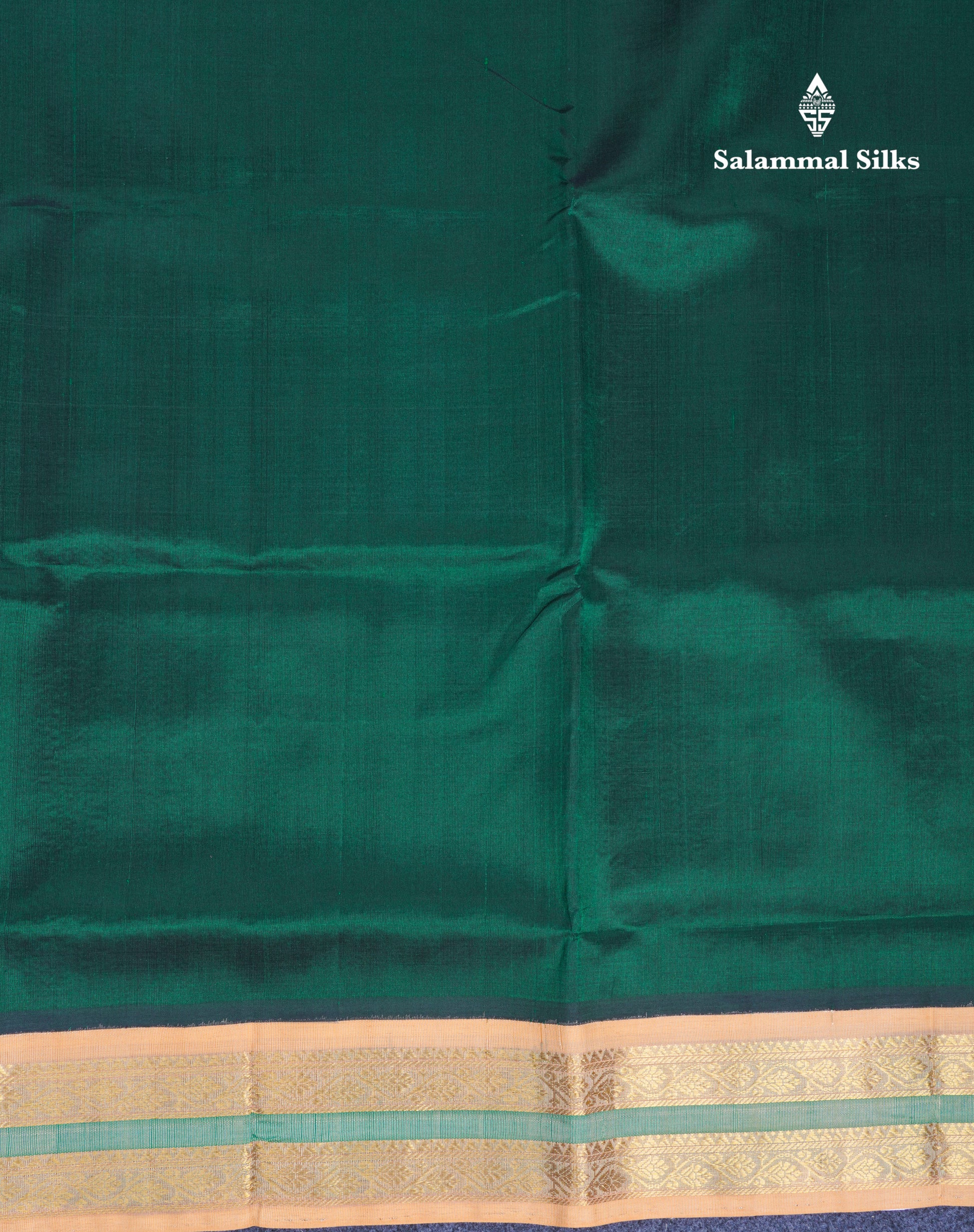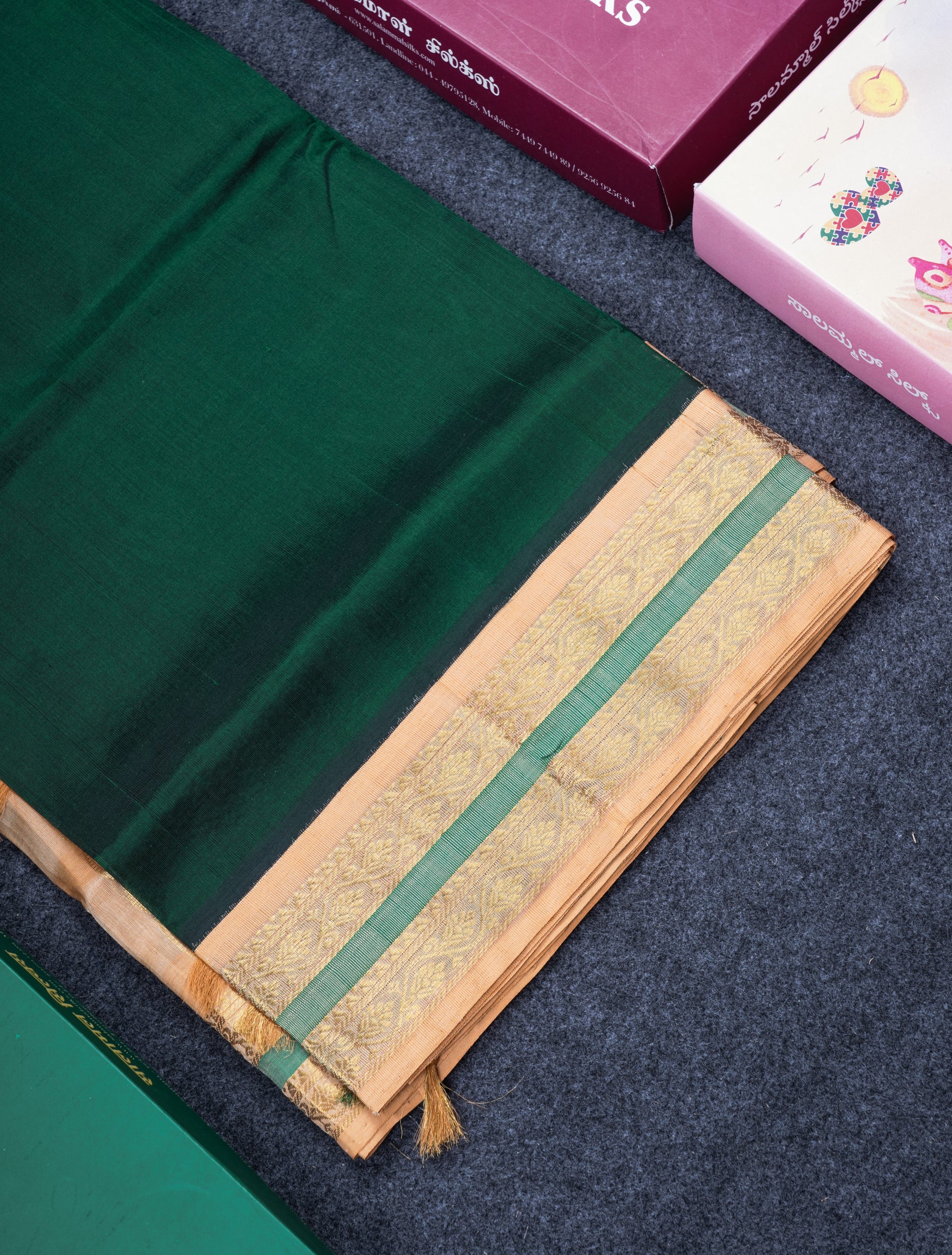 Bottle Green Plain Pure Silk Cotton Saree With Contrast Light Orange Traditional Border