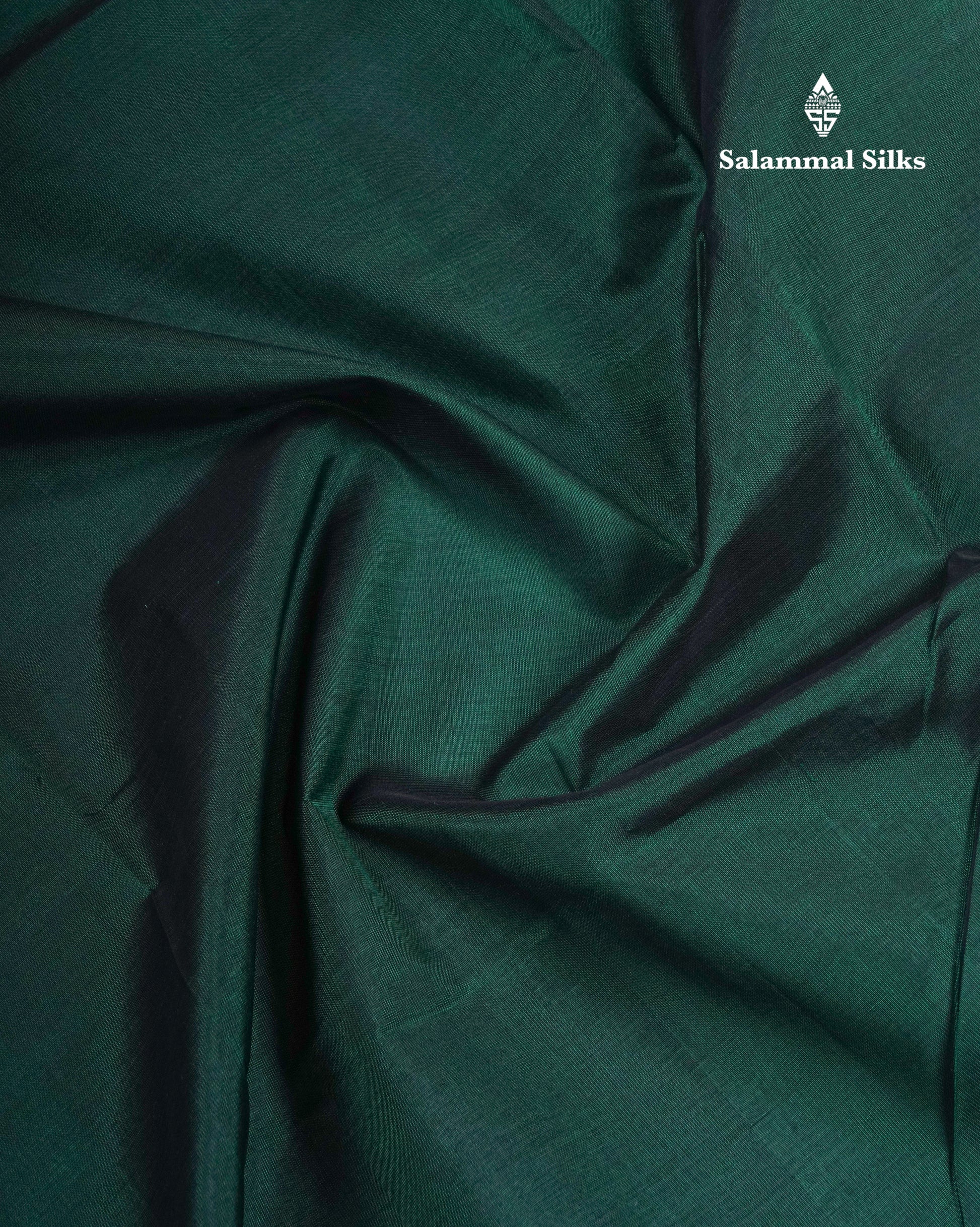 Bottle Green Plain Pure Silk Cotton Saree With Contrast Manthulir Yellow Blouse